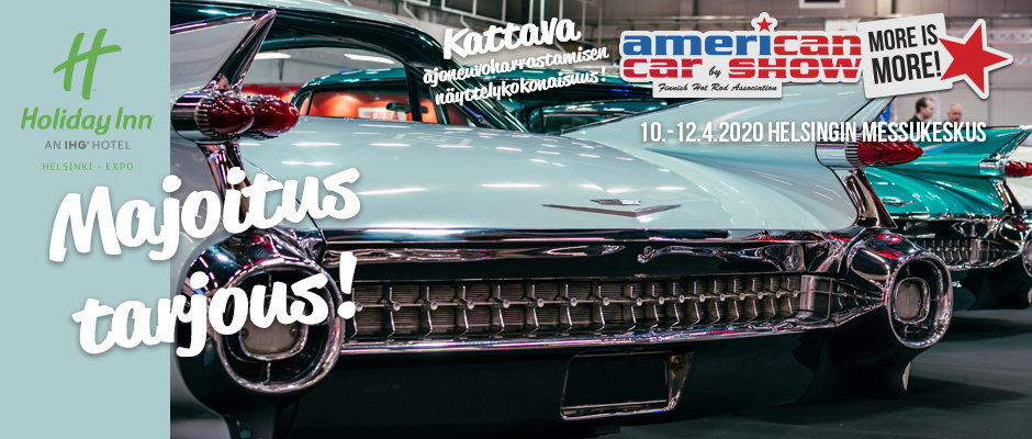 FHRA American Car Show 10.–12.4.2020. Vuoden odotetuin tapahtuma koittaa jälleen. Näe kaikki tapahtumat; American Car Show, Tuning Car Show, Classic Car Show, Custom Truck Show, MC Heaven & Motorsport 2020! Majoitu mukavasti tapahtuman ytimessä, hotellimme sijaitsee Helsingin Messukeskuksen yhteydessä.