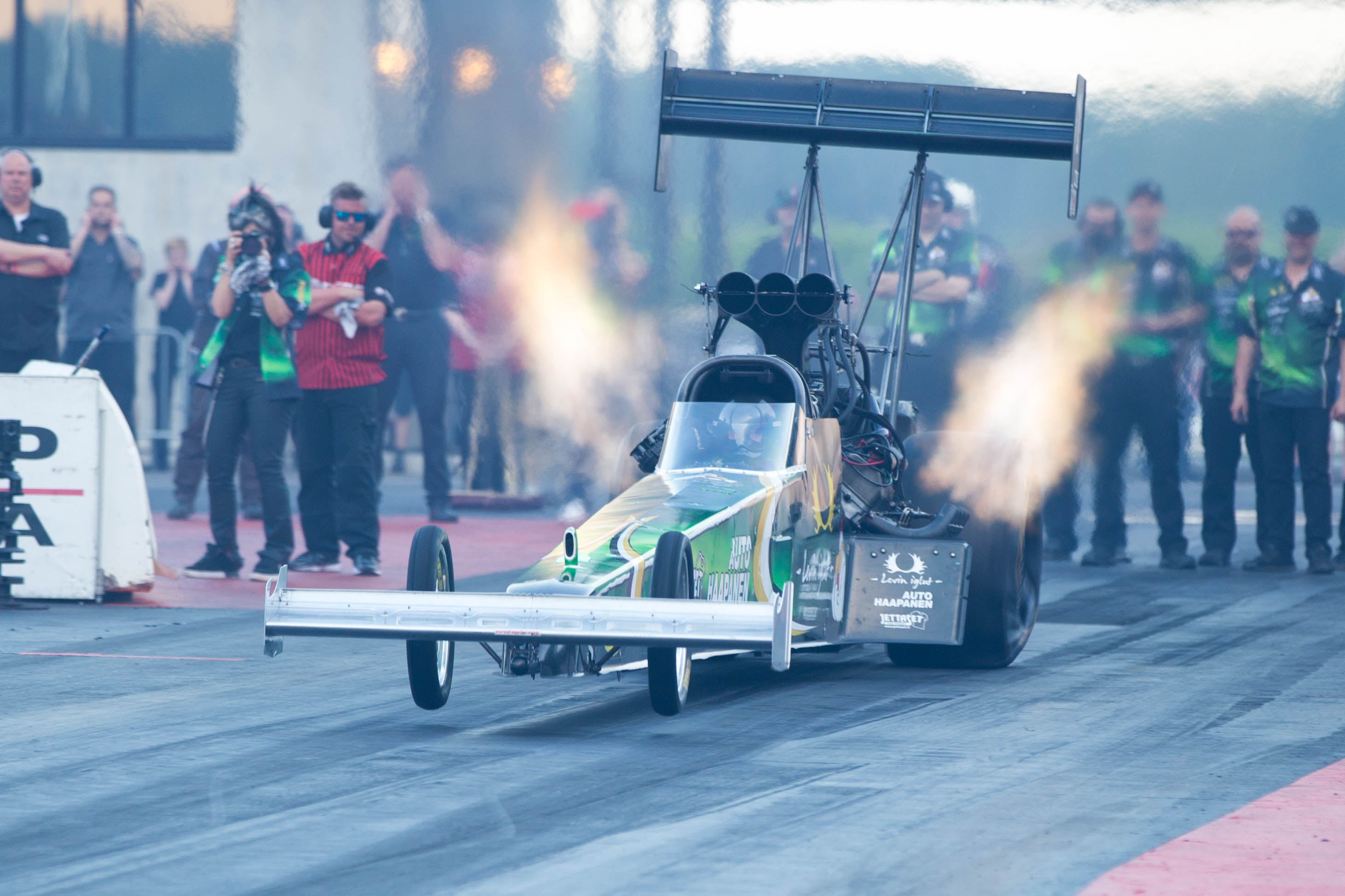 FIA-ryhmien kuninkuusryhmään Top Fueliin ilmoittautumisia on kahdeksan tiimin verran. EM-sarjaa johtaa tällä hetkellä Euroopan nopein Anita Mäkelä! Top Fuel-ryhmät aloittavat kilpailemisen perjantaina 5.7. Pro-kierrosten arvioitu alkamisaika on kello 11.00 ja 15.00. Tiukka taisto pisteistä jatkuu Kauhavalla EM-sarjan kolmannessa osakilpailussa!