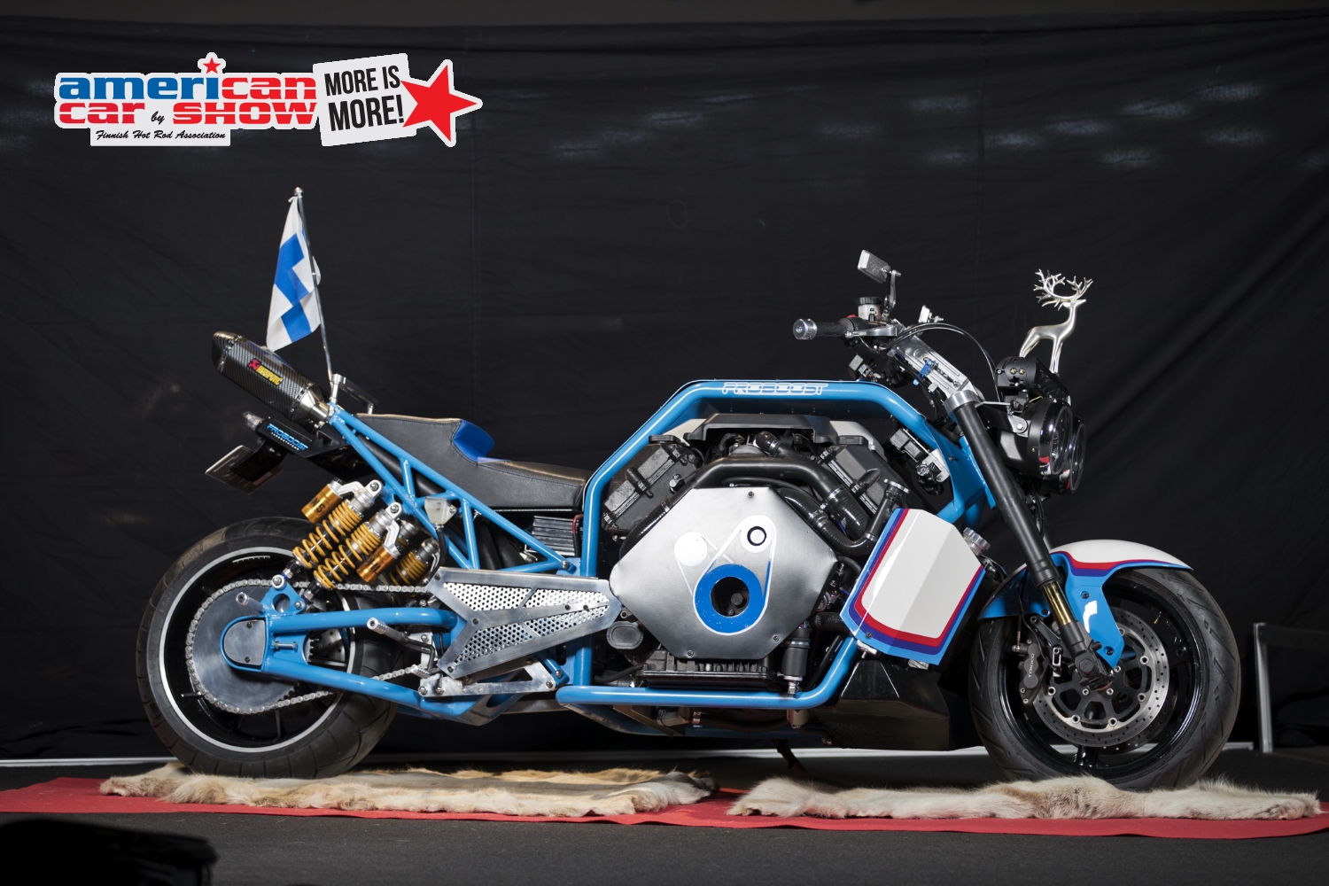 American Car Show’ssa löytyy tämän kotimaisen käsityön taidonnäytteen lisäksi liuta amerikkalaisvalmisteisia V8-moottorisia Cannon- ja Boss Hoss-moottoripyöriä.