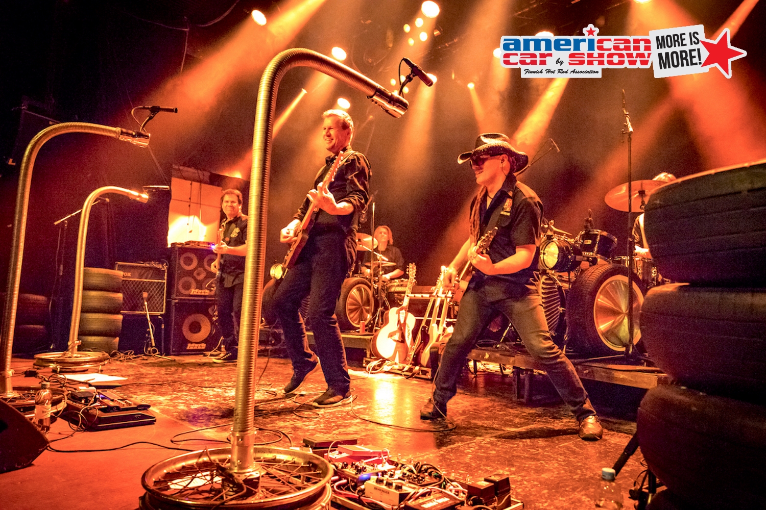 Bändin lavarekvisiitta tulee suoraan hotrod-maailmasta: lavalla on kaksi autoiksi tuunattua rumpusettiä, pakoputkista ja moottoripyörän vanteista rakennettuja mikkitelineitä, jenkkirekisterikilvistä rakennettuja kitaroita sekä muuta samanhenkistä tavaraa.
