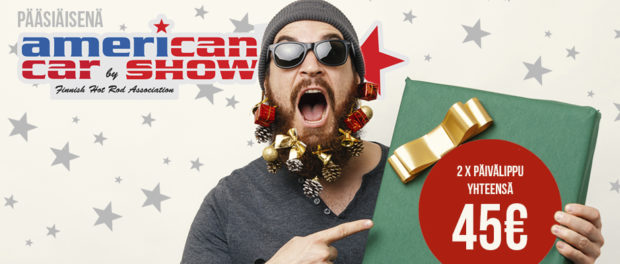 Joulu tulee tänäkin vuonna yhtä varmasti kuin pääsiäinen ja American Car Show! Aloitamme lipunmyynnin joulukampanjahinnalla! American Car Show 2019 päivälippuja, 2 päivälippua yhteishintaan 45€! Tarjous voimassa jouluun asti!