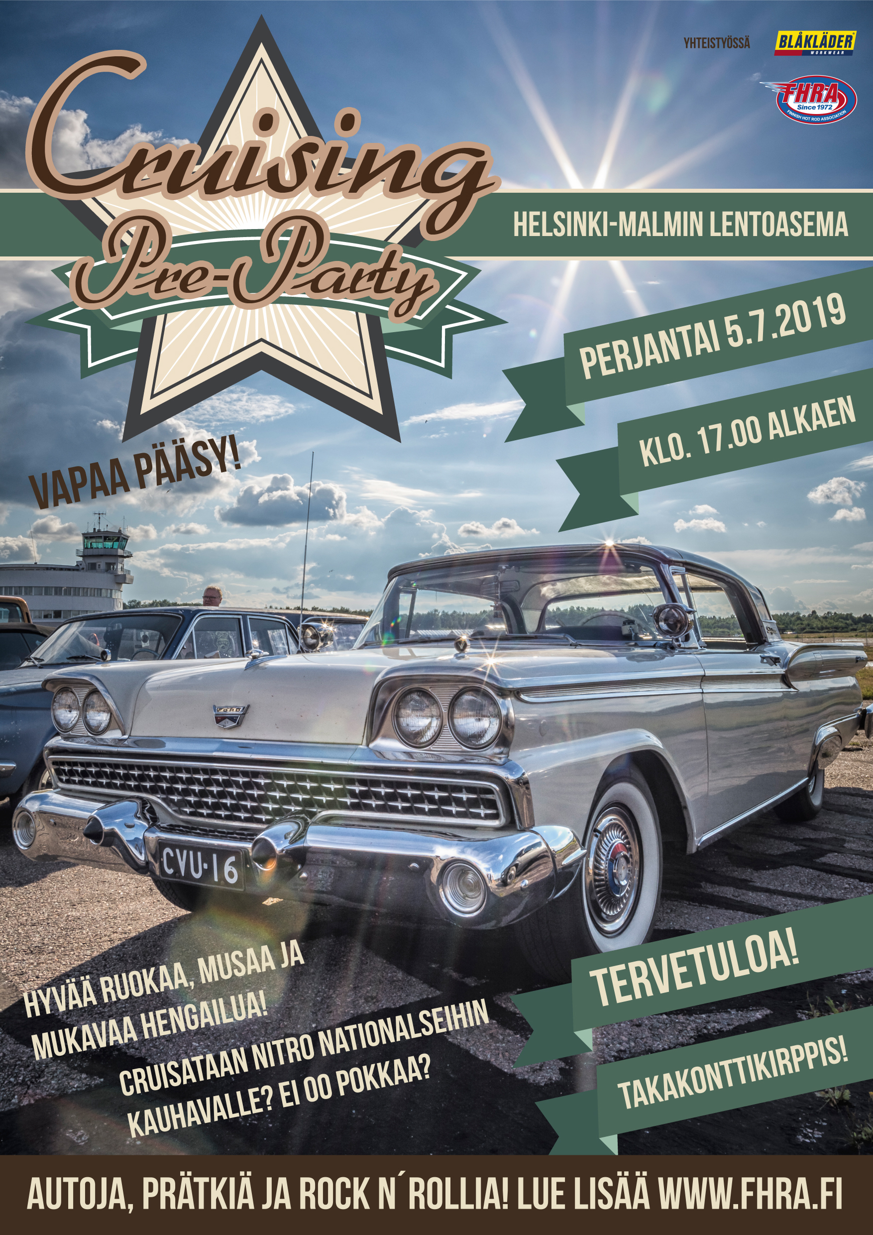 Perjantaina 5.7.2019 klo 17.00 alkaen Helsinki-Malmin lentoasemalla vietetään Cruising Pre-partya! FHRA Cruising Pre-Partyt on ilmaisia tapahtumia!