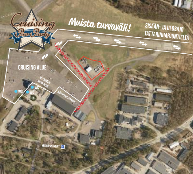 Olemme varanneet pysäköintitilaa lentokentän puolelta, että kaikki halukkaat mahtuvat paikalle. Alueelle sisään ajo tapahtuu Tattarinharjuntien kautta!