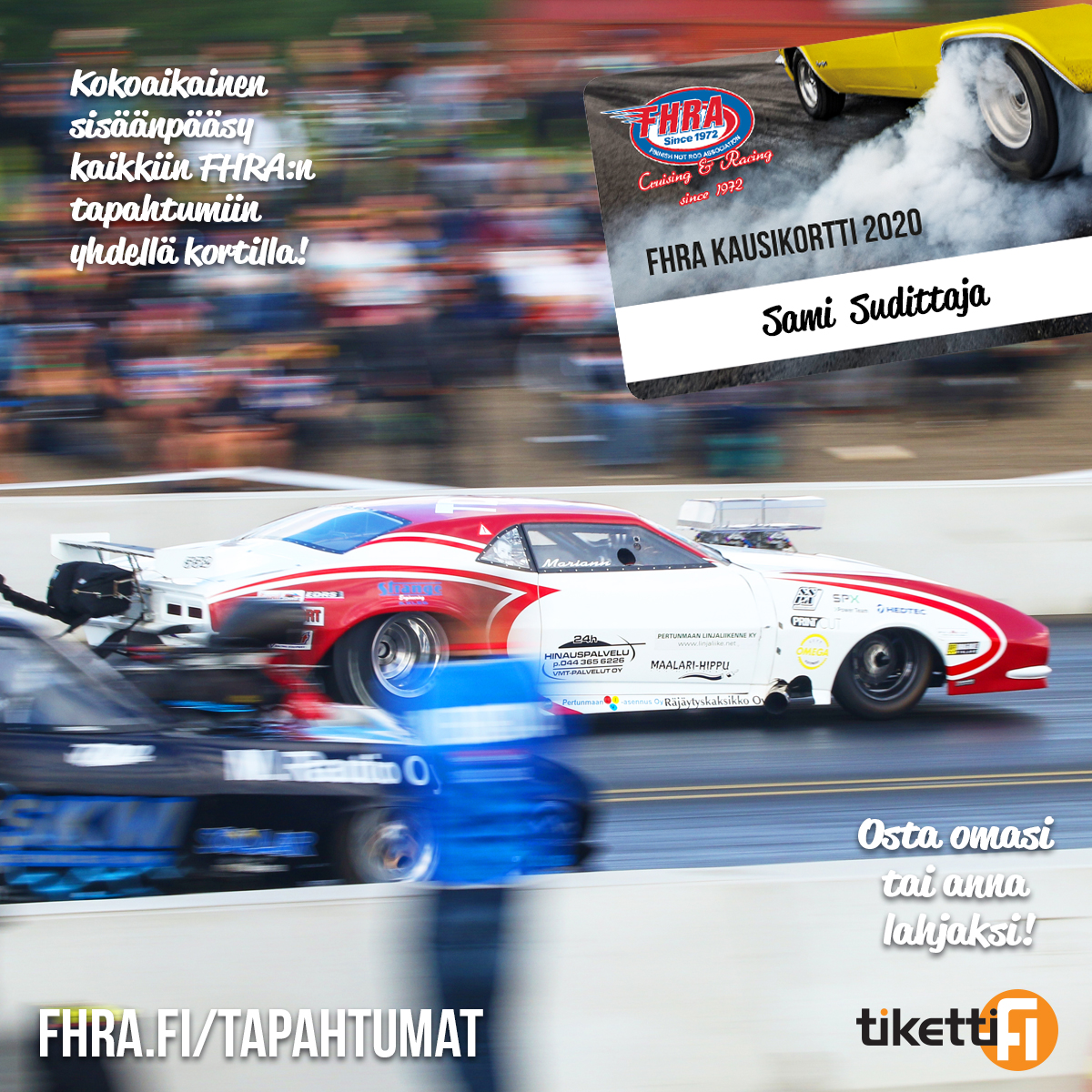 FHRA kausikortti 2020 käsittää kokoaikaisen yleisösisäänpääsyn kaikkiin FHRA:n järjestämiin tapahtumiin kaudelle 2020, poislukien FHRA kauden päätösjuhlan. Kausikortti on maksanut itsensä jo muutamalla tapahtumalla takaisin ja on tosikävijälle ihan ehdoton!