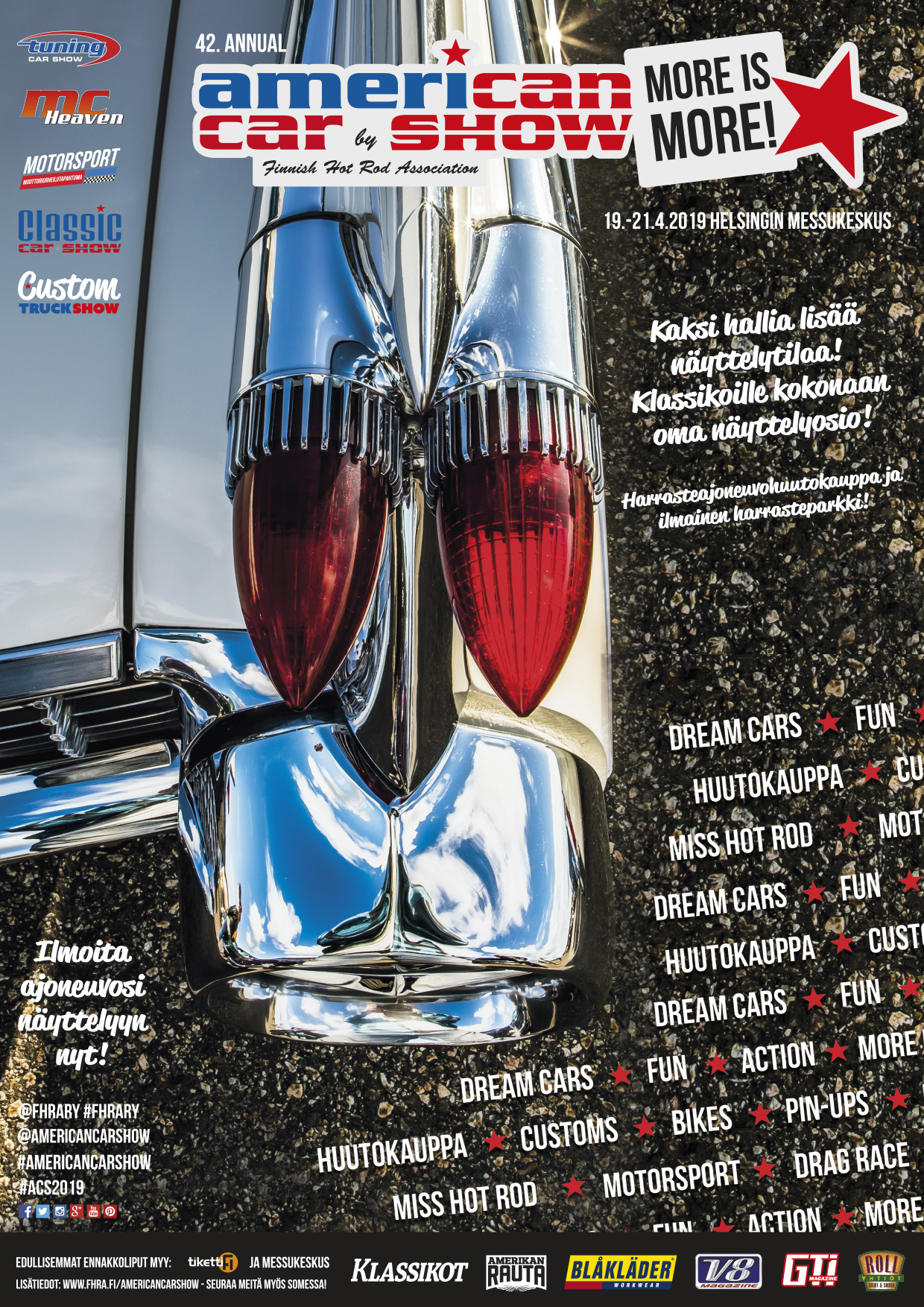 American Car Show, Tuning Car Show, Classic Car Show, Custom Truck Show, MC Heaven & Motorsport 2019 19.-21.4.2019 Helsingin Messukeskuksessa!