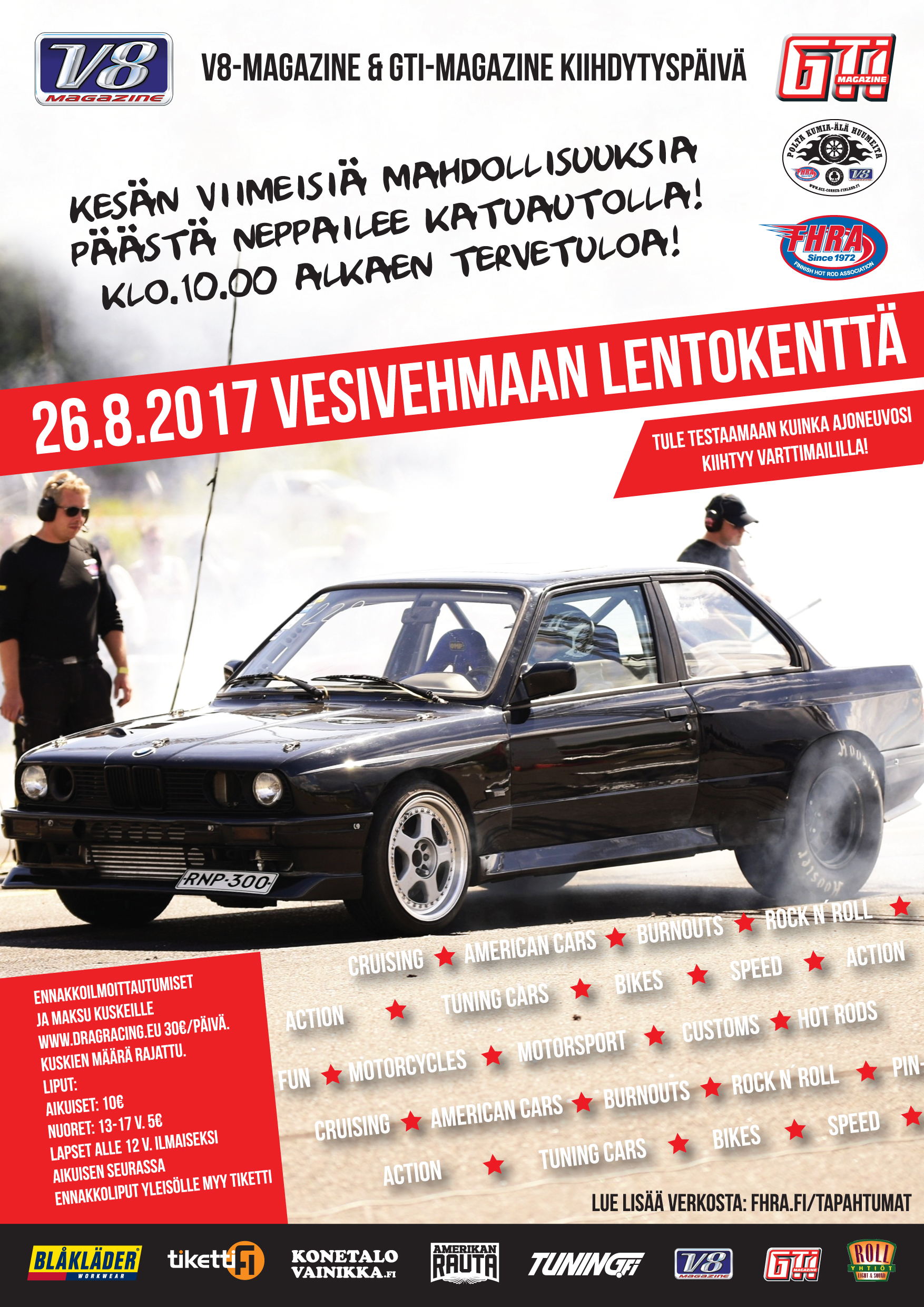 Niin Junior Dragster että Junior Bike kuskit ovat tervetulleet ajamaan Vesivehmaan lentokentällä järjestettävään V8-Magazine & GTi-Magazine kiihdytyspäivään!