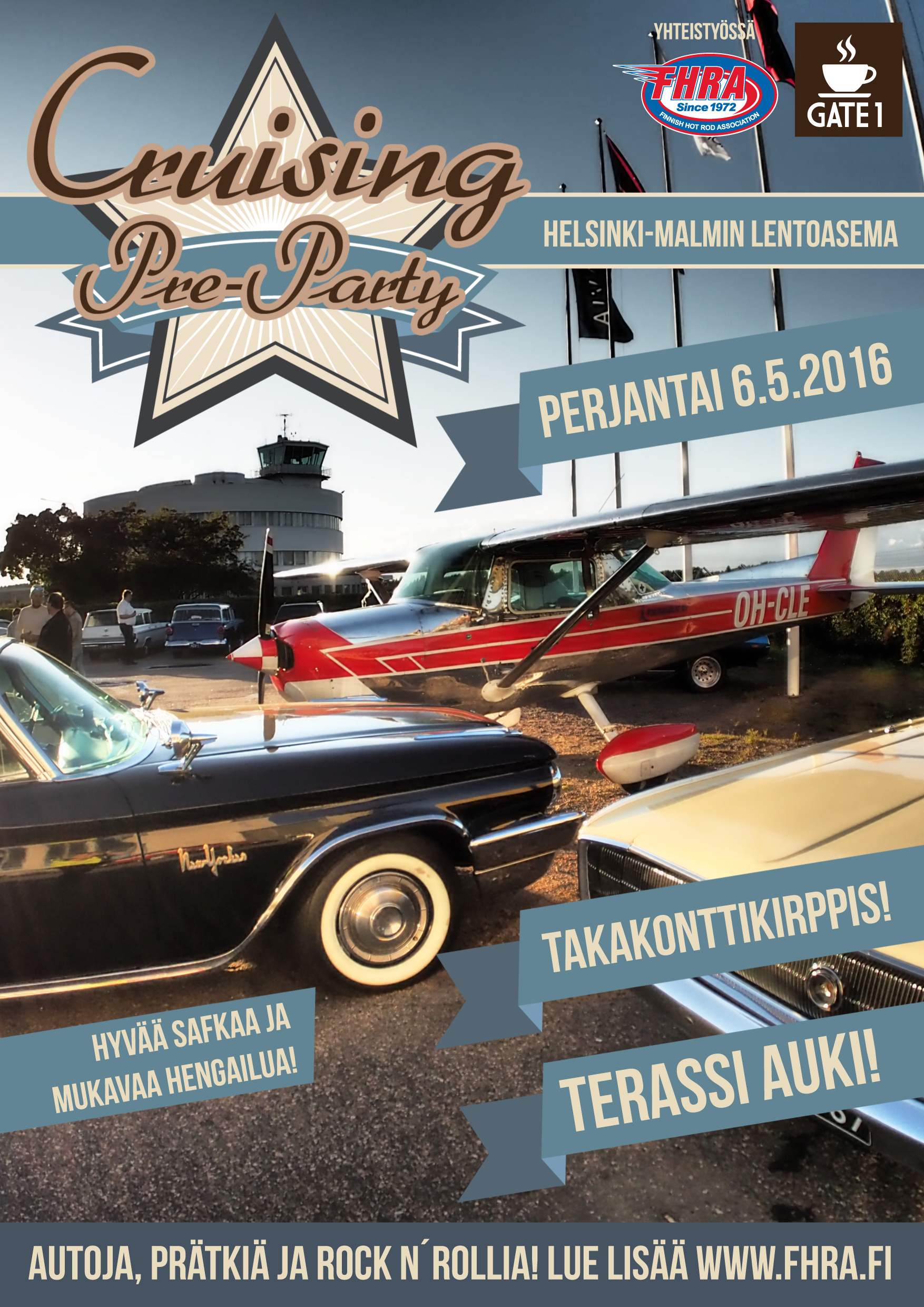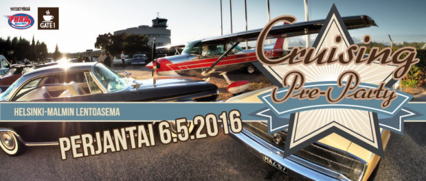 Perjantaina 6.5.2016 klo 17.00 alkaen Helsinki-Malmin lentoasemalla vietetään Cruising Pre-partya! Cruisaa paikalle ja nauti ravintola Gate 1:sen valmistamat safkat, tapaa muita harrastajia ja viihdy leppoisissa tunnelmissa! Terassi on auki! Toivotaan että keli suosii cruisailijoita!
