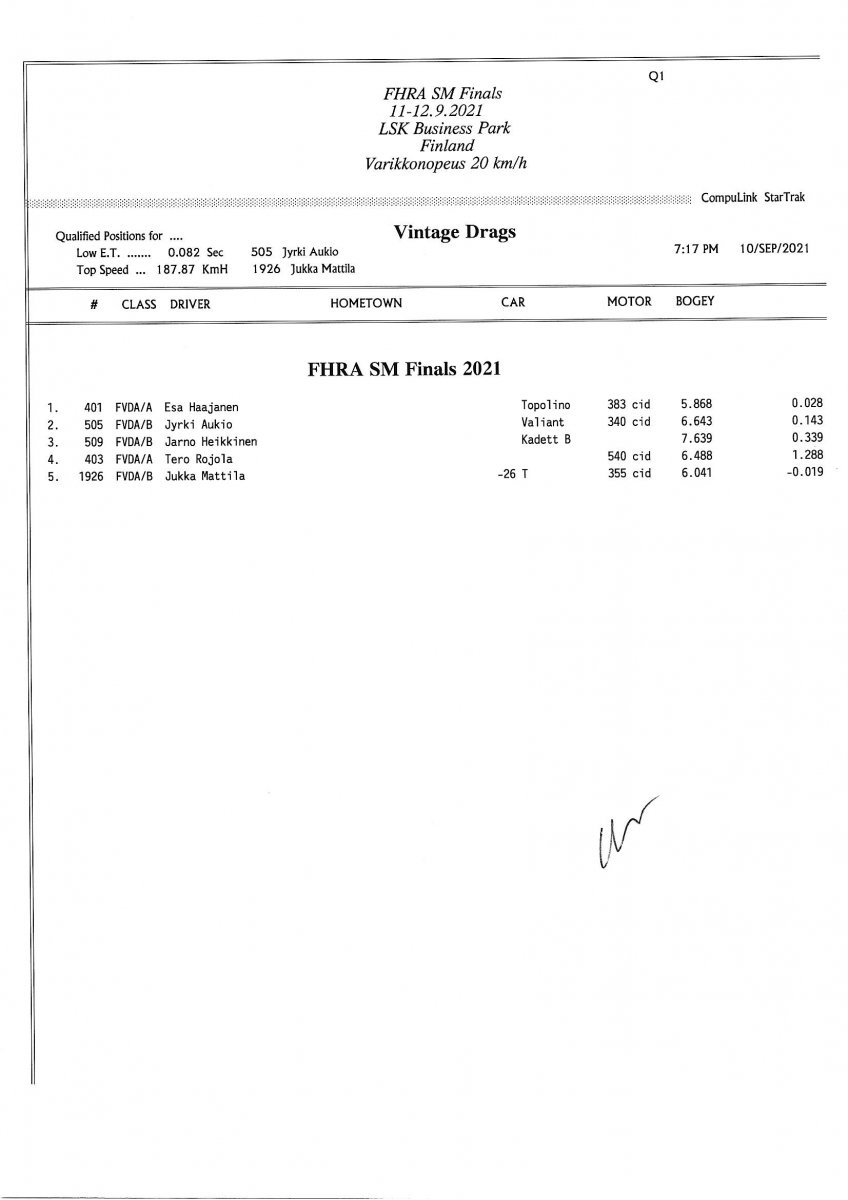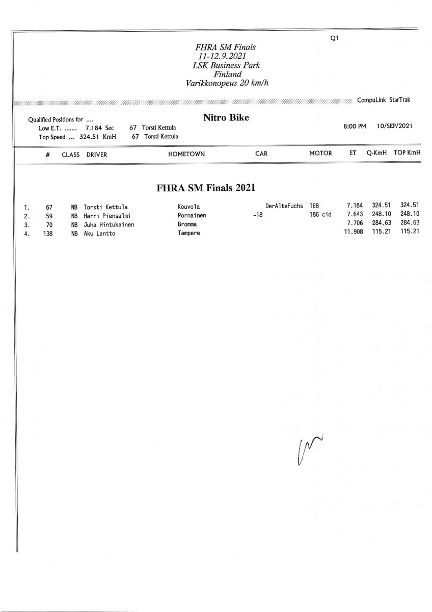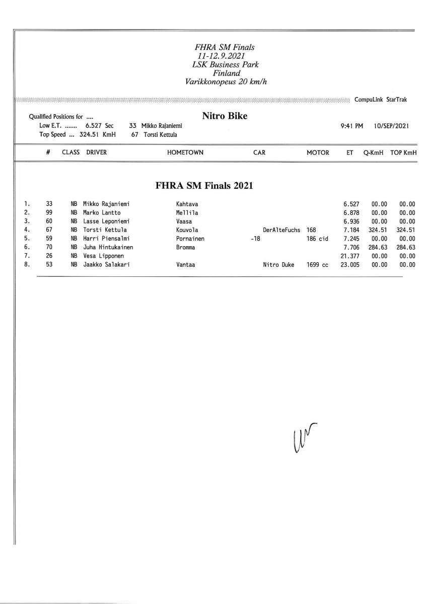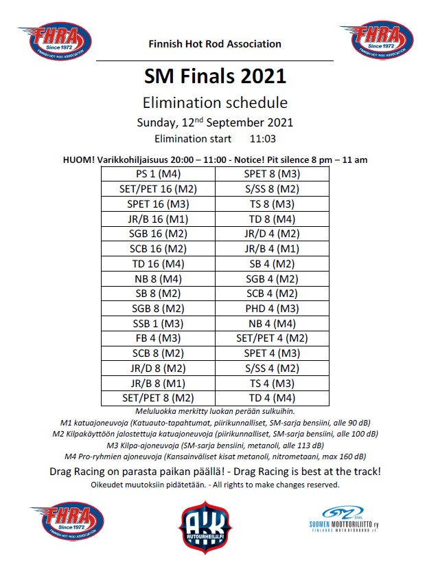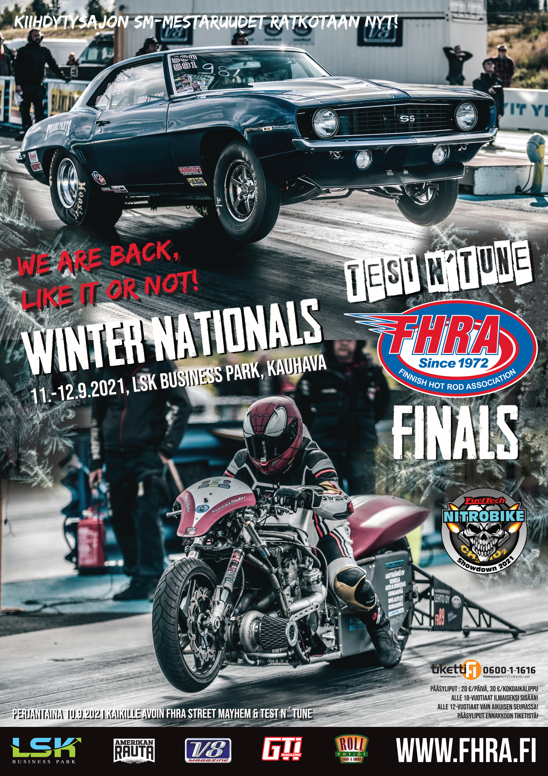 FHRA uutiset 10.-11.9.2021, FHRA Winter Nationals, FHRA kiihdytysajon finaalit, LSK Business Park, Kauhava