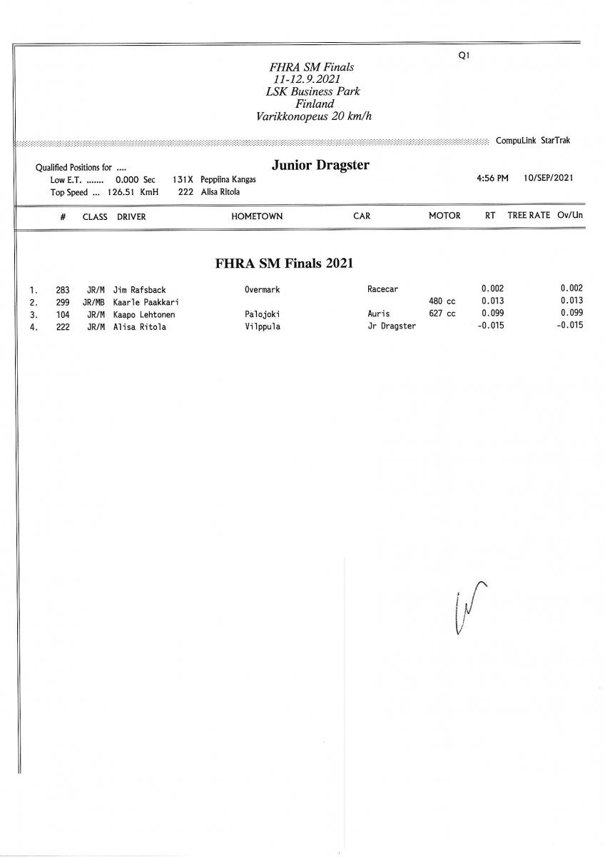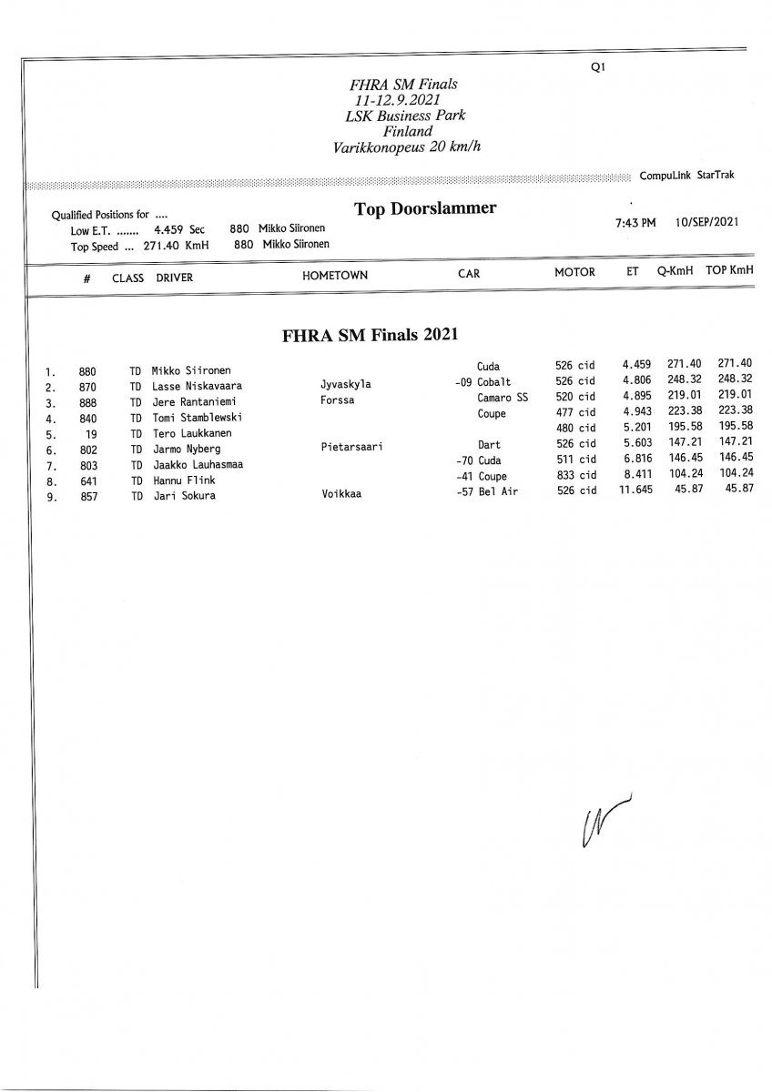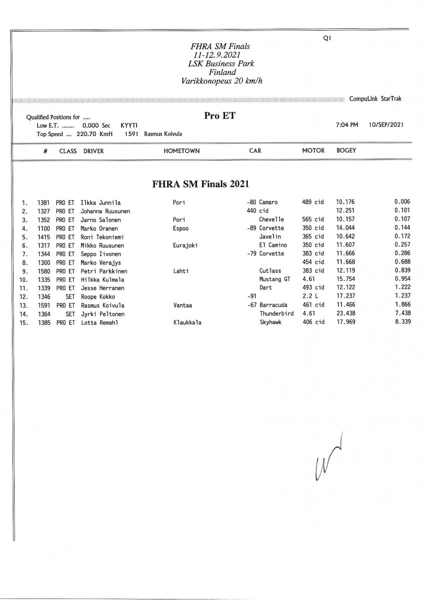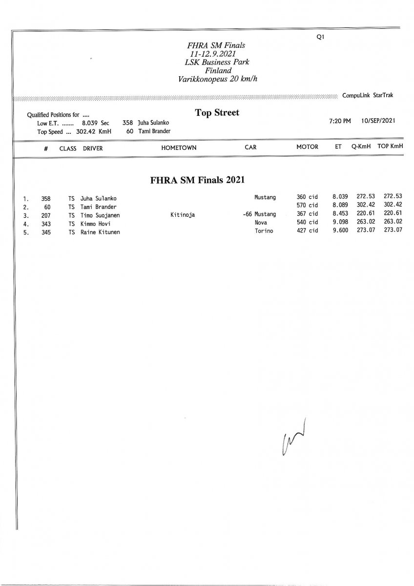 FHRA uutiset 10.-11.9.2021, FHRA Winter Nationals, FHRA kiihdytysajon finaalit, LSK Business Park, Kauhava