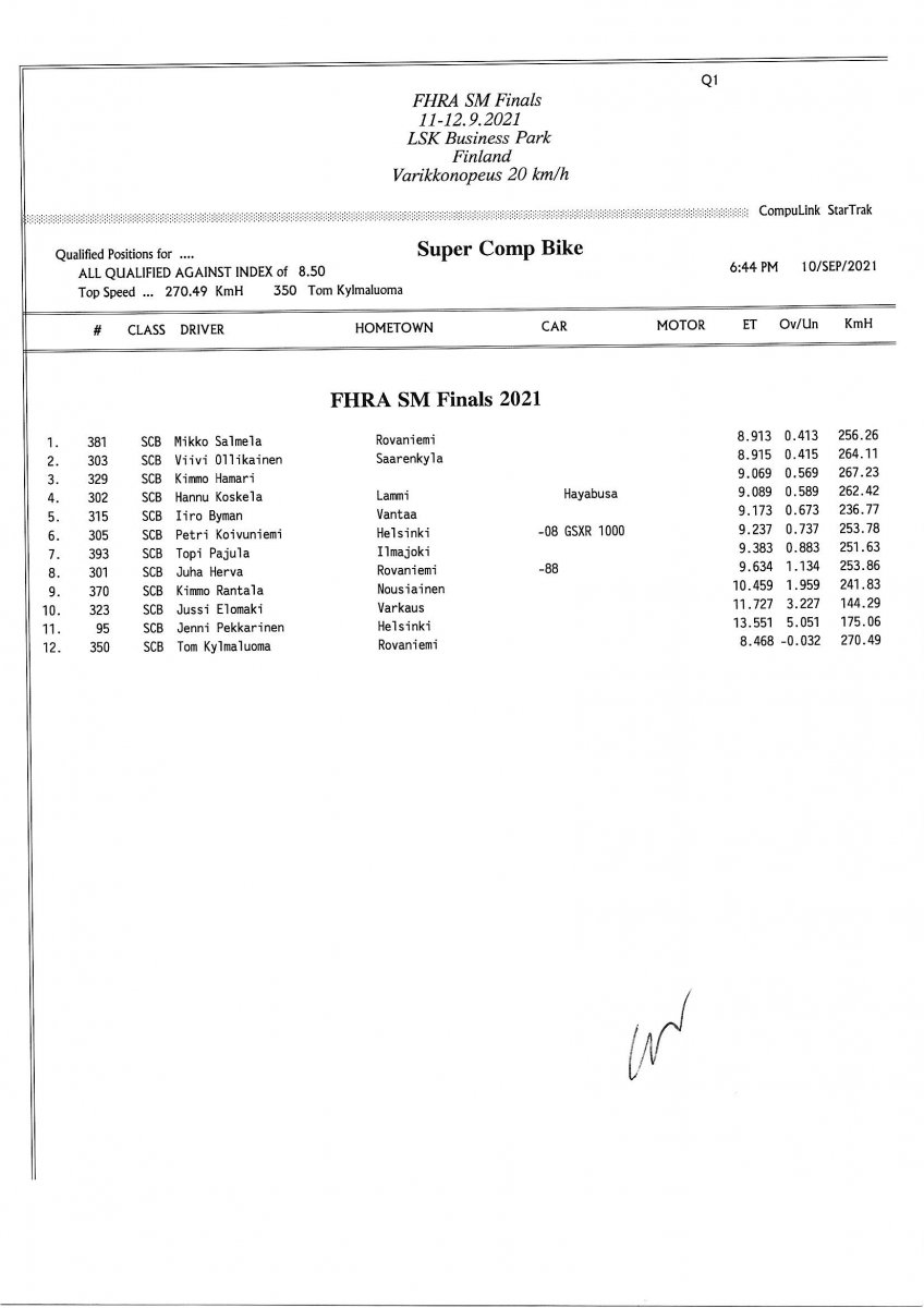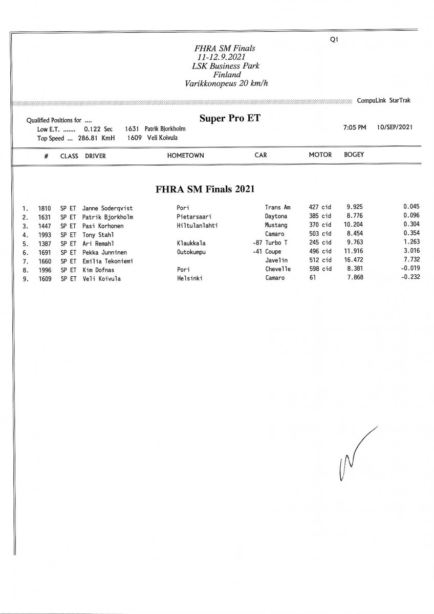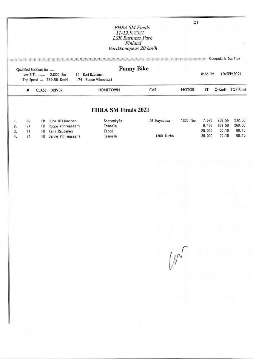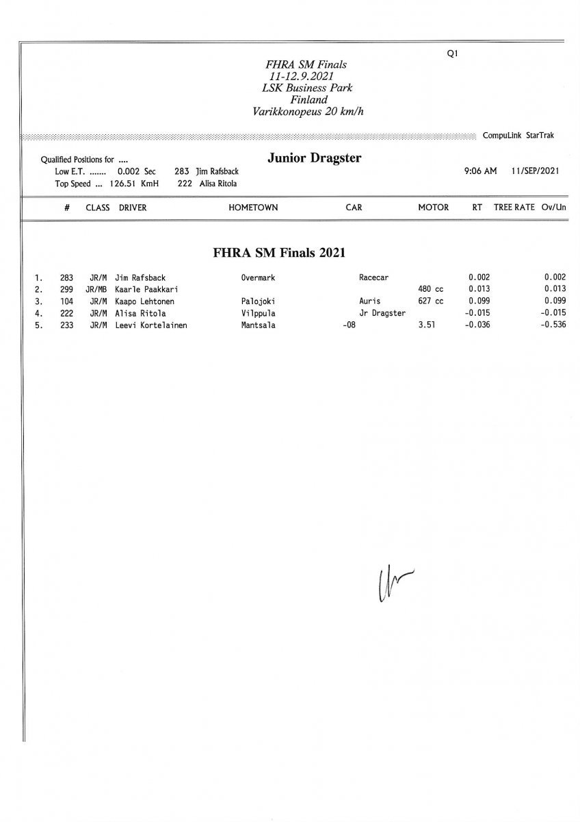 FHRA uutiset 10.-11.9.2021, FHRA Winter Nationals, FHRA kiihdytysajon finaalit, LSK Business Park, Kauhava