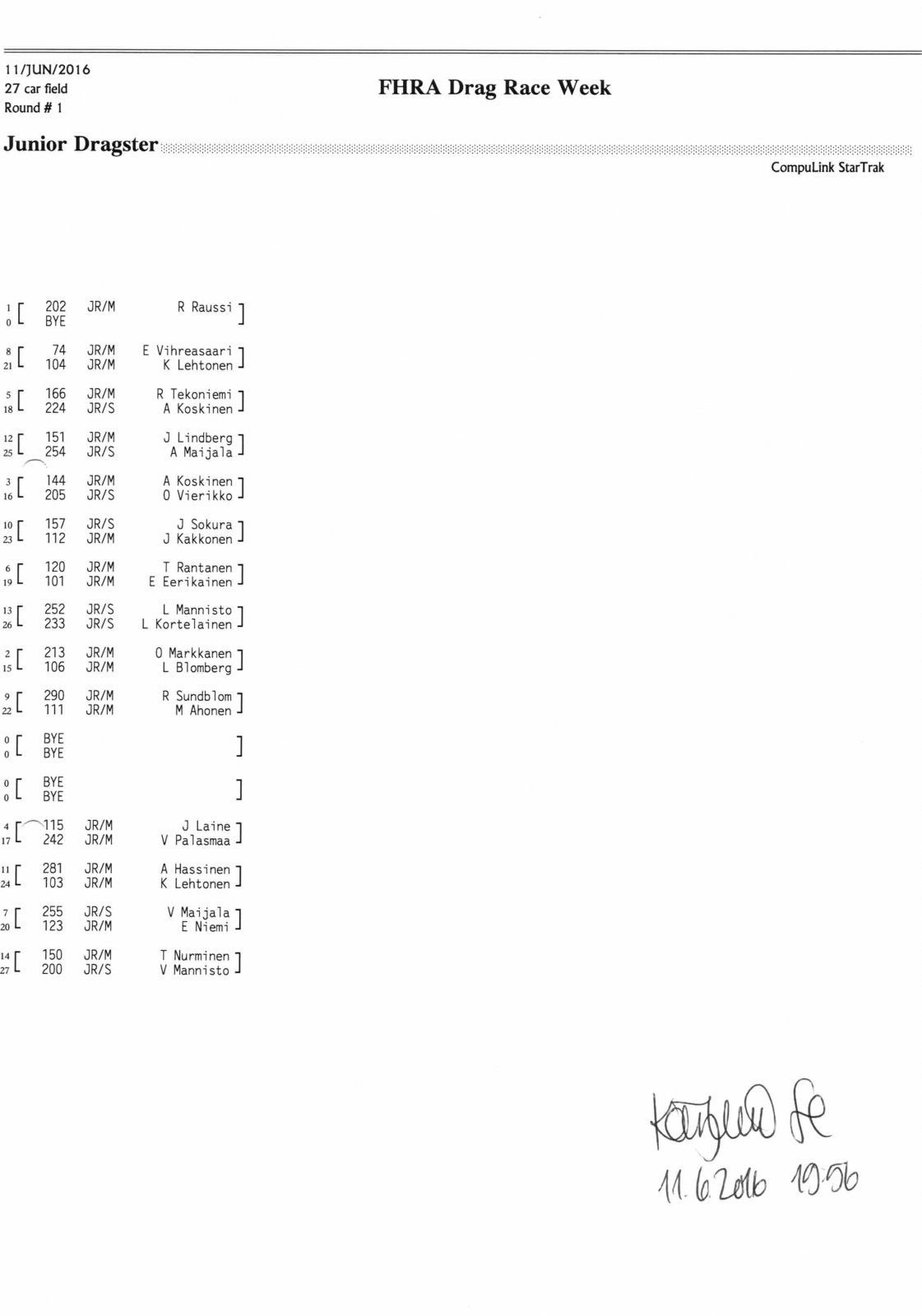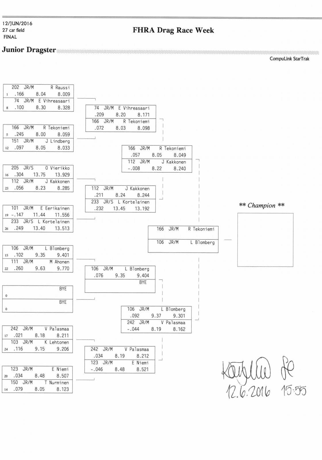 FHRA uutiset 11.-12.6.2016 FHRA kiihdytysajon SM-osakilpailu 2, Drag Race Week
