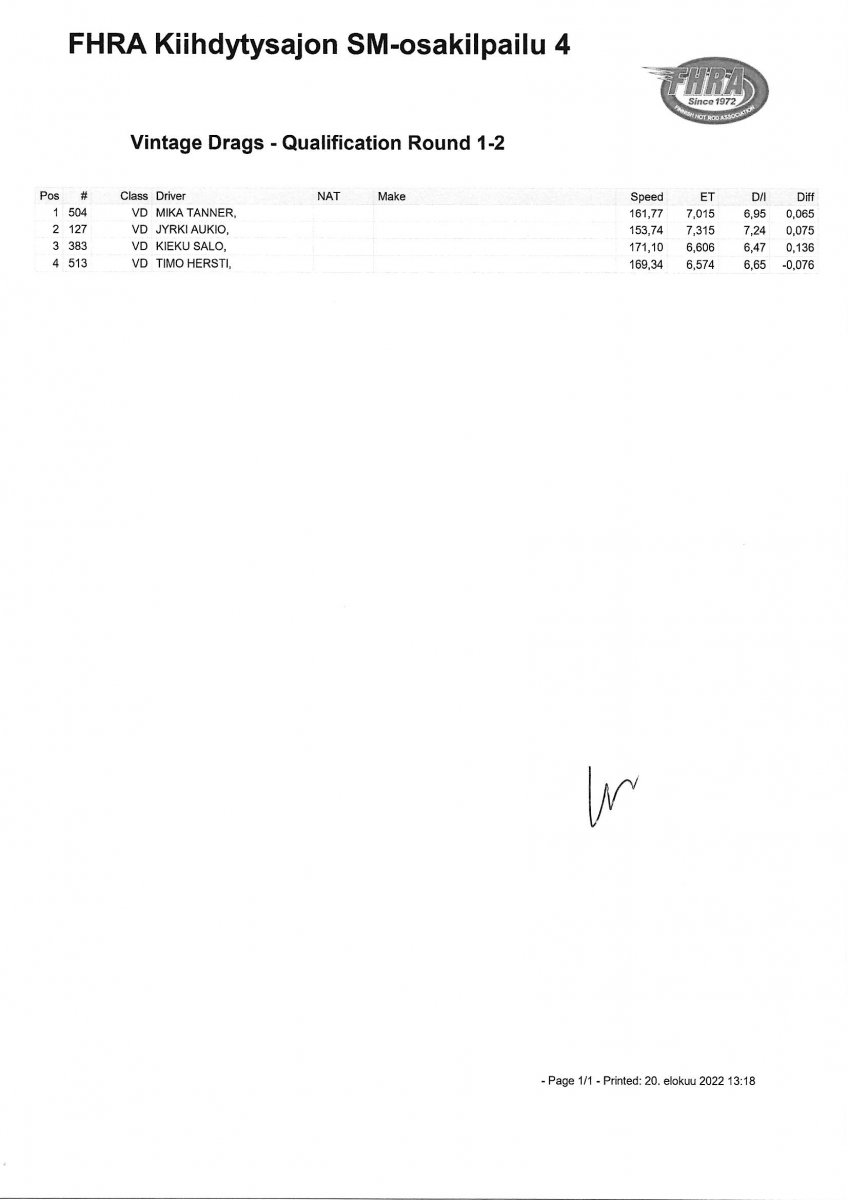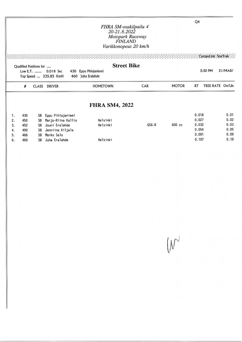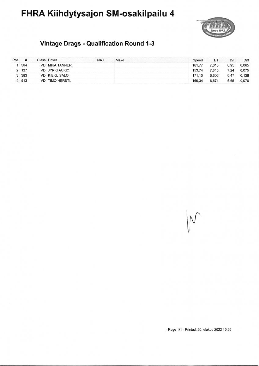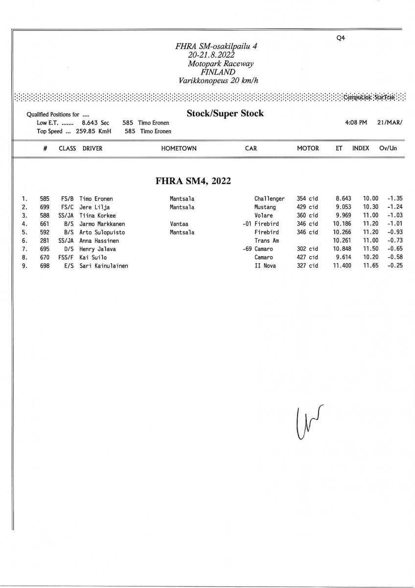 Kilpailu striimataan FHRA:n Livestream-kanavalle: https://livestream.com/fhra Kuvagalleria: TMu photography - 2022-08-21 FHRA SM4