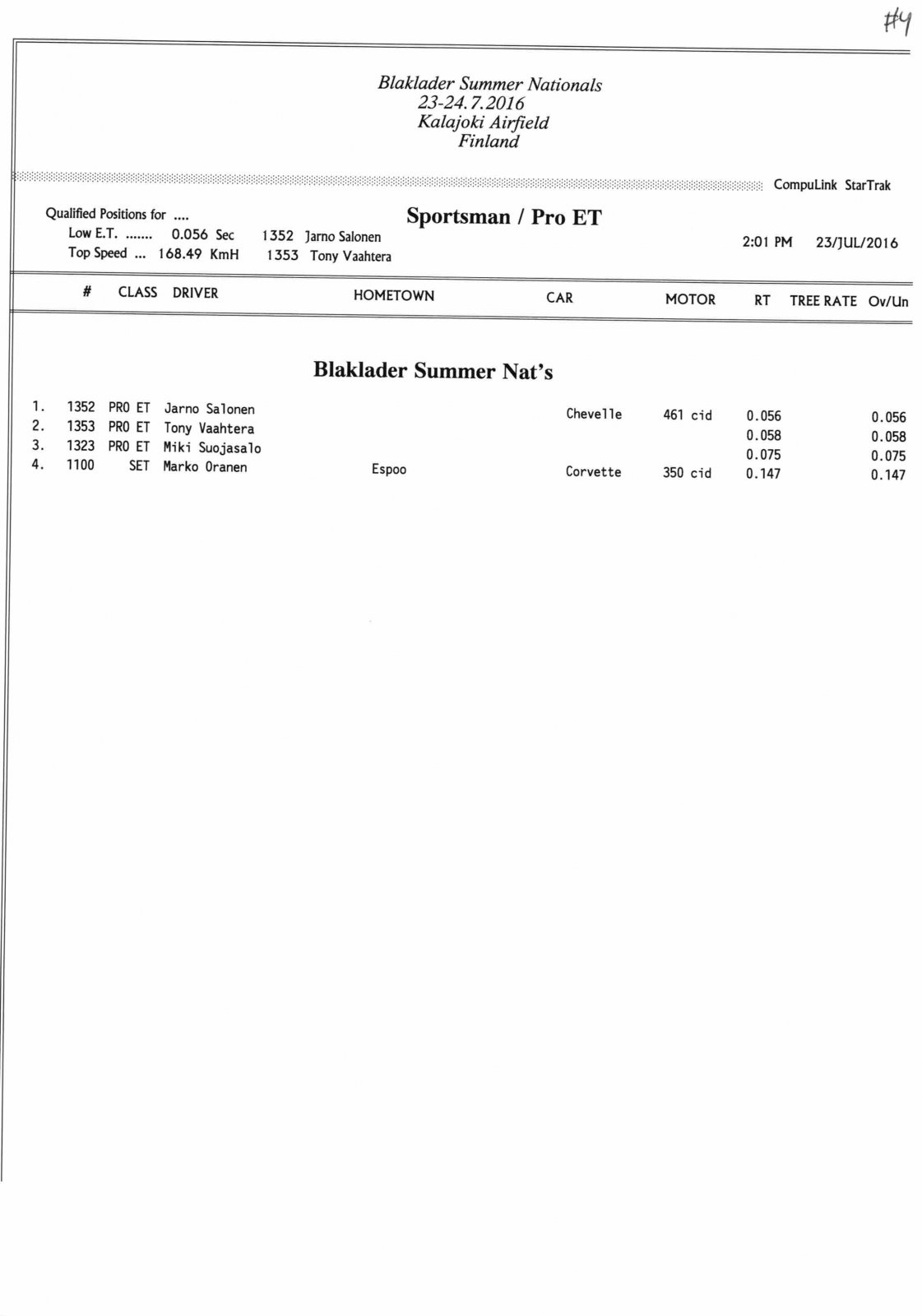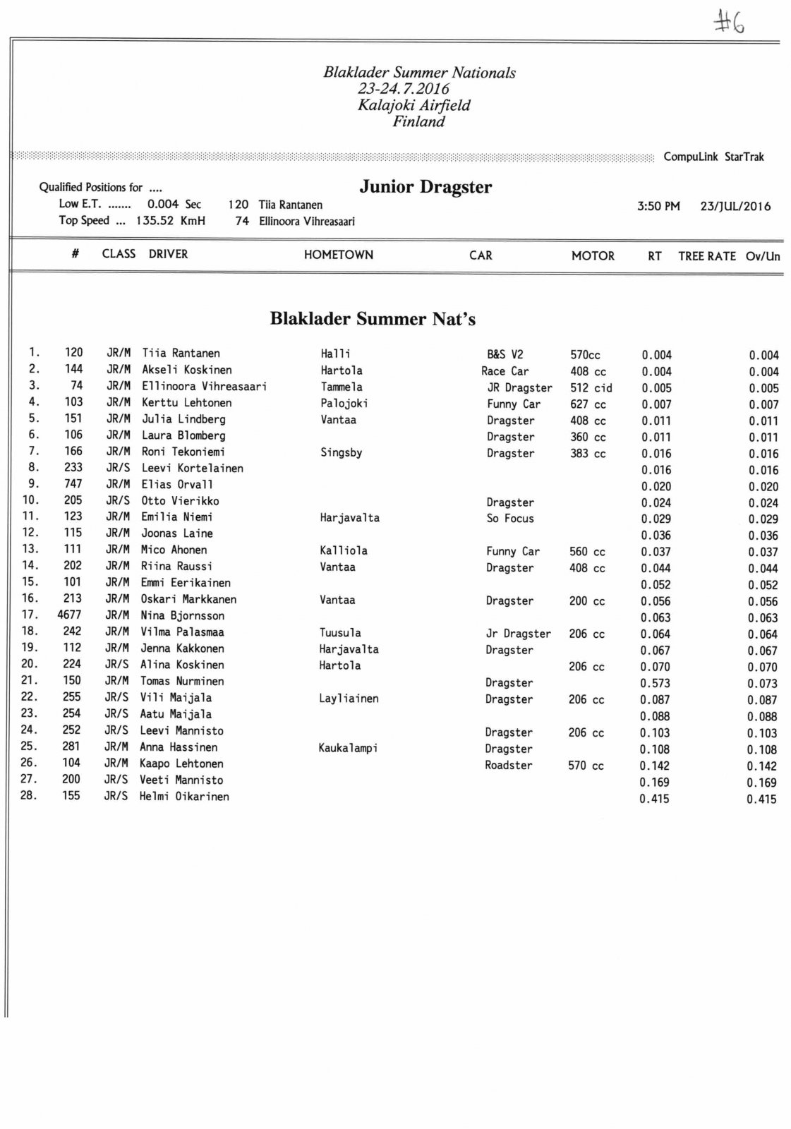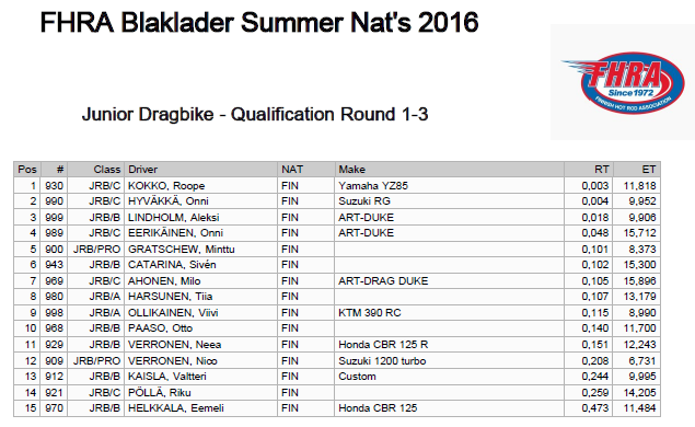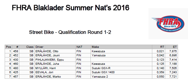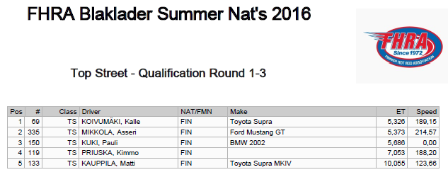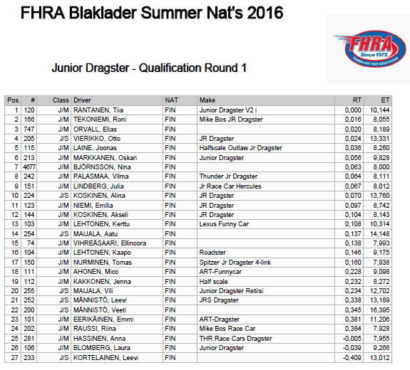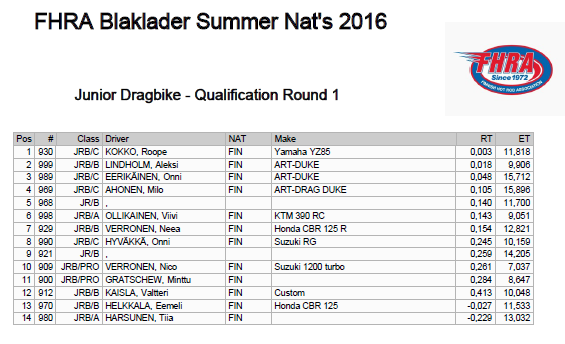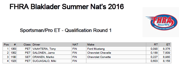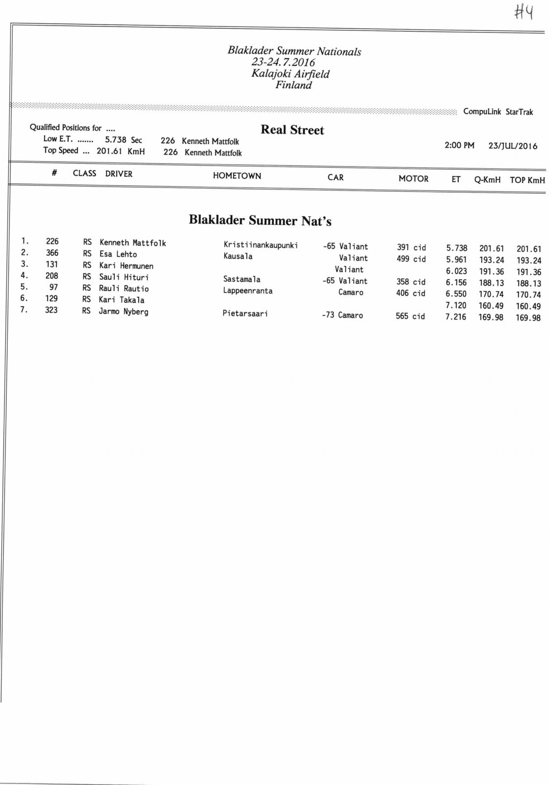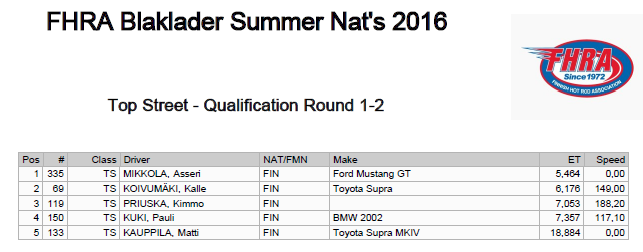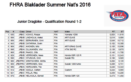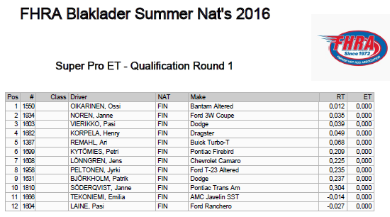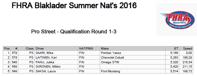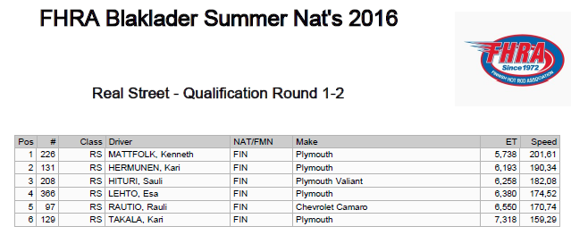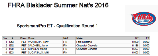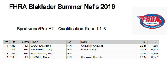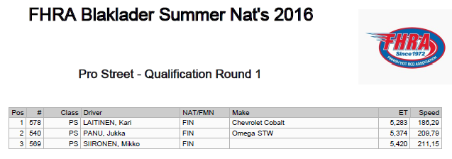 FHRA uutiset 23.-24.7.2016 FHRA kiihdytysajon SM-osakilpailu 4, Blåkläder Summer Nationals, Kalajoki