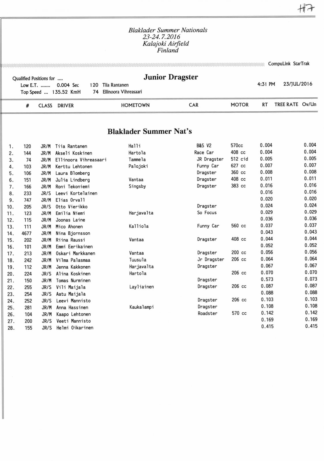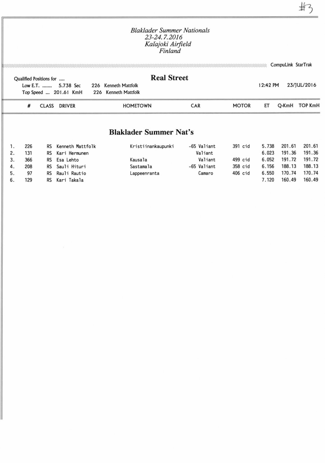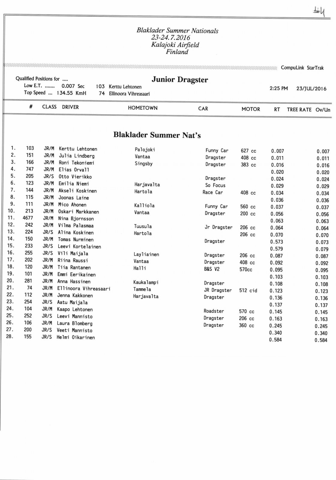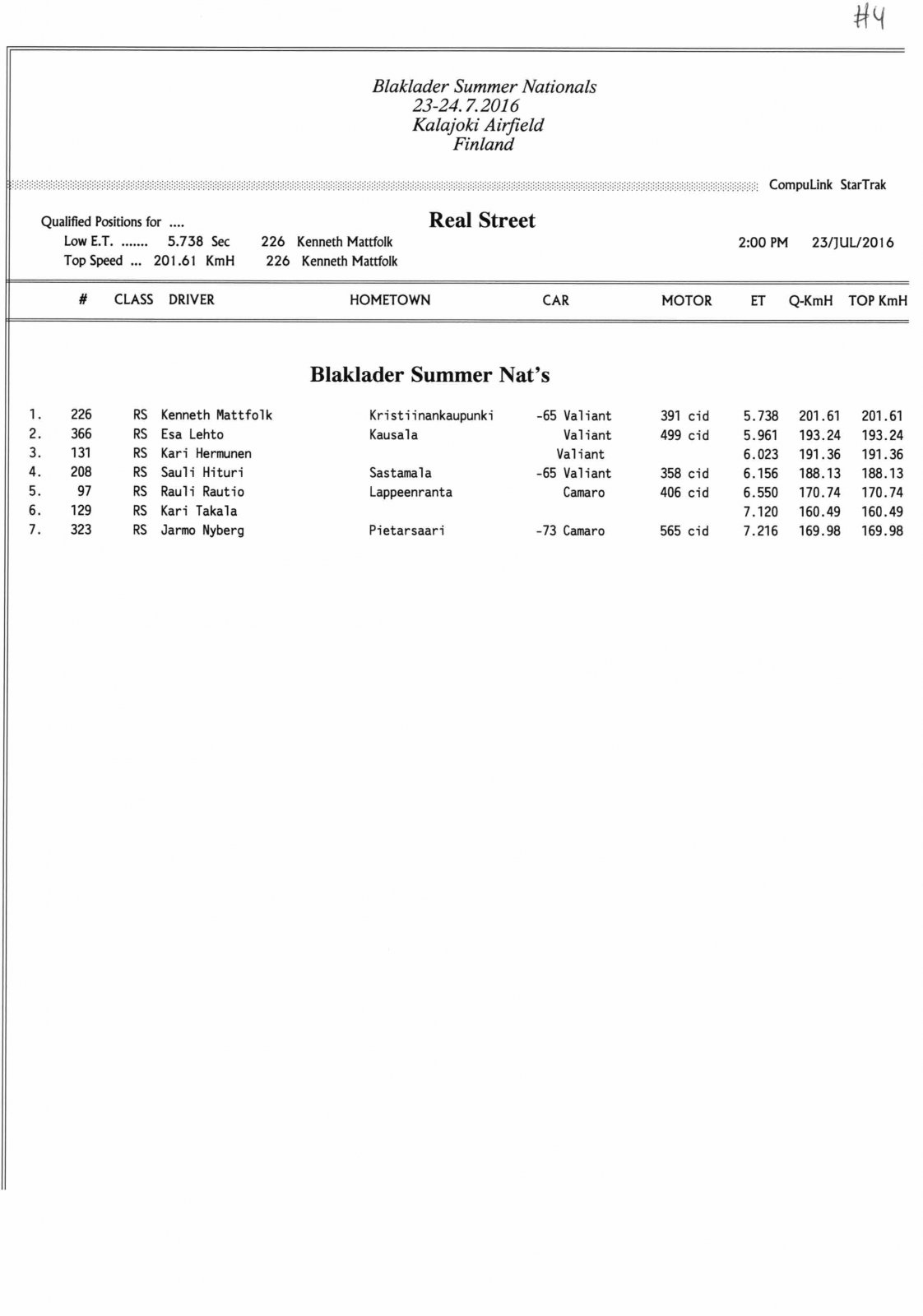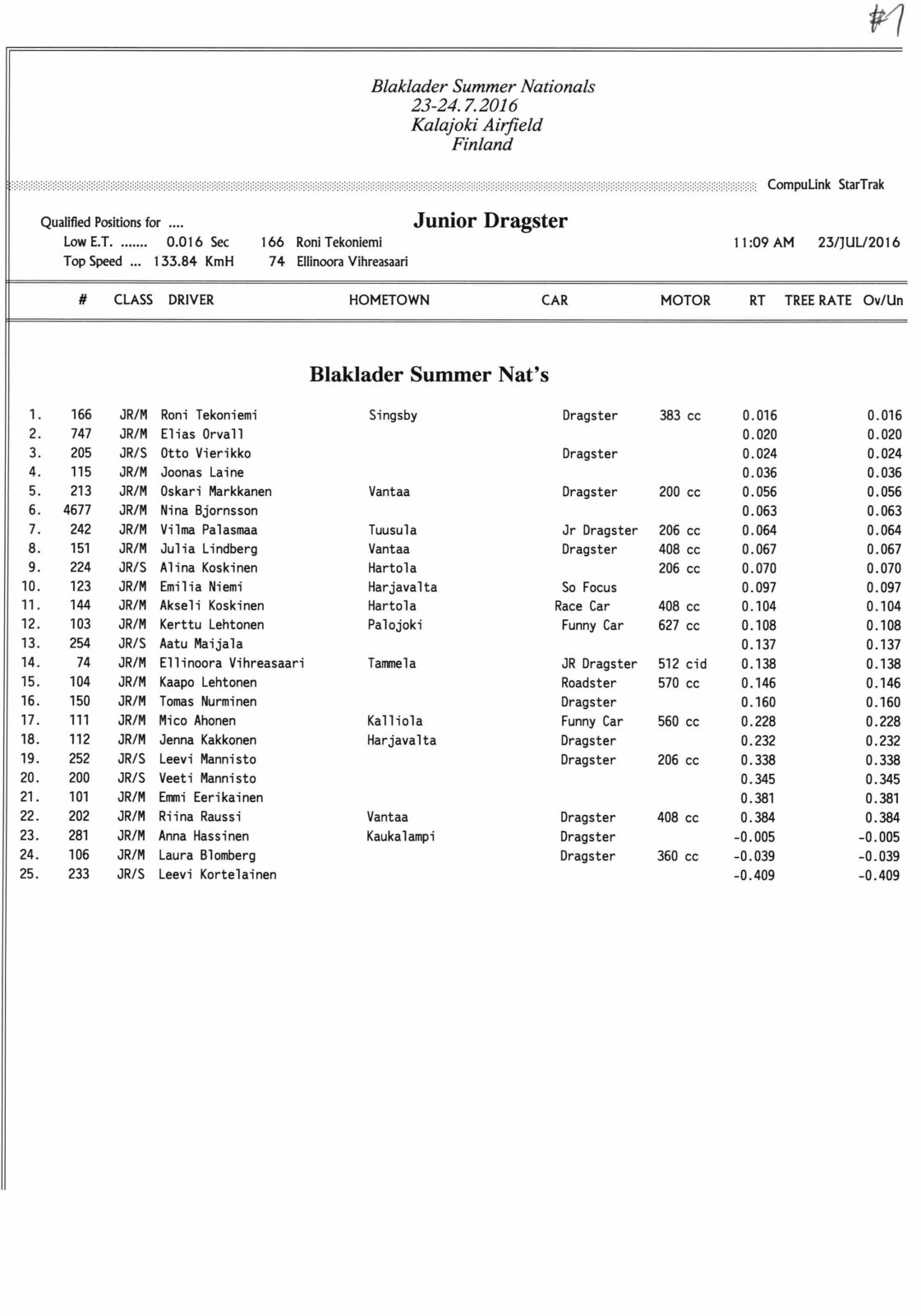 FHRA uutiset 23.-24.7.2016 FHRA kiihdytysajon SM-osakilpailu 4, Blåkläder Summer Nationals, Kalajoki