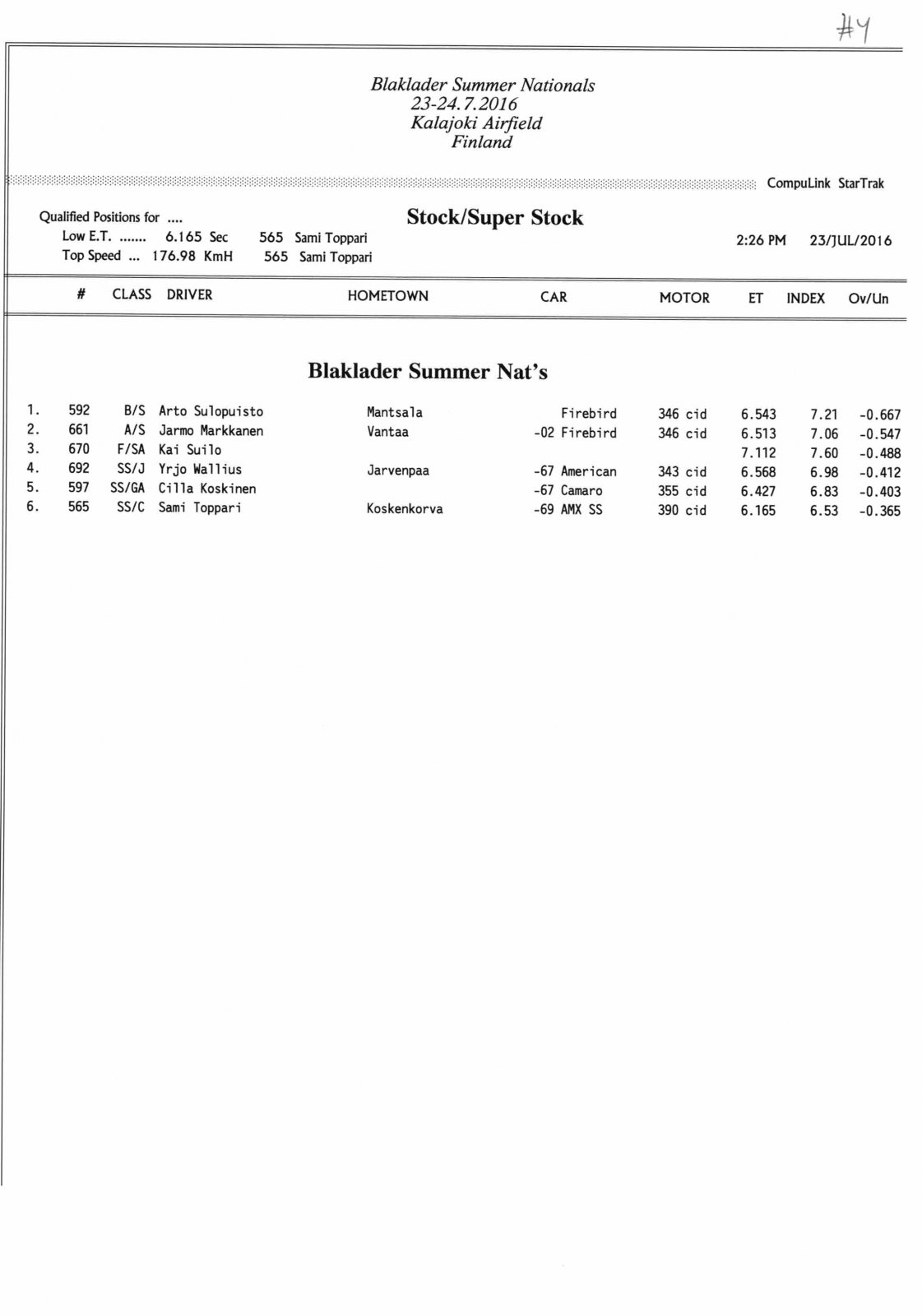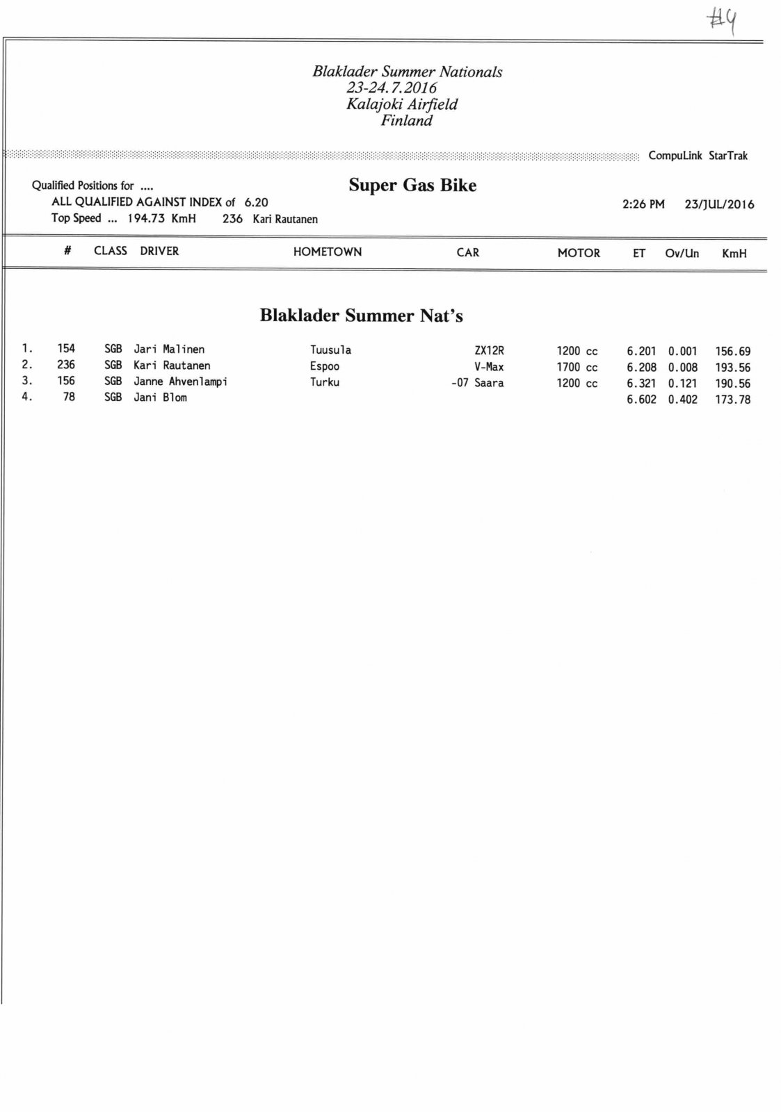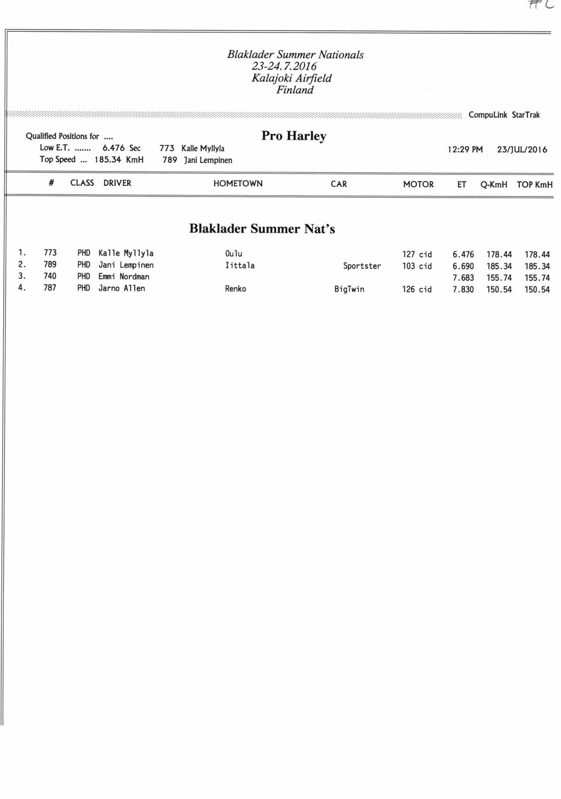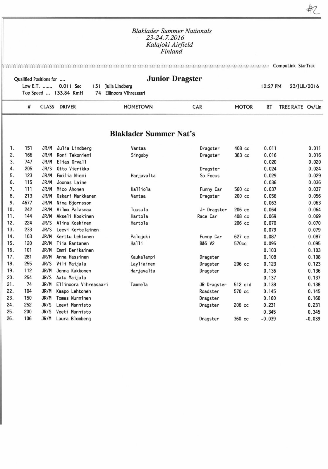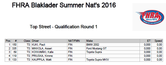 FHRA uutiset 23.-24.7.2016 FHRA kiihdytysajon SM-osakilpailu 4, Blåkläder Summer Nationals, Kalajoki