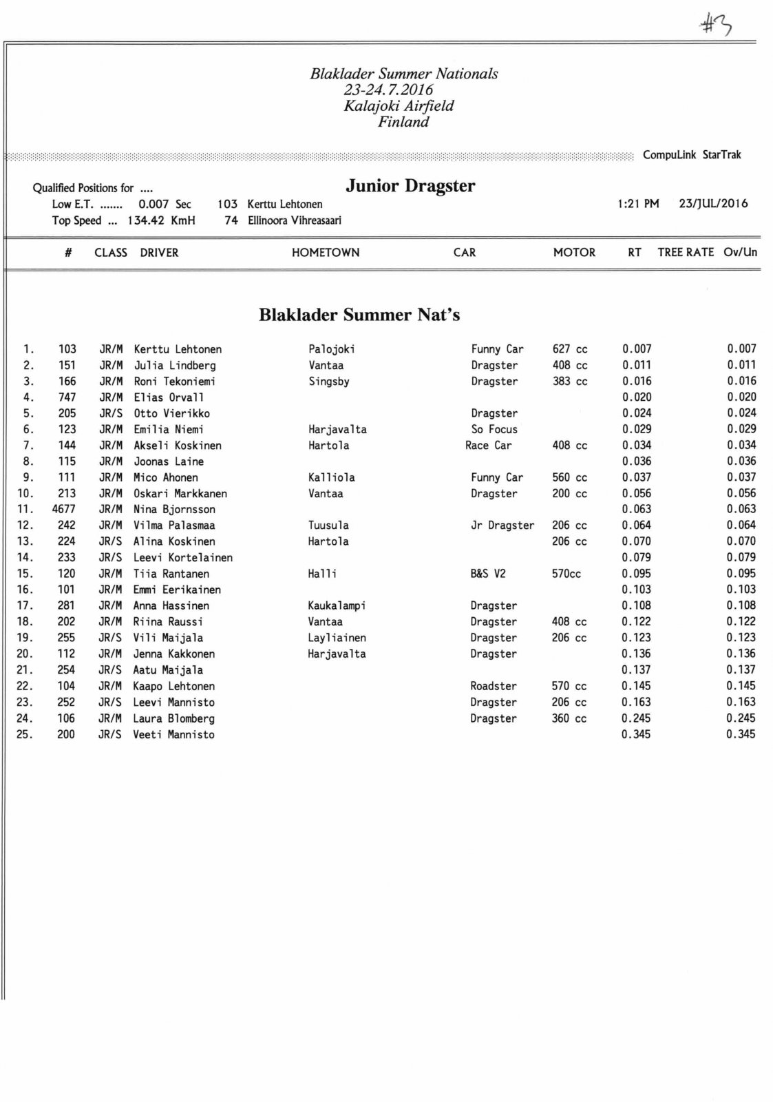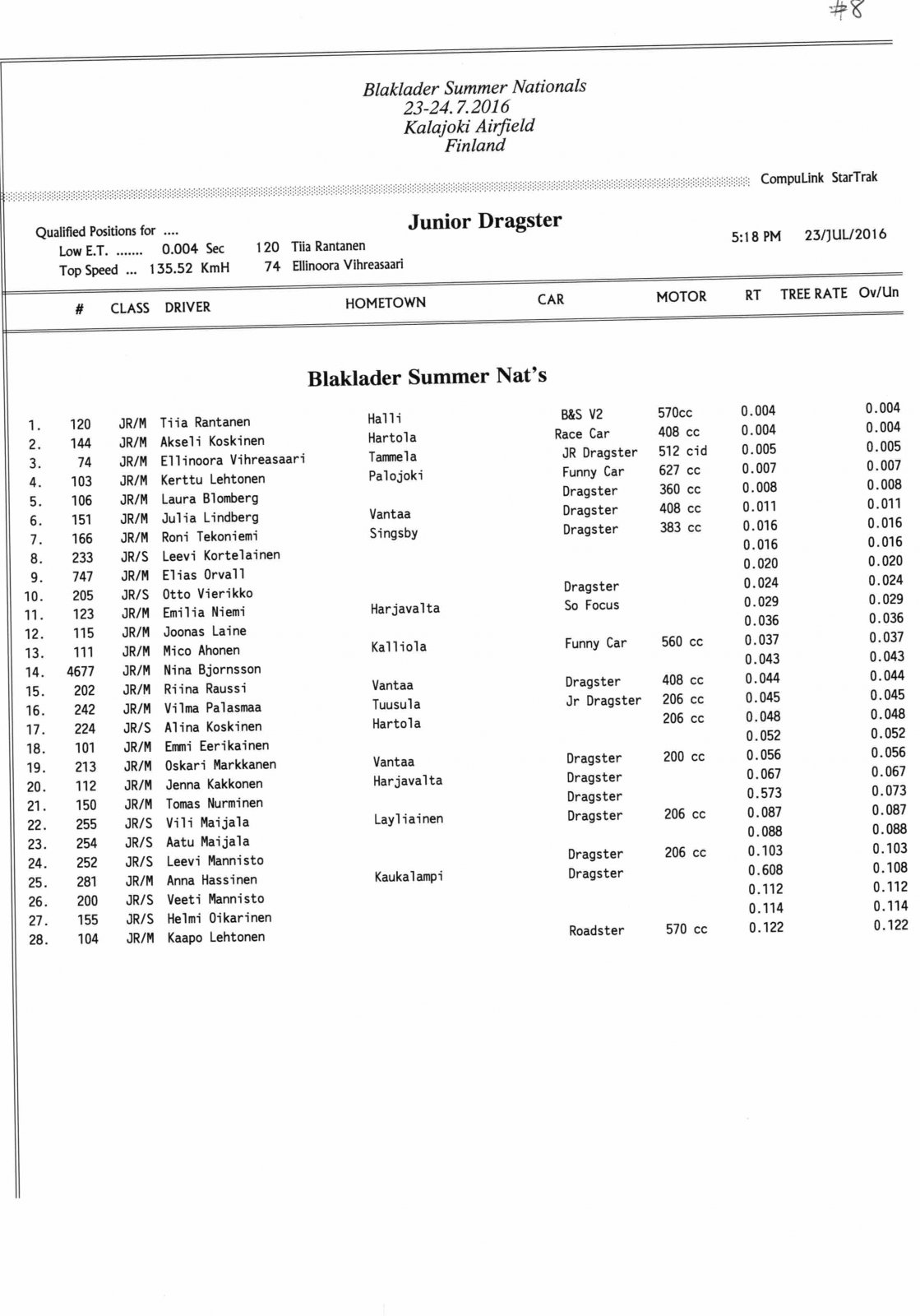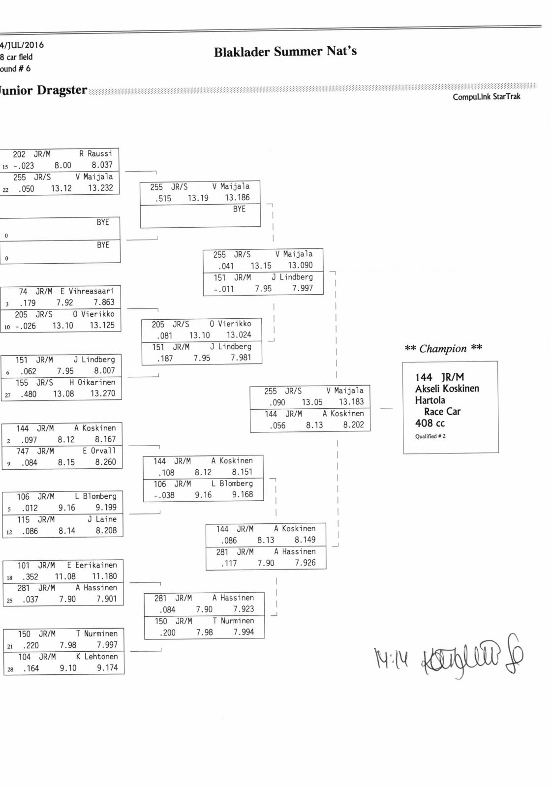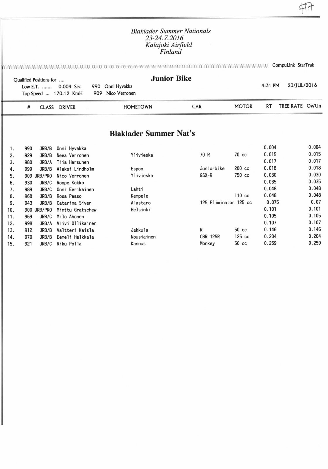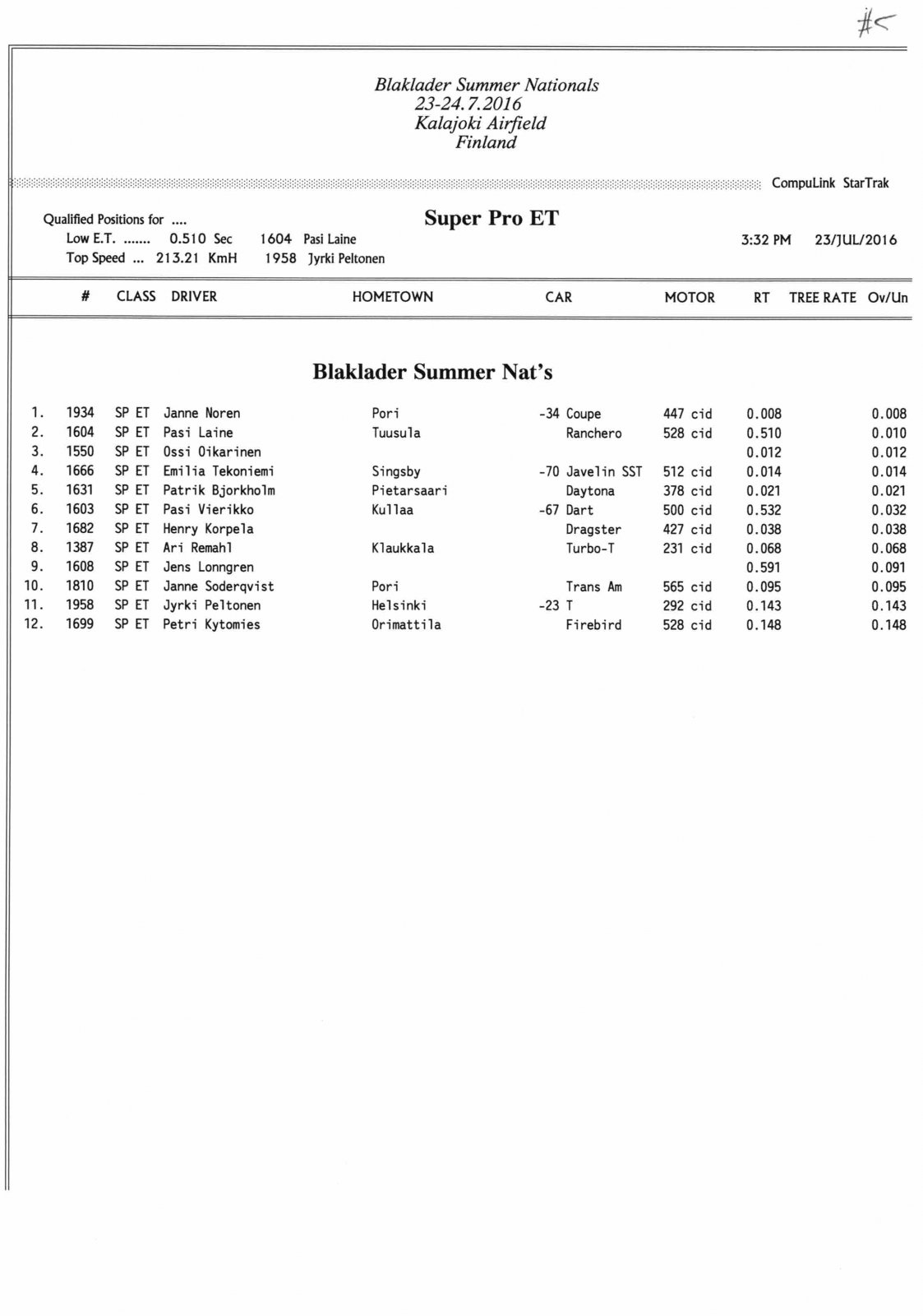 FHRA uutiset 23.-24.7.2016 FHRA kiihdytysajon SM-osakilpailu 4, Blåkläder Summer Nationals, Kalajoki