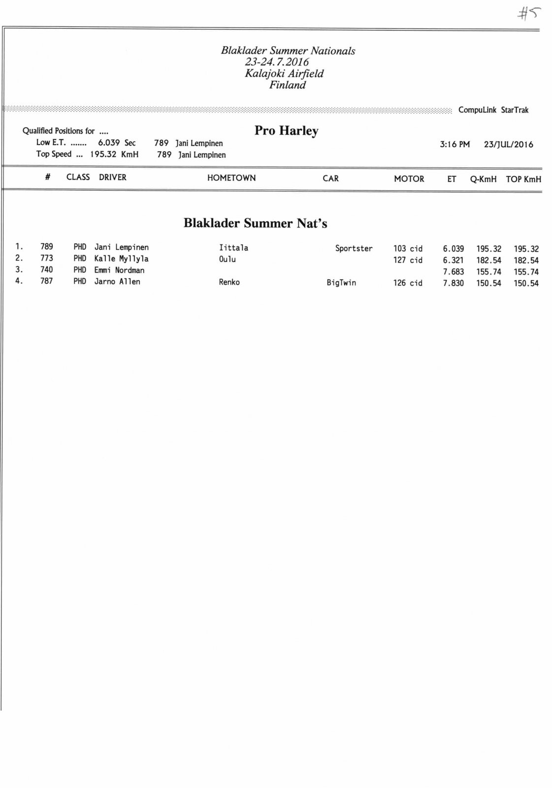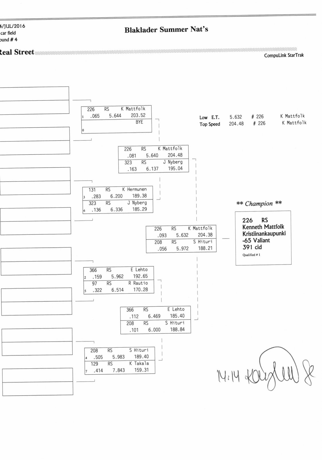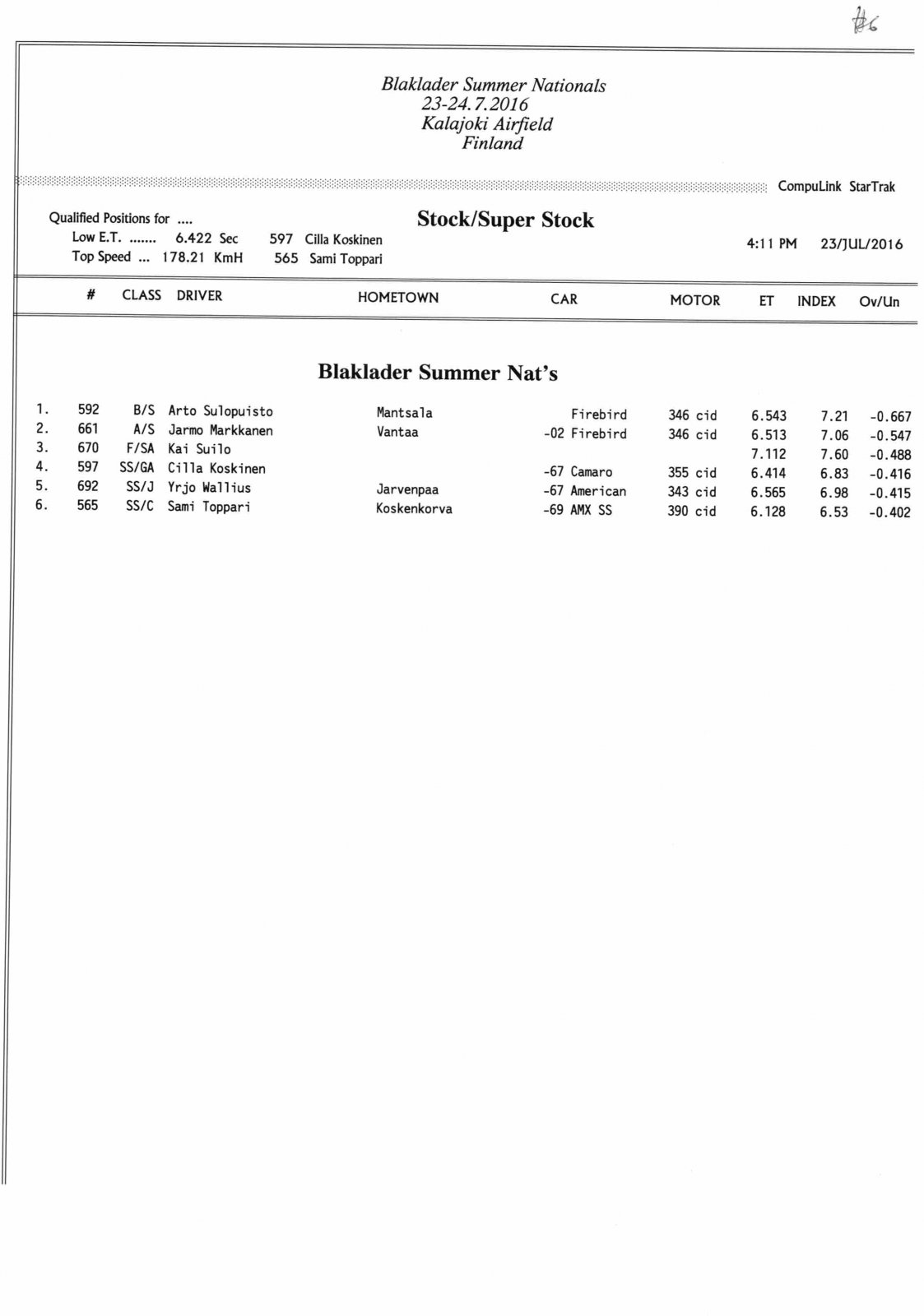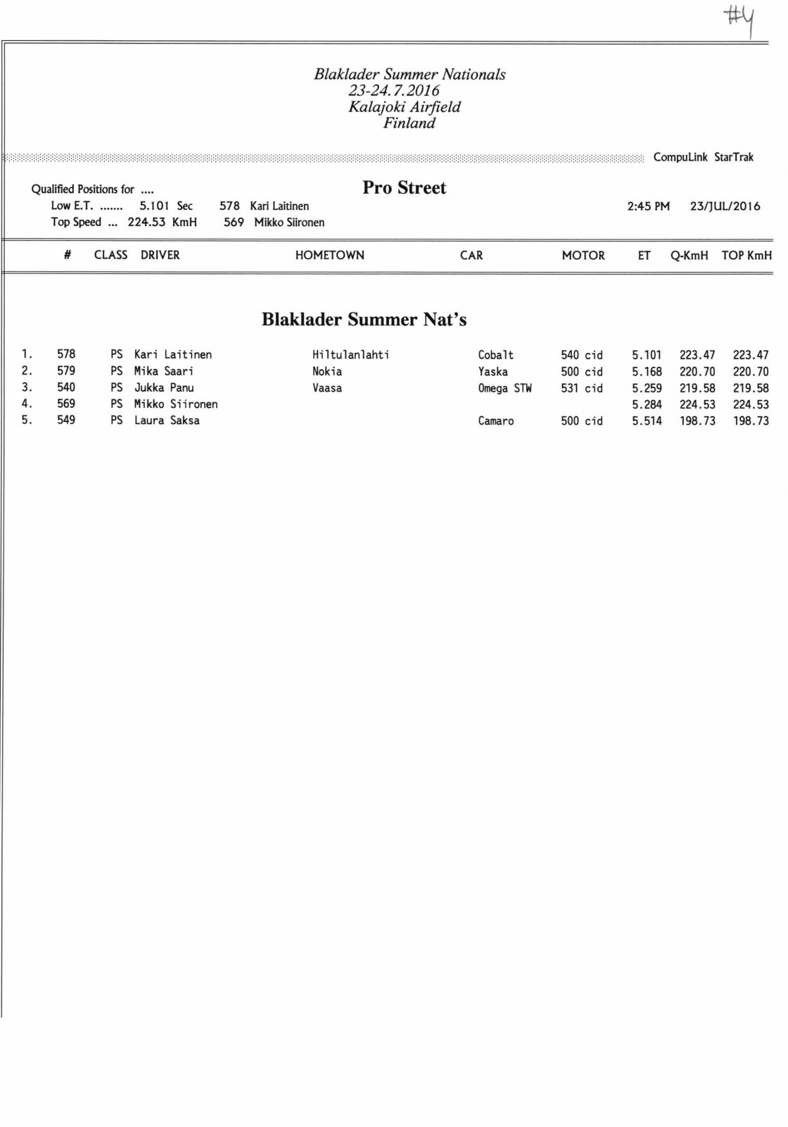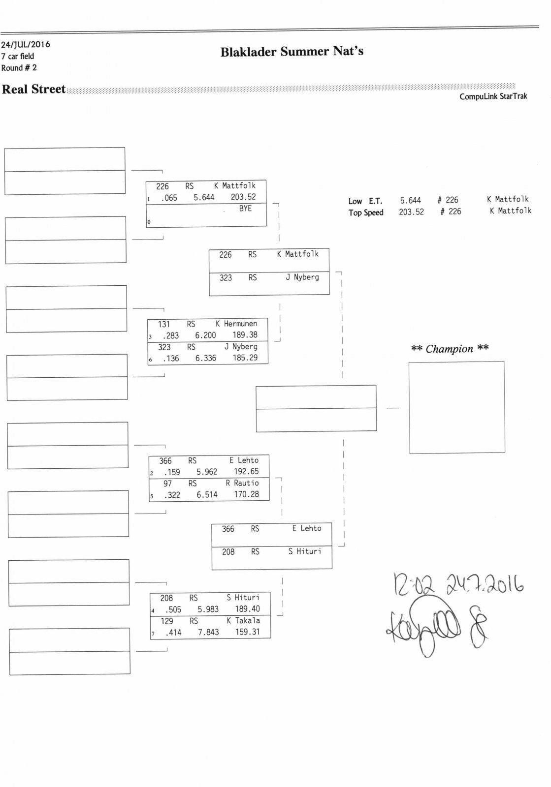 FHRA uutiset 23.-24.7.2016 FHRA kiihdytysajon SM-osakilpailu 4, Blåkläder Summer Nationals, Kalajoki