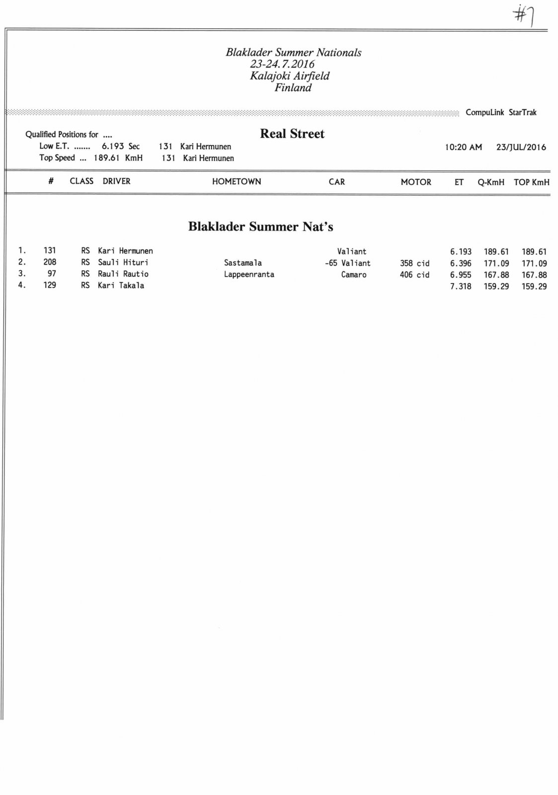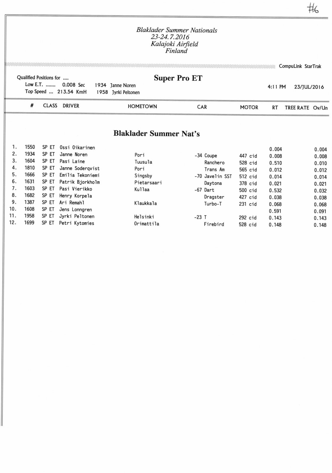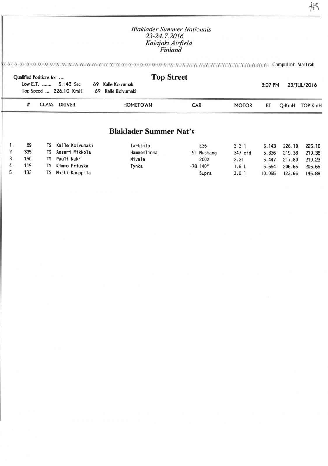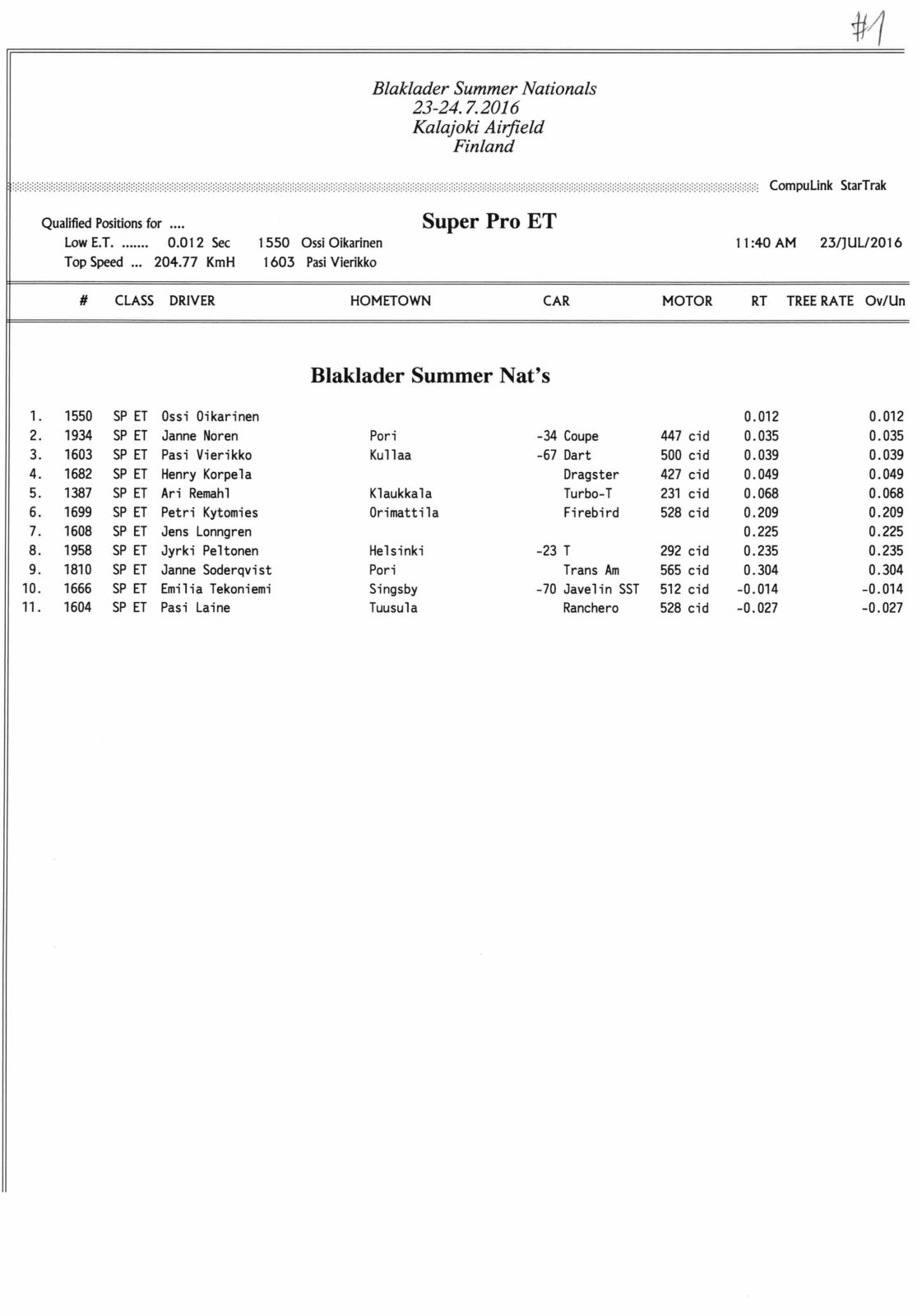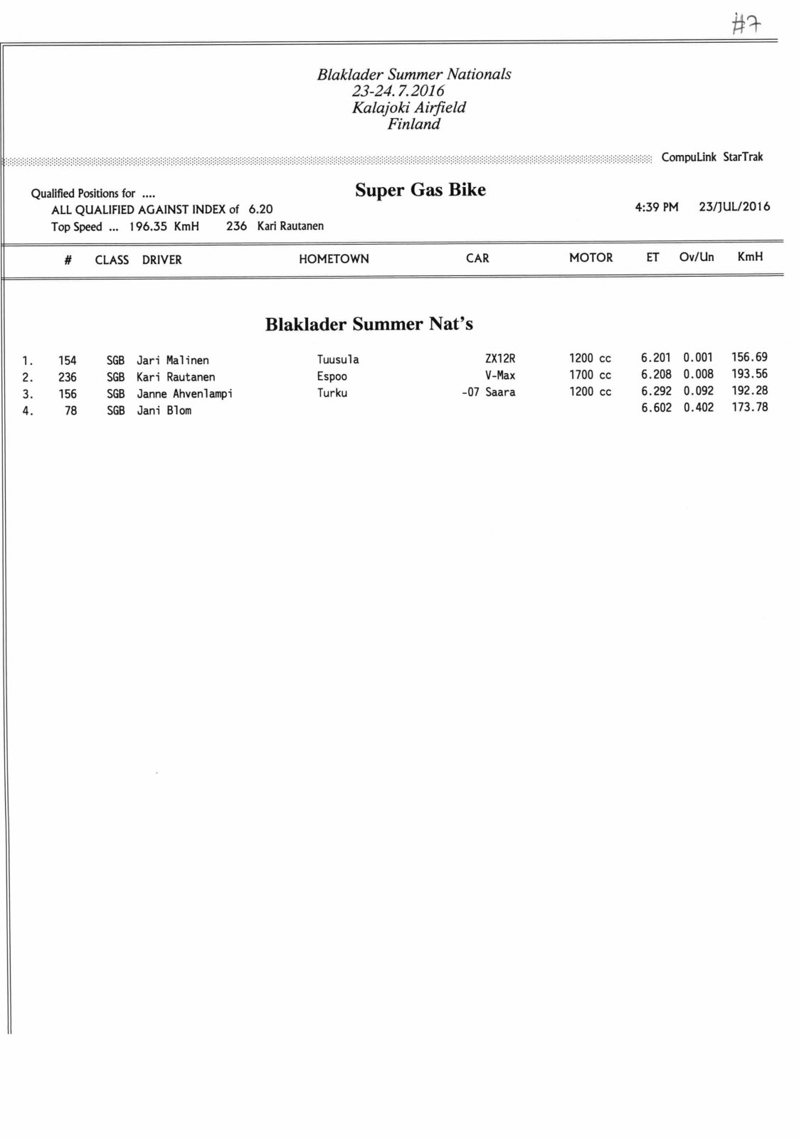 FHRA uutiset 23.-24.7.2016 FHRA kiihdytysajon SM-osakilpailu 4, Blåkläder Summer Nationals, Kalajoki