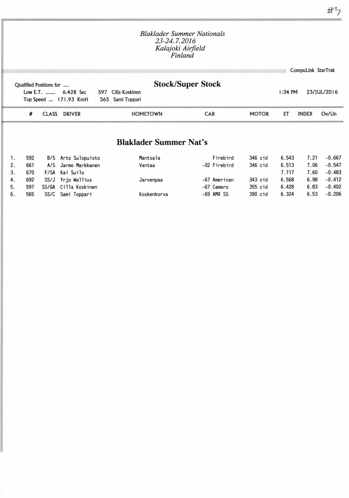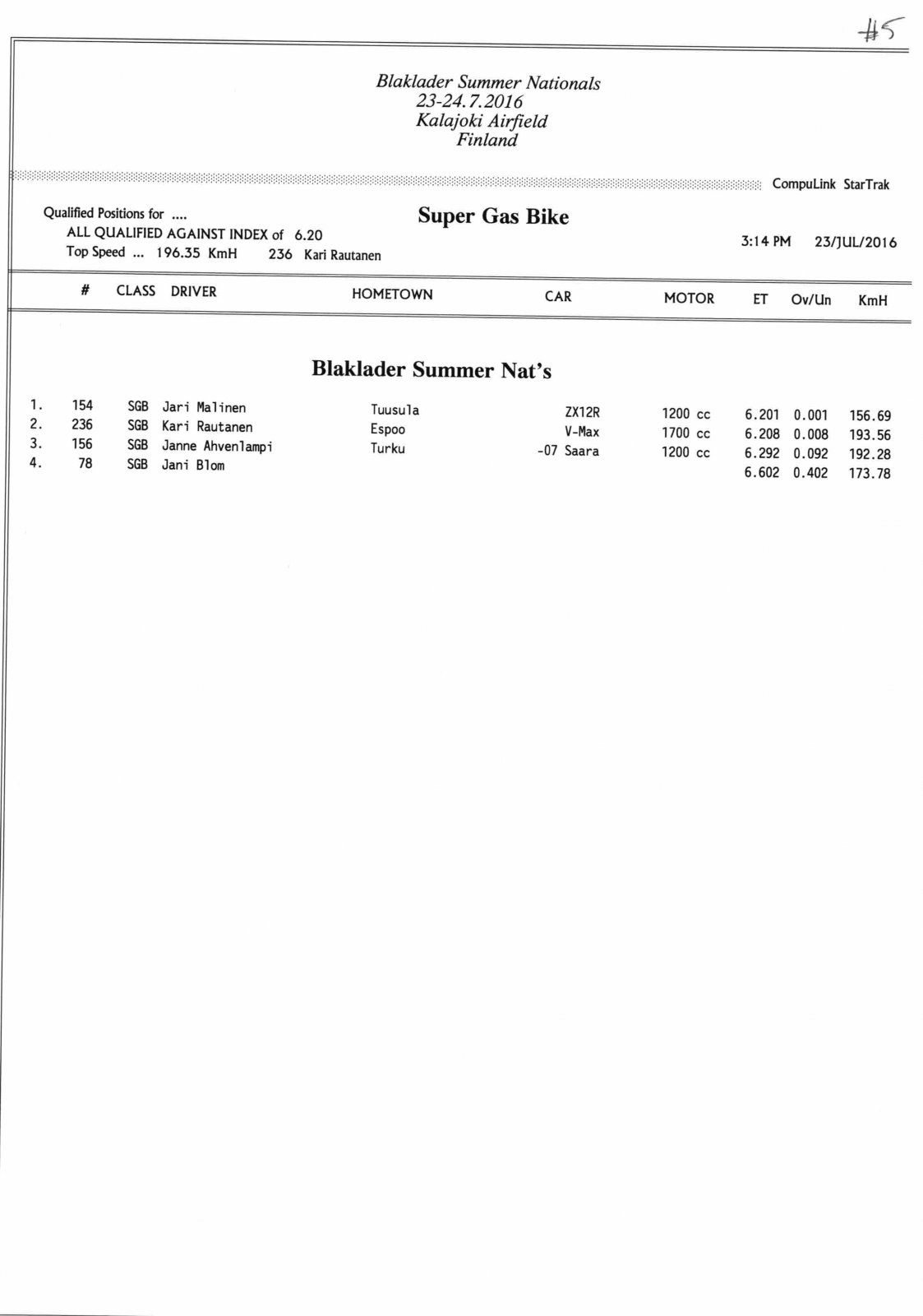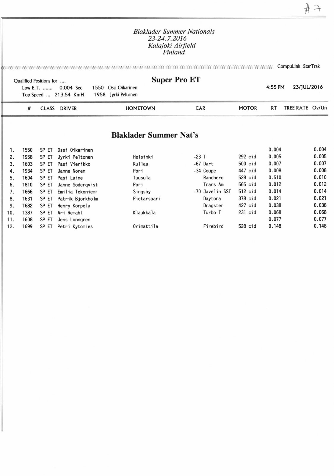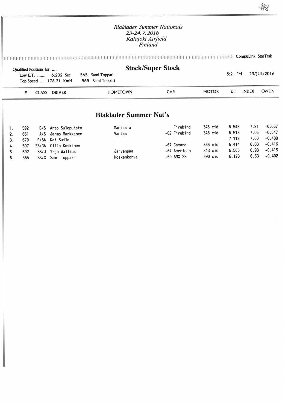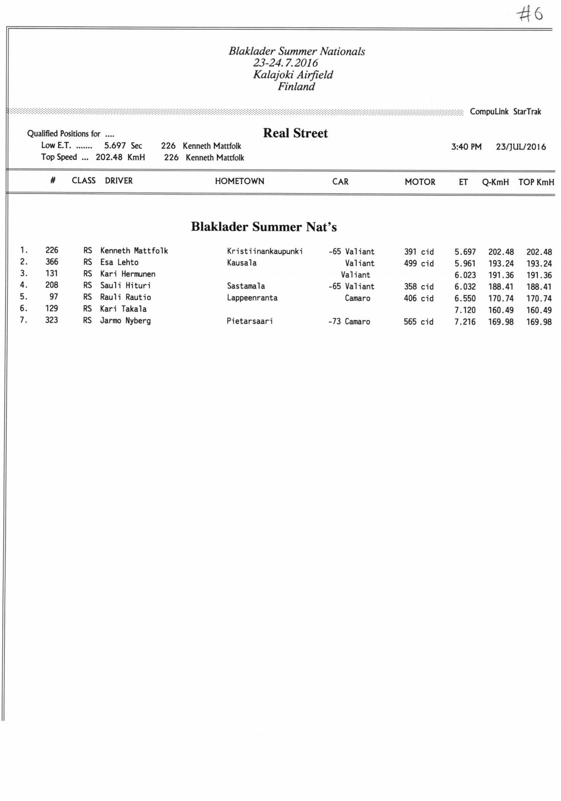 FHRA uutiset 23.-24.7.2016 FHRA kiihdytysajon SM-osakilpailu 4, Blåkläder Summer Nationals, Kalajoki