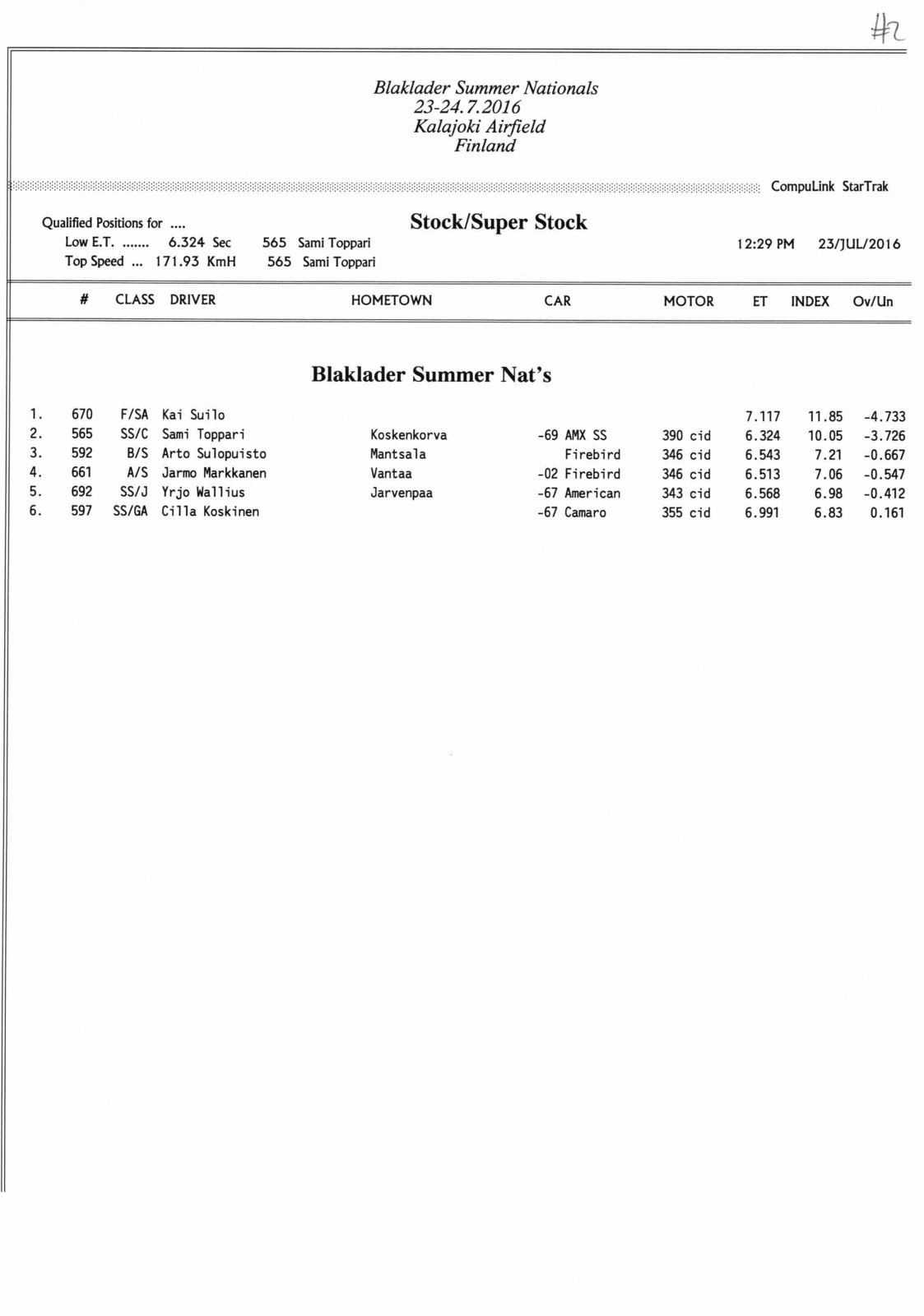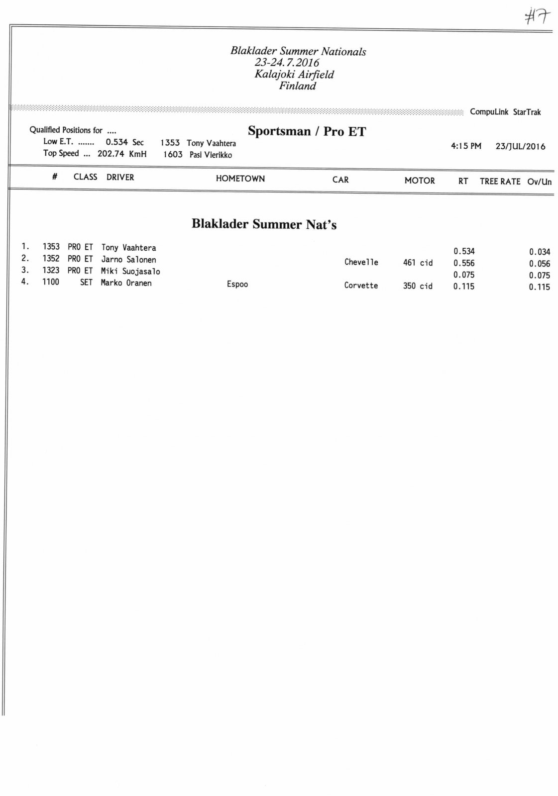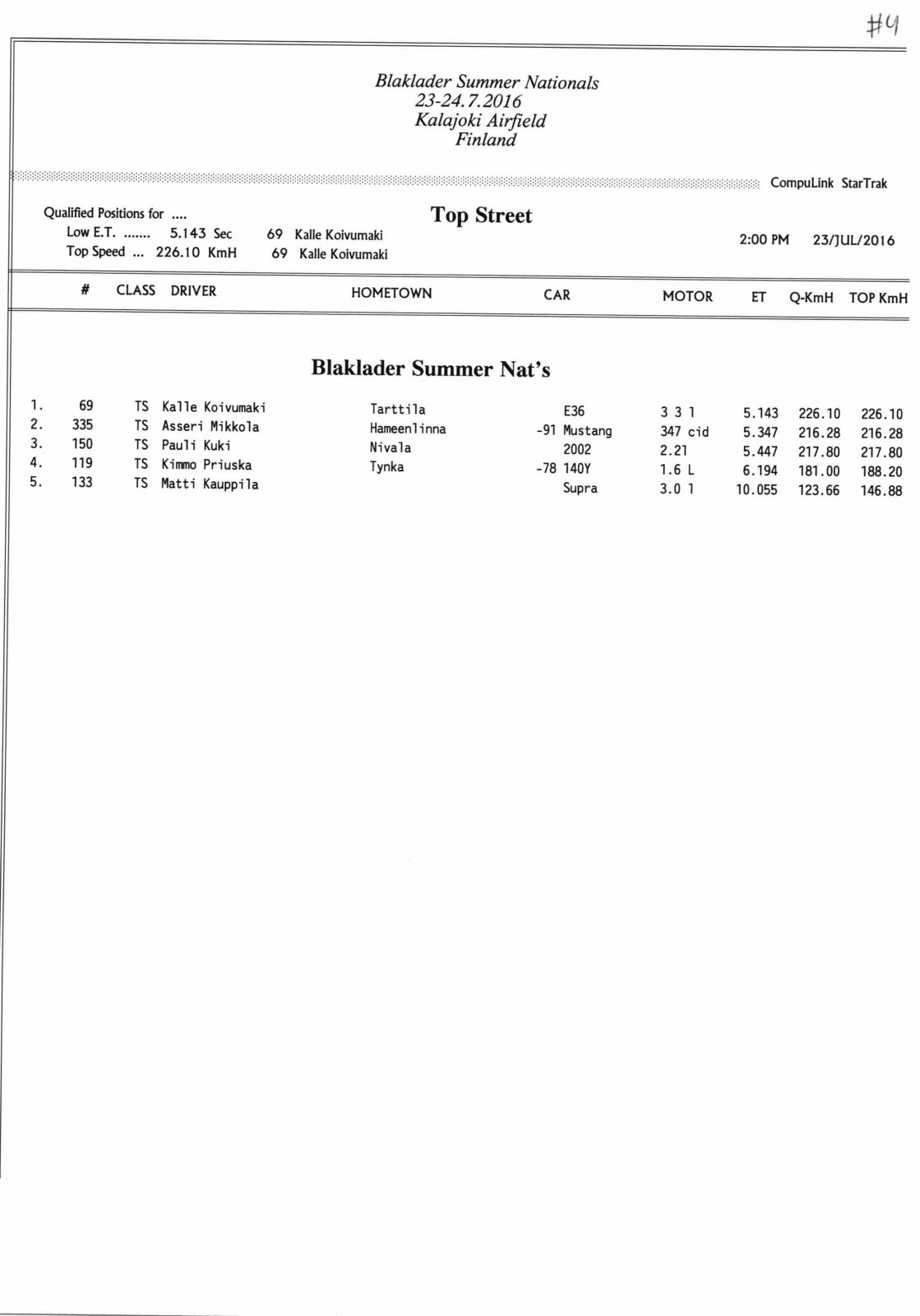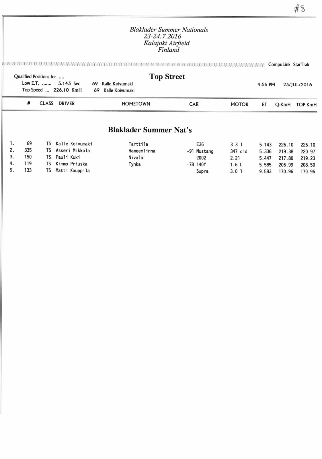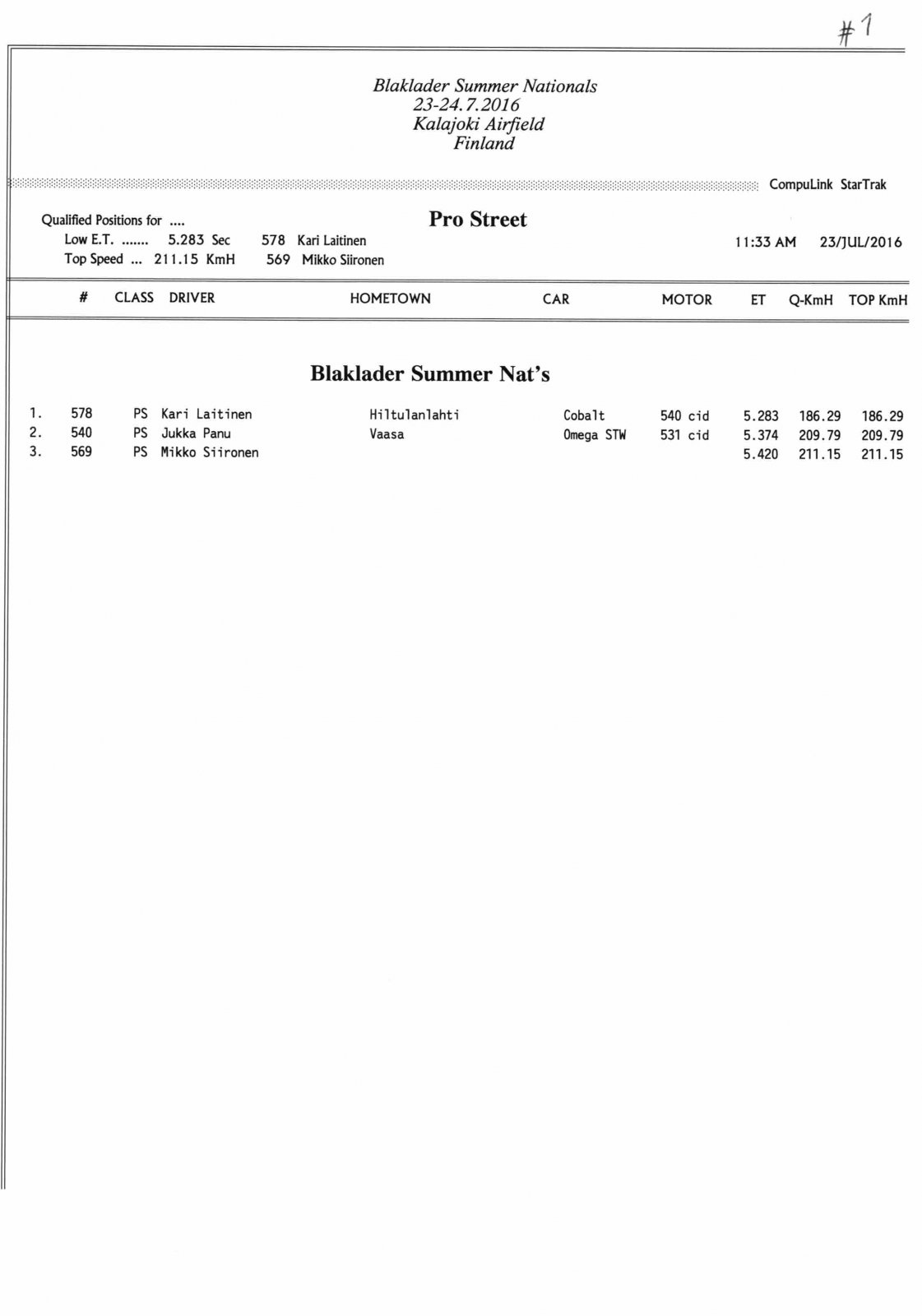 FHRA uutiset 23.-24.7.2016 FHRA kiihdytysajon SM-osakilpailu 4, Blåkläder Summer Nationals, Kalajoki