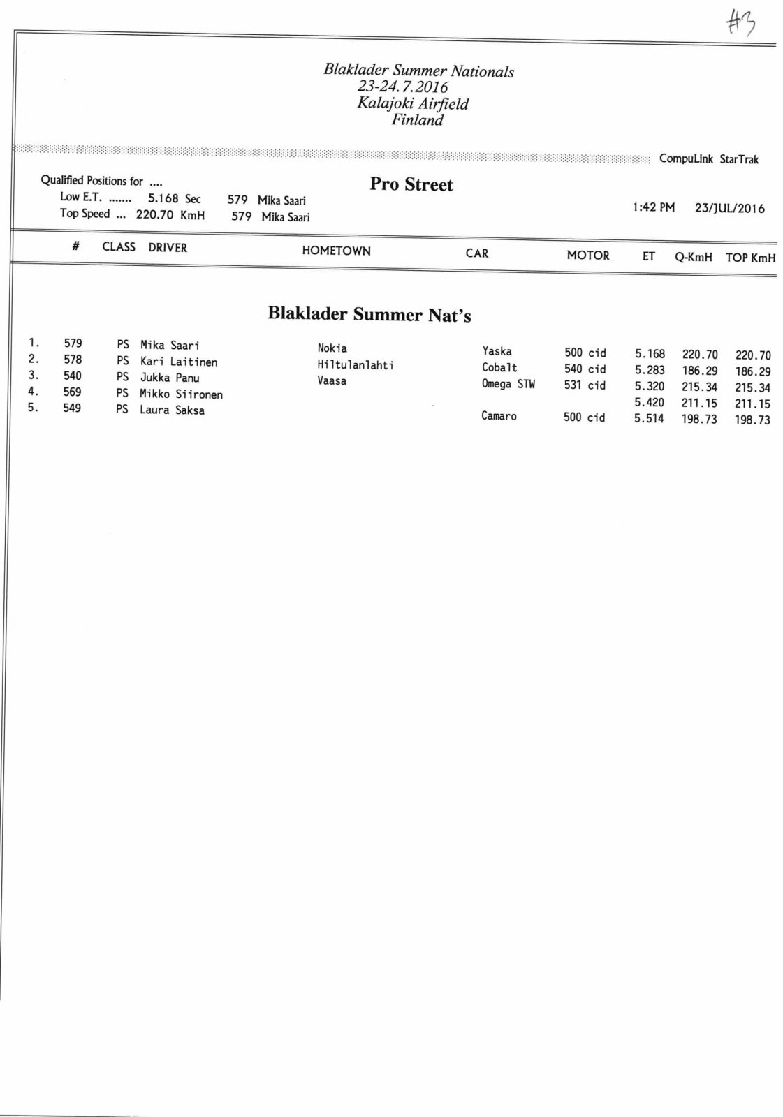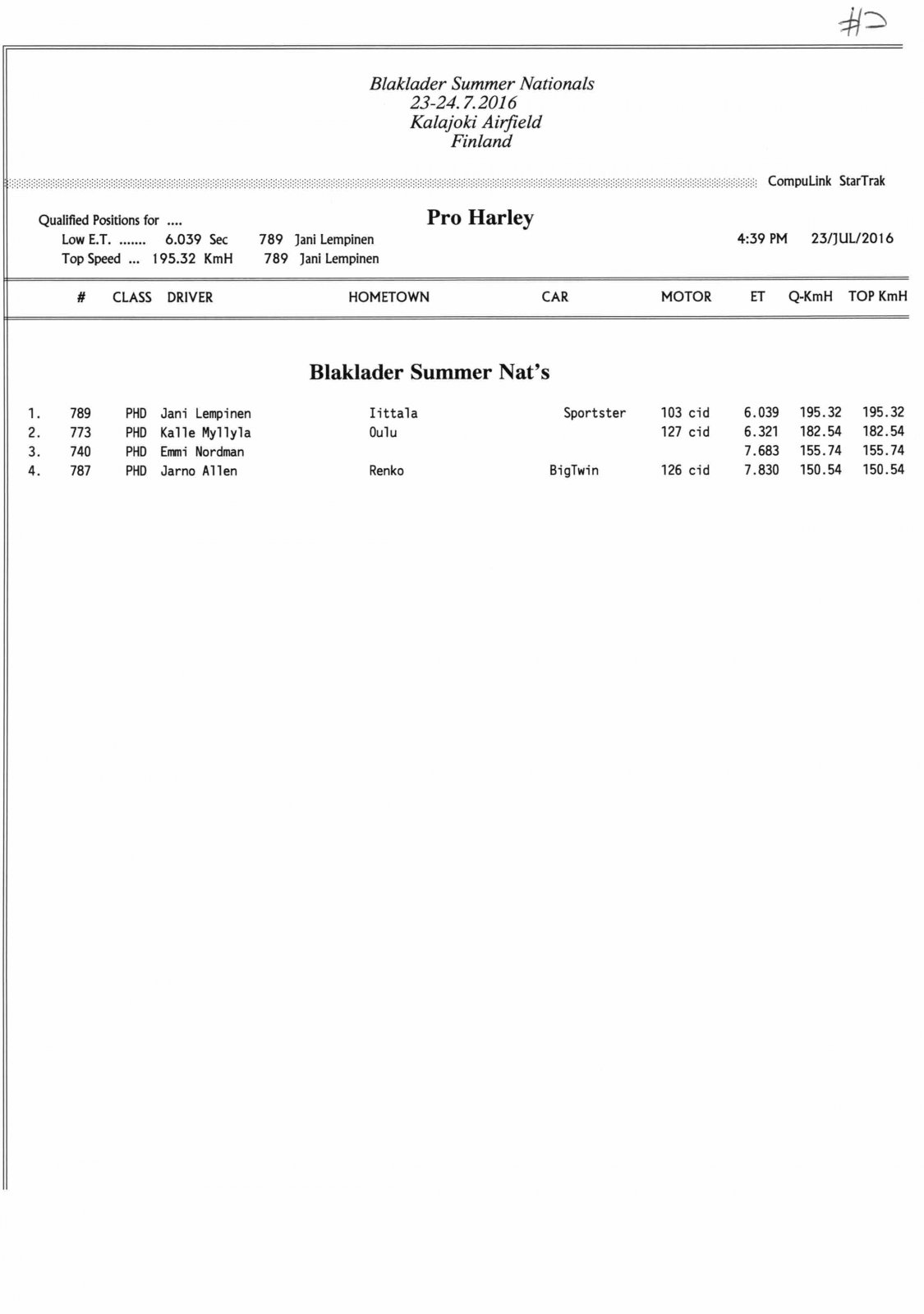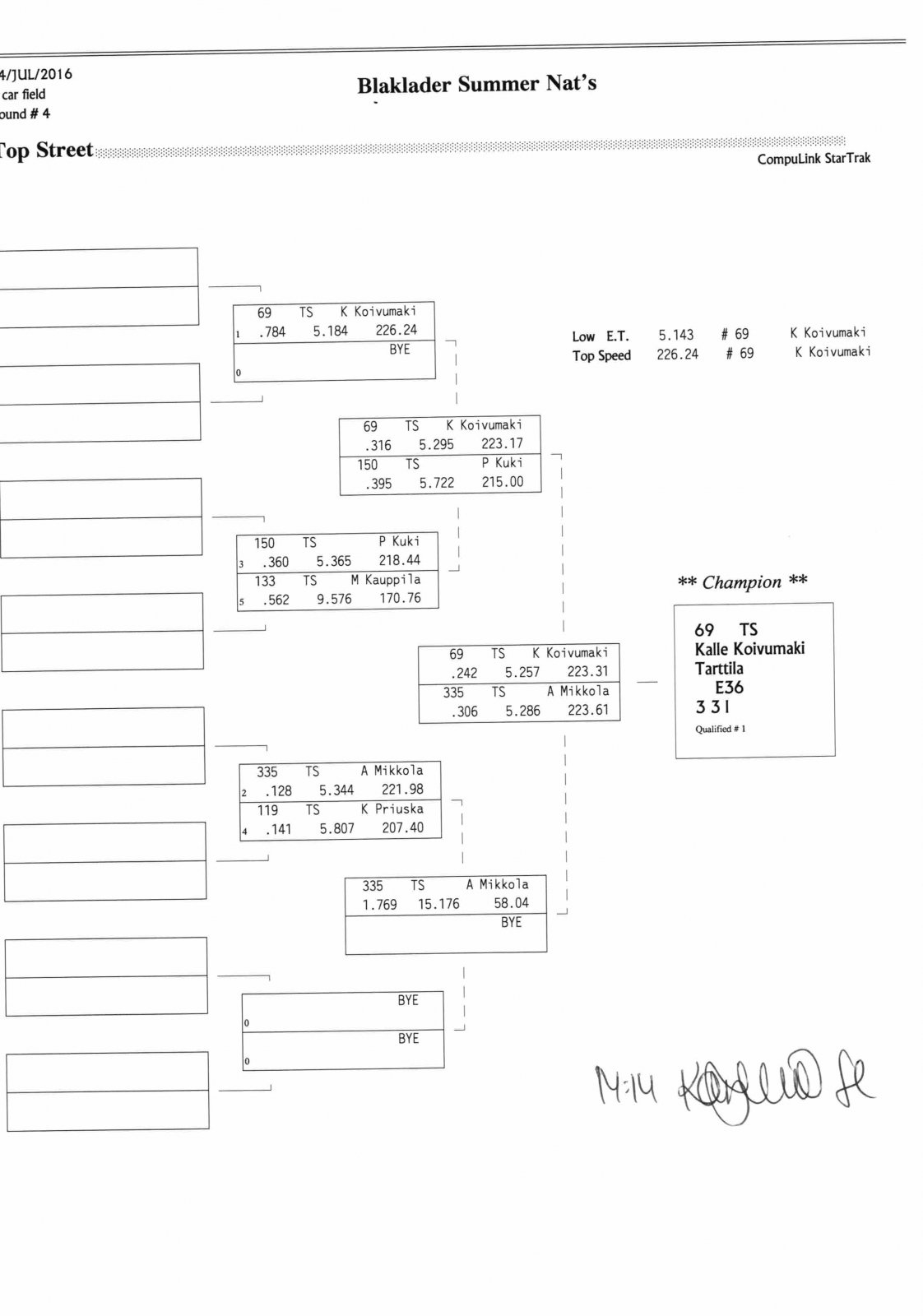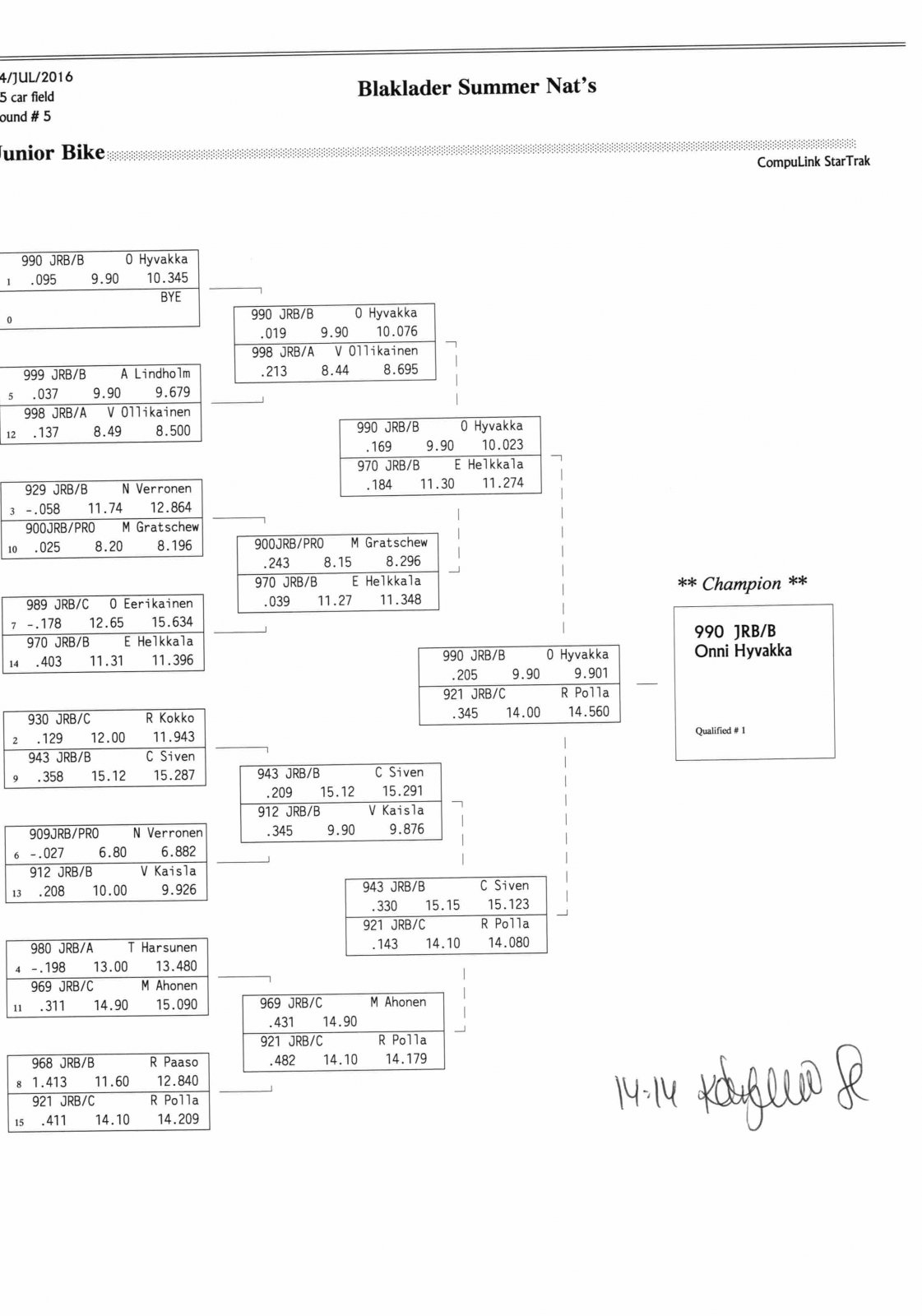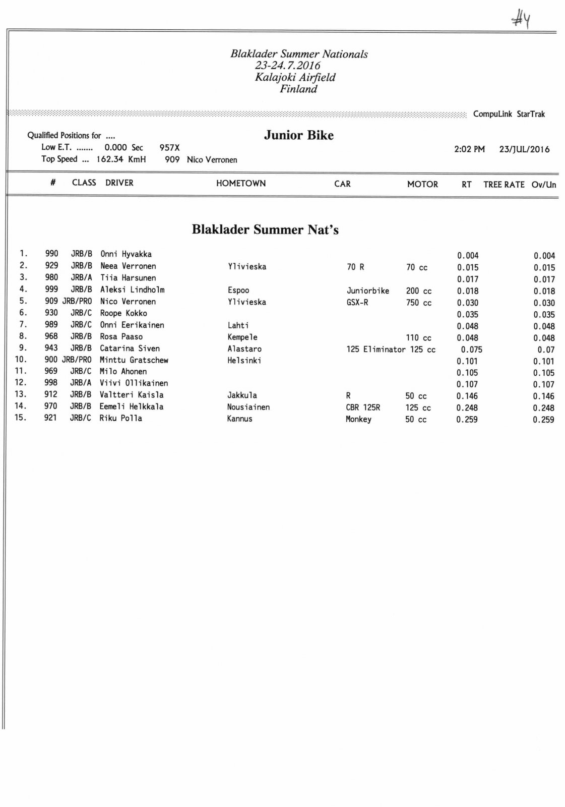 FHRA uutiset 23.-24.7.2016 FHRA kiihdytysajon SM-osakilpailu 4, Blåkläder Summer Nationals, Kalajoki