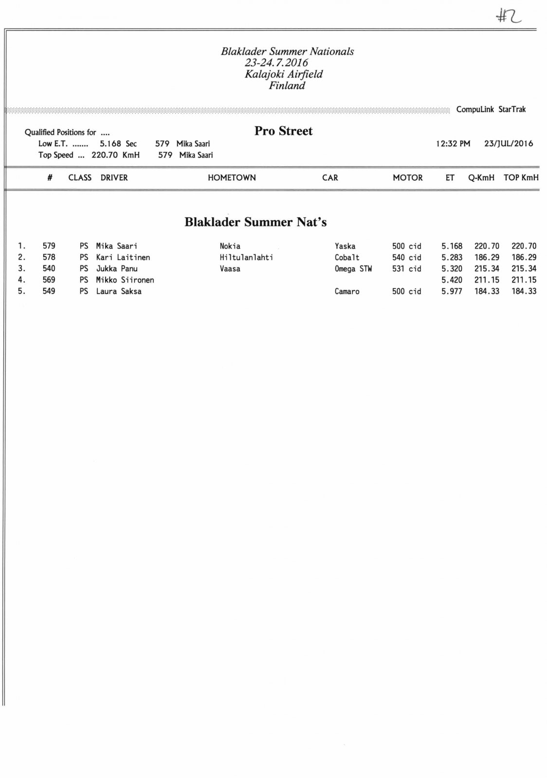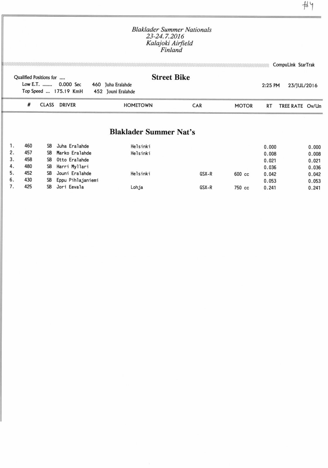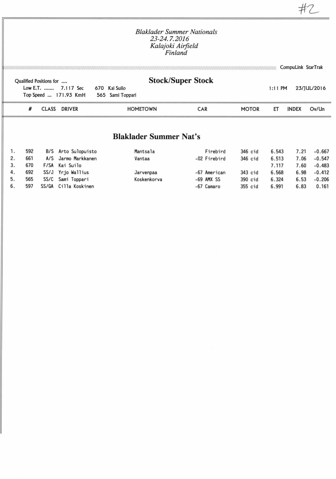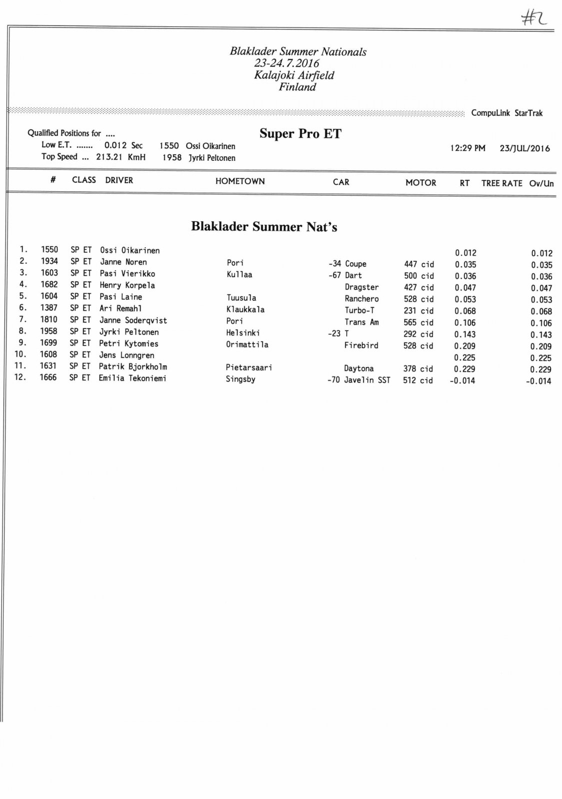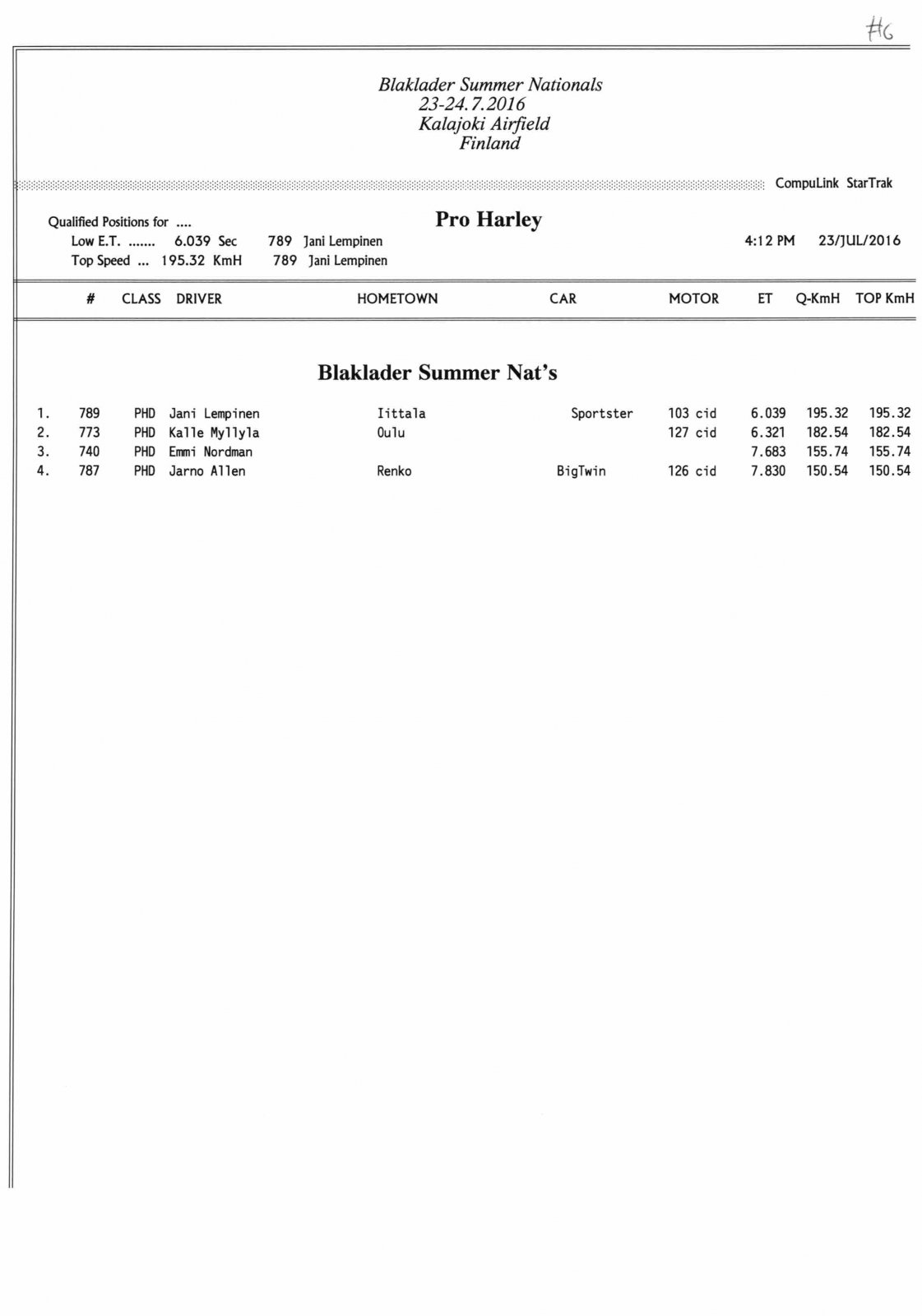 FHRA uutiset 23.-24.7.2016 FHRA kiihdytysajon SM-osakilpailu 4, Blåkläder Summer Nationals, Kalajoki