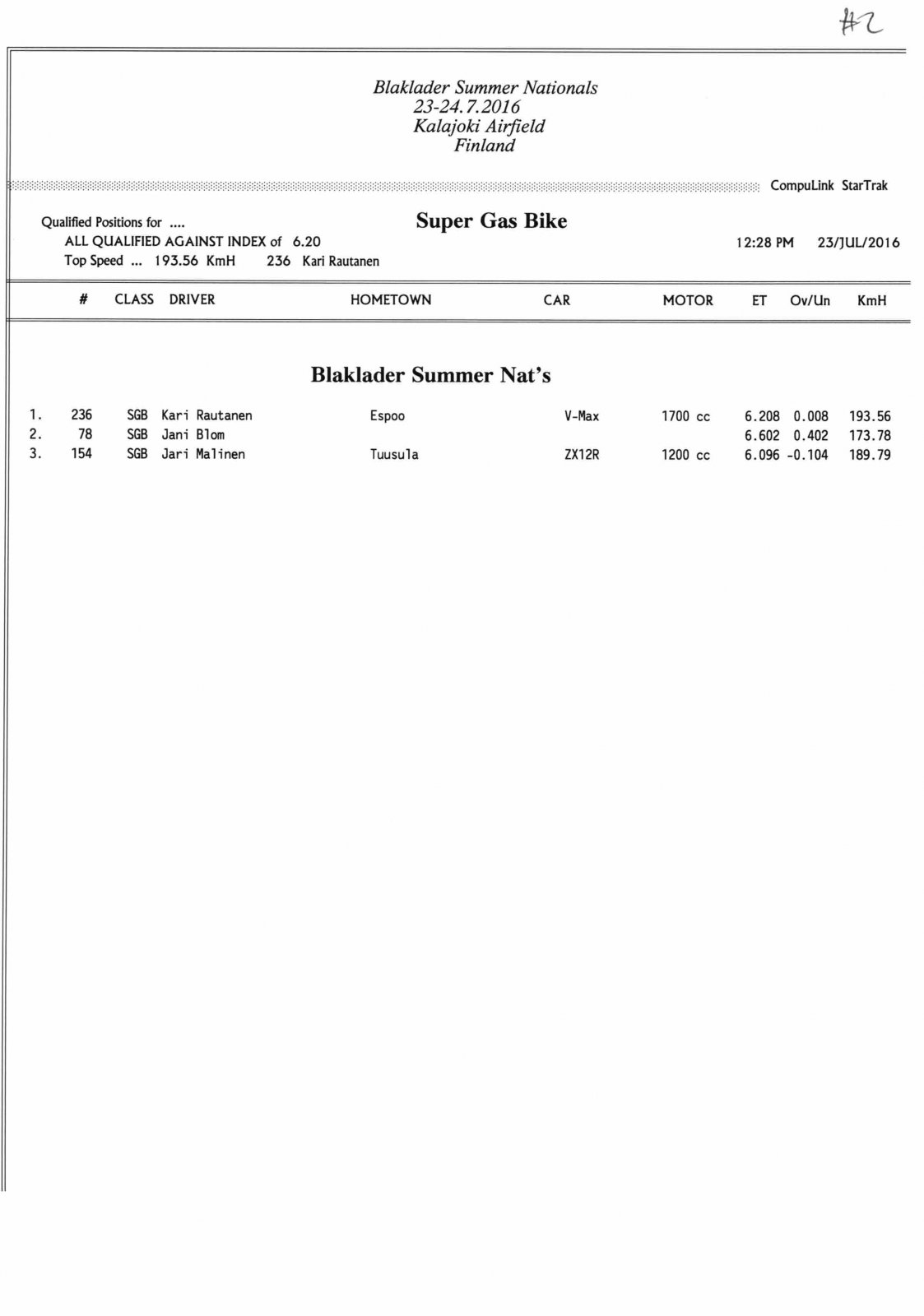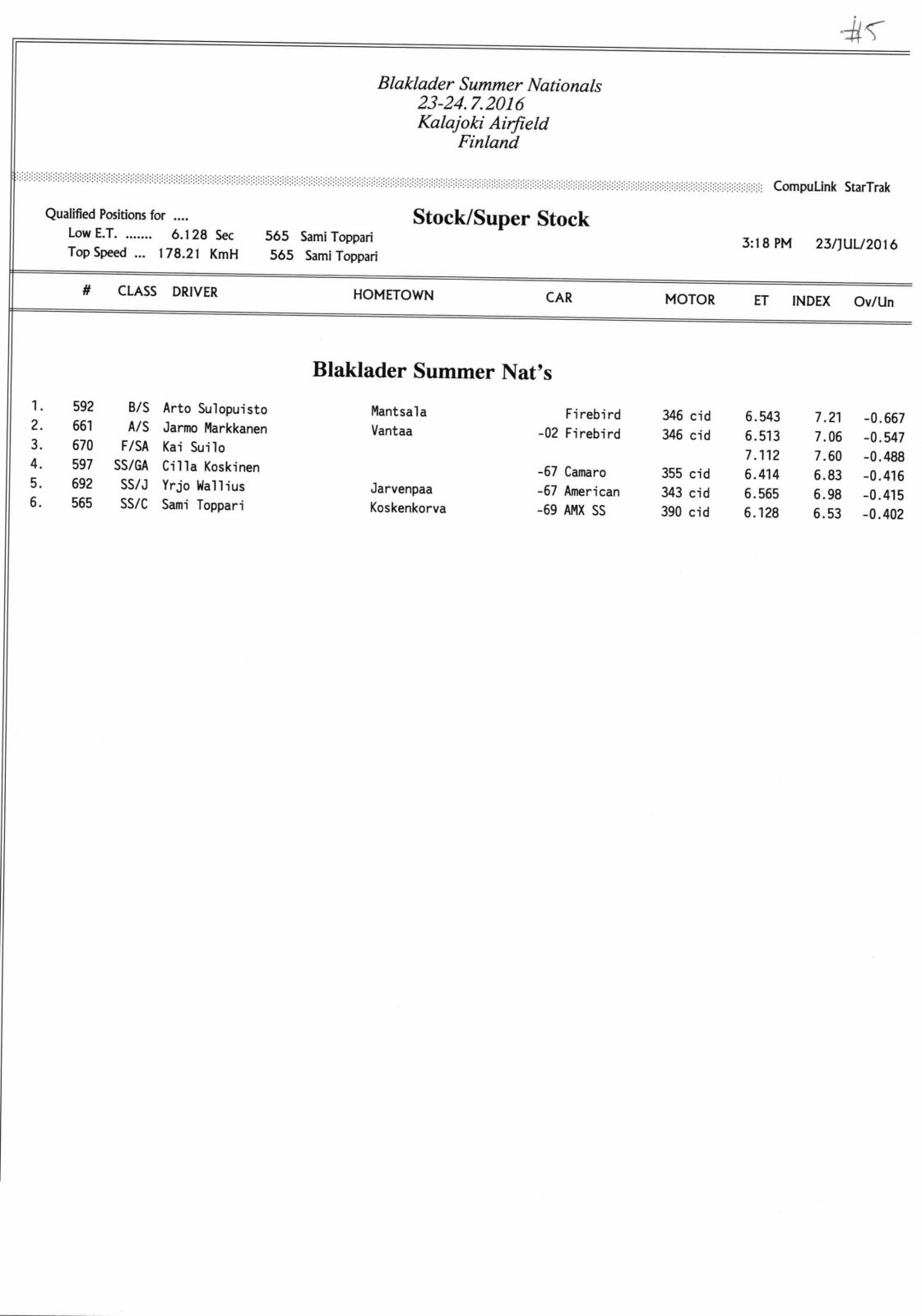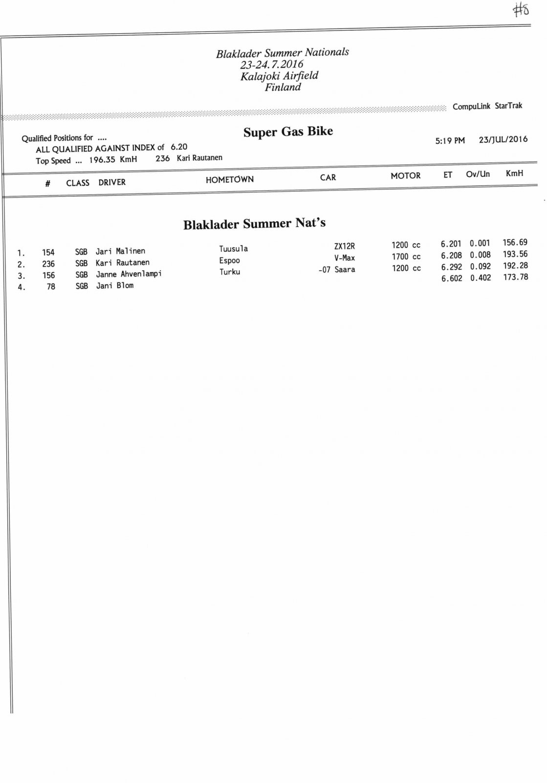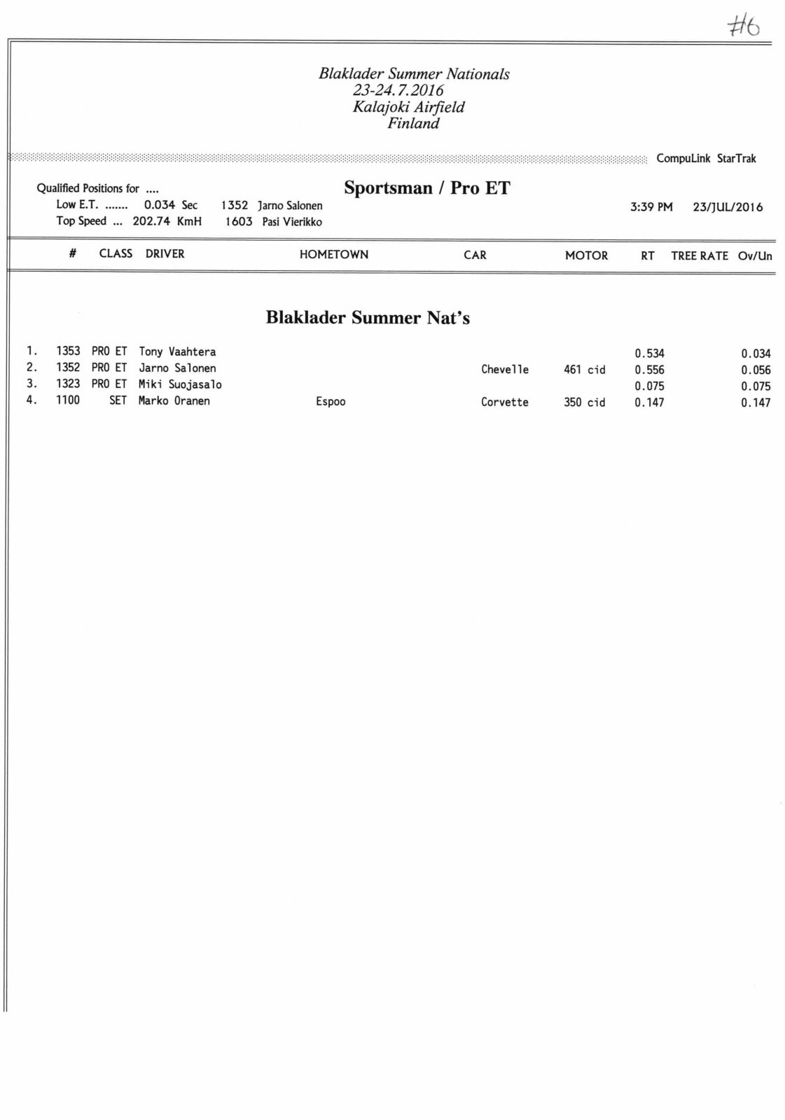 FHRA uutiset 23.-24.7.2016 FHRA kiihdytysajon SM-osakilpailu 4, Blåkläder Summer Nationals, Kalajoki