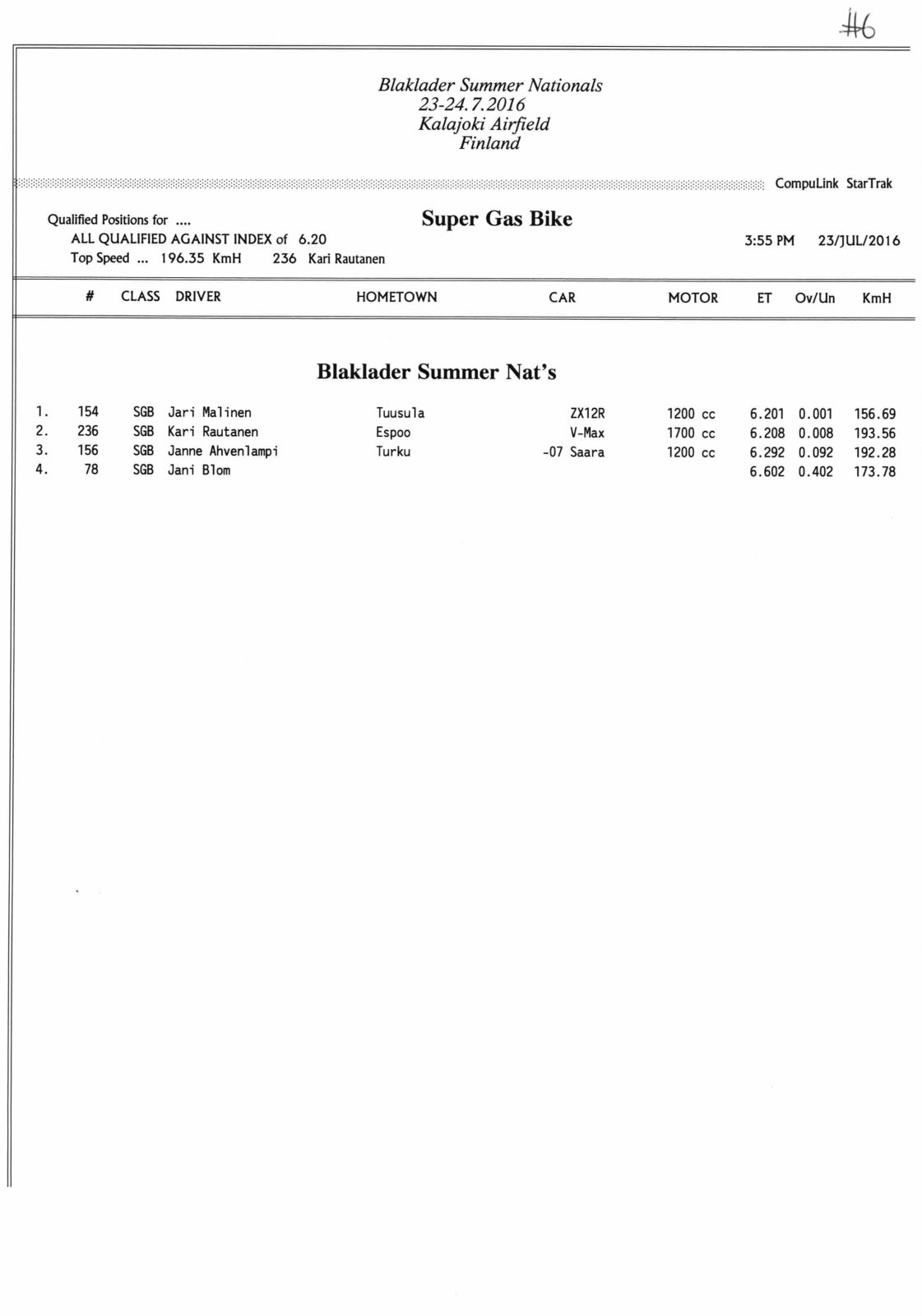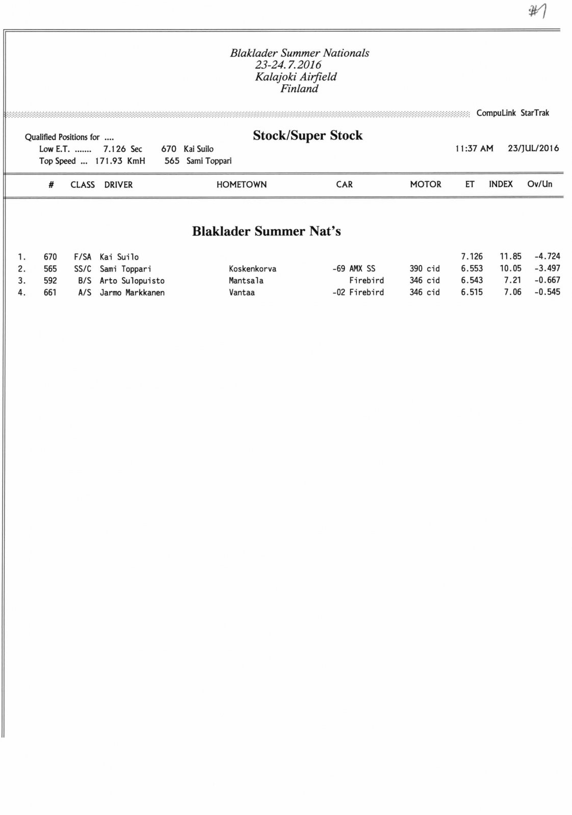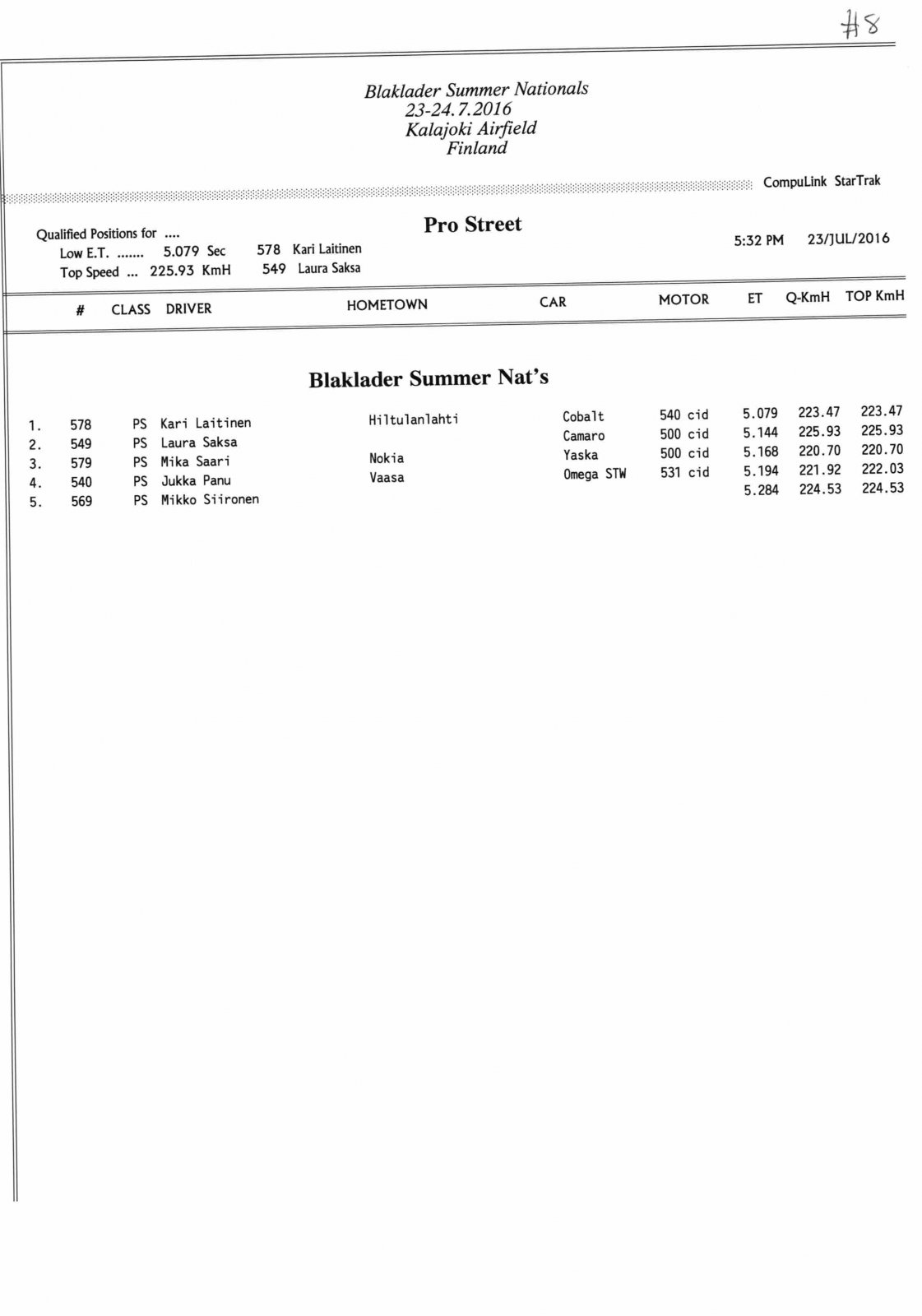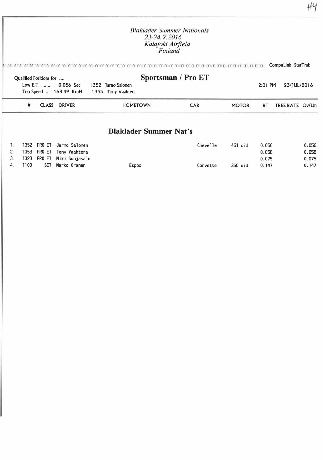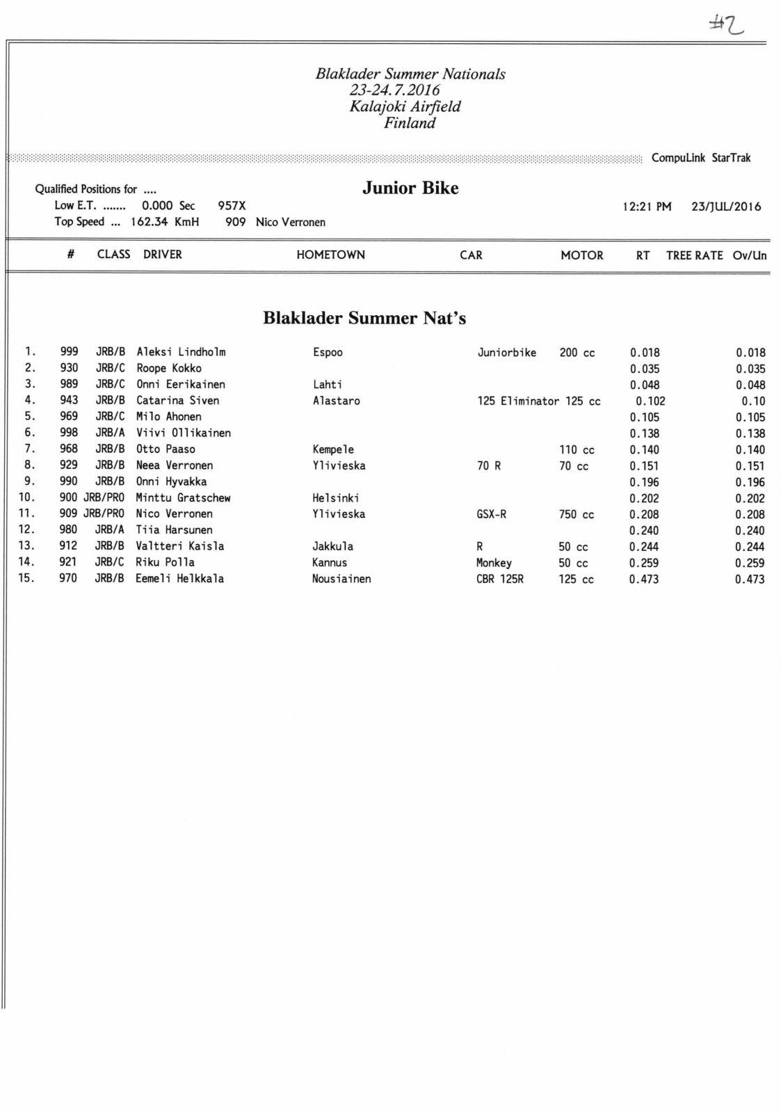 FHRA uutiset 23.-24.7.2016 FHRA kiihdytysajon SM-osakilpailu 4, Blåkläder Summer Nationals, Kalajoki