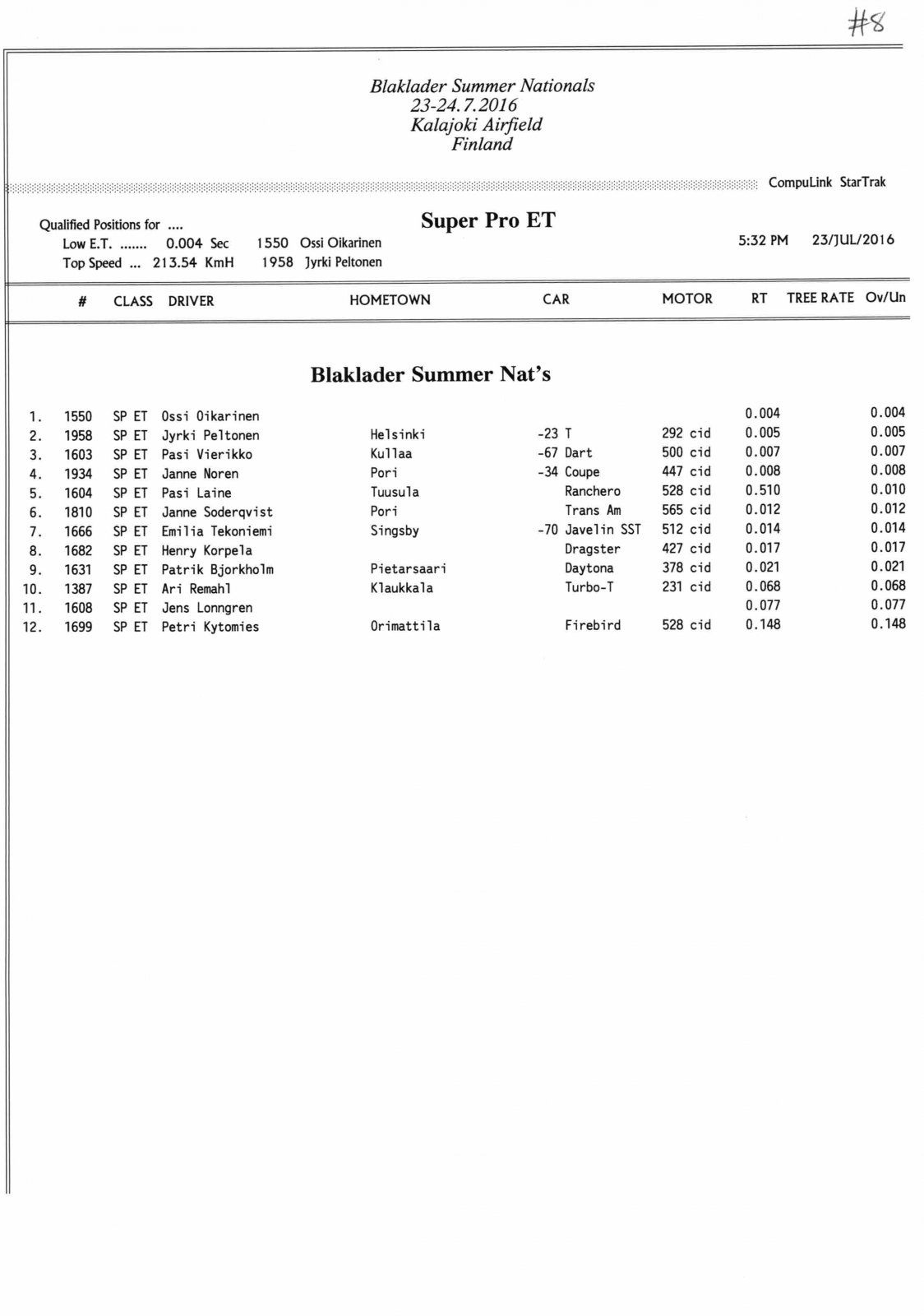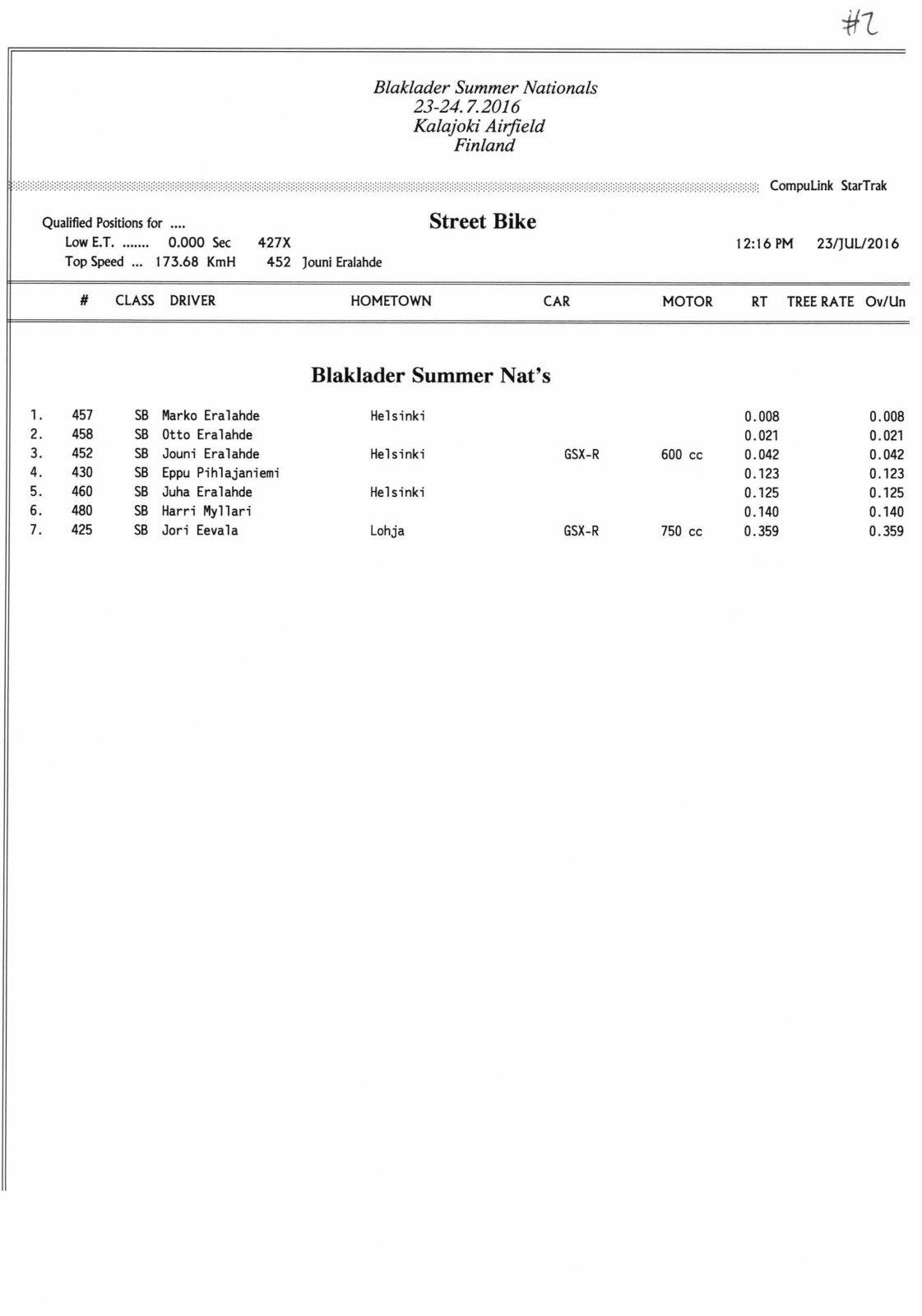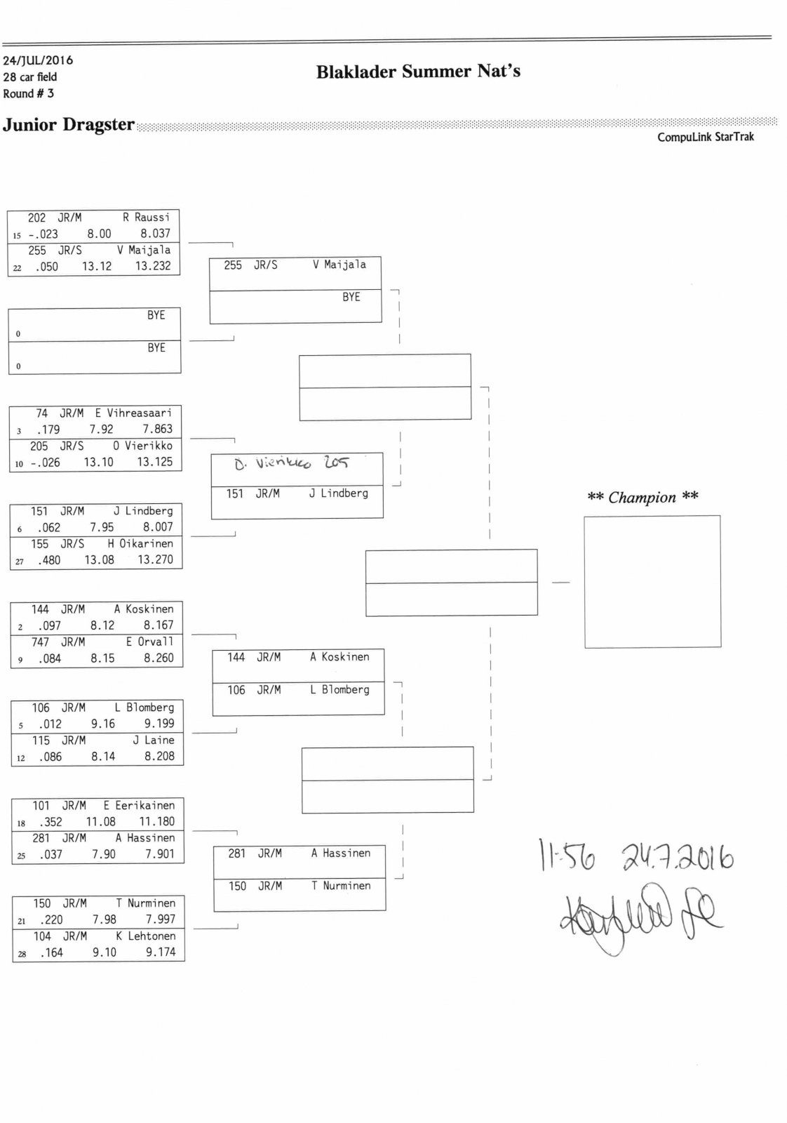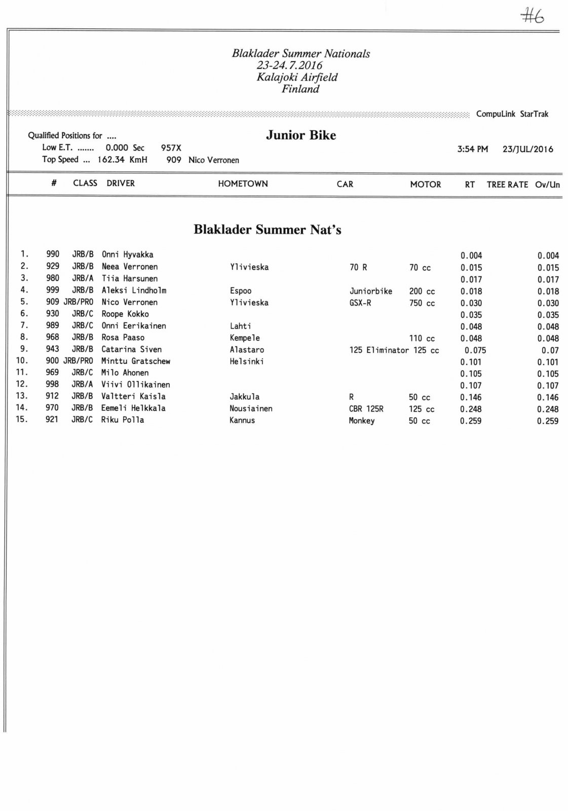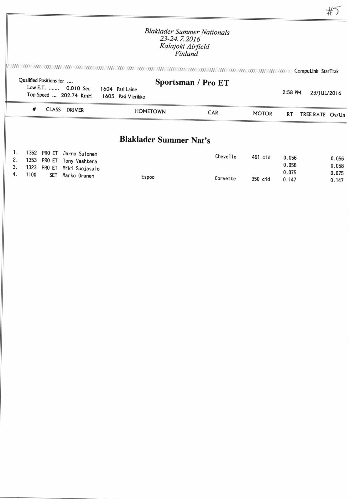 FHRA uutiset 23.-24.7.2016 FHRA kiihdytysajon SM-osakilpailu 4, Blåkläder Summer Nationals, Kalajoki