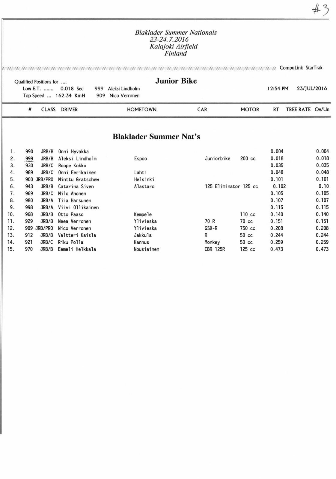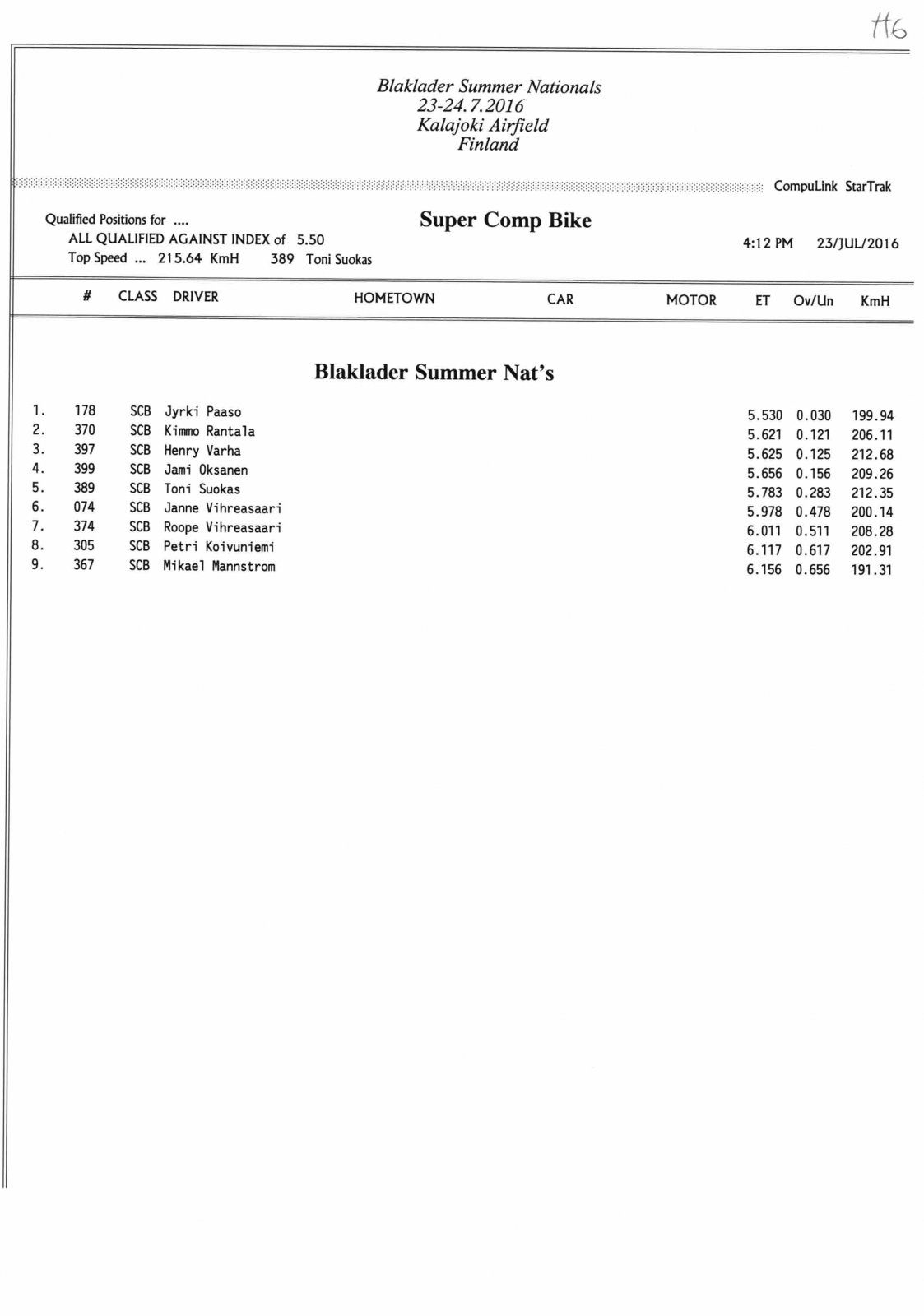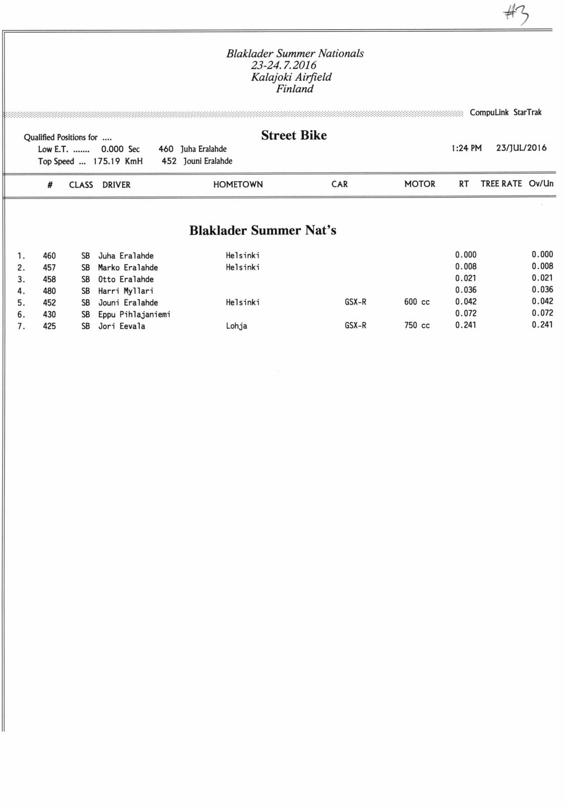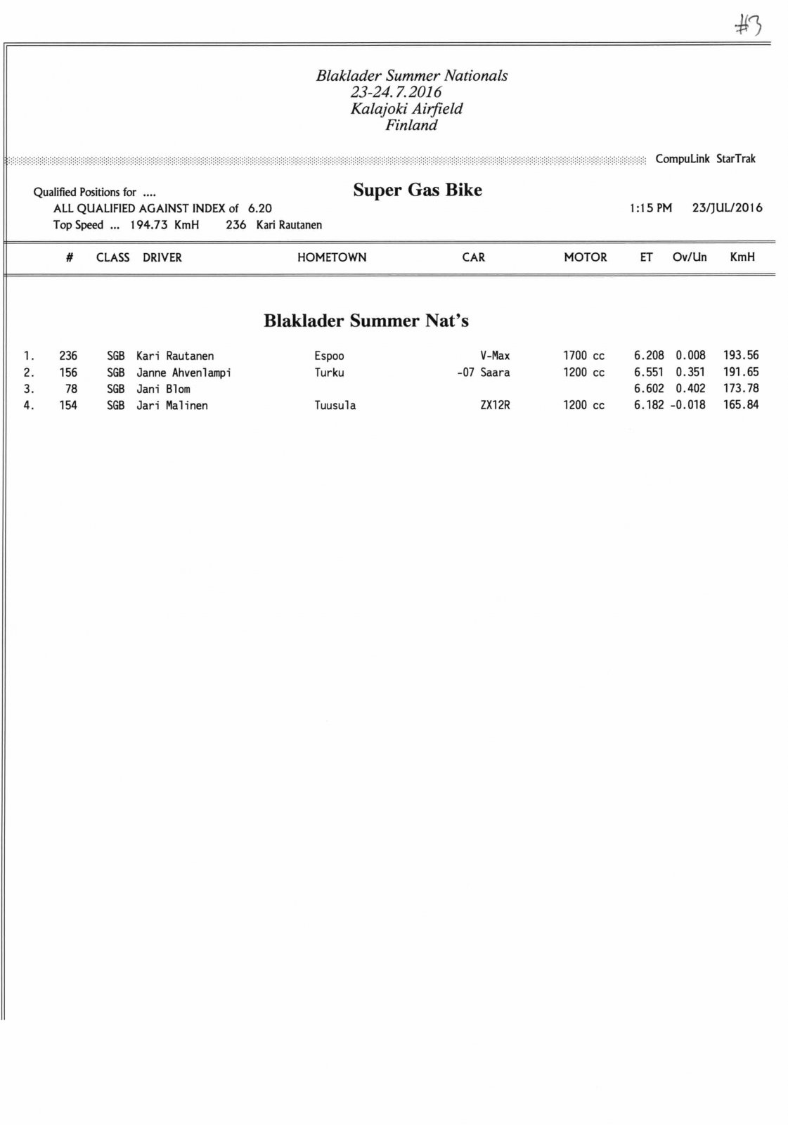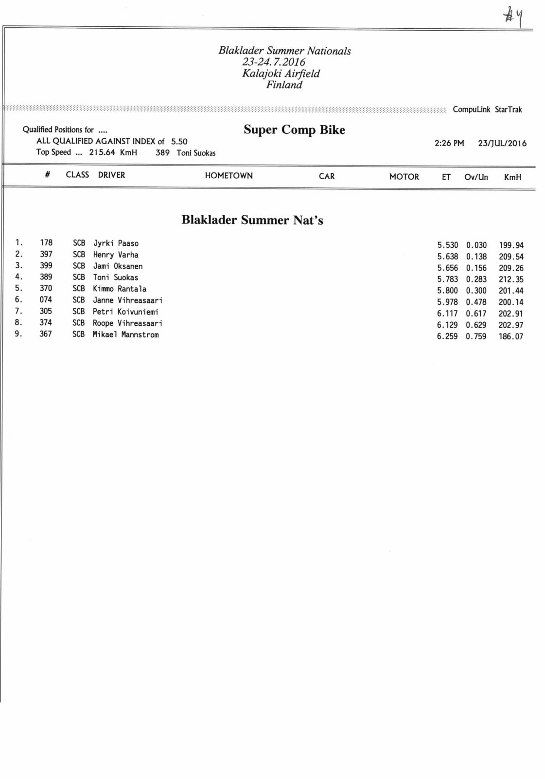 FHRA uutiset 23.-24.7.2016 FHRA kiihdytysajon SM-osakilpailu 4, Blåkläder Summer Nationals, Kalajoki