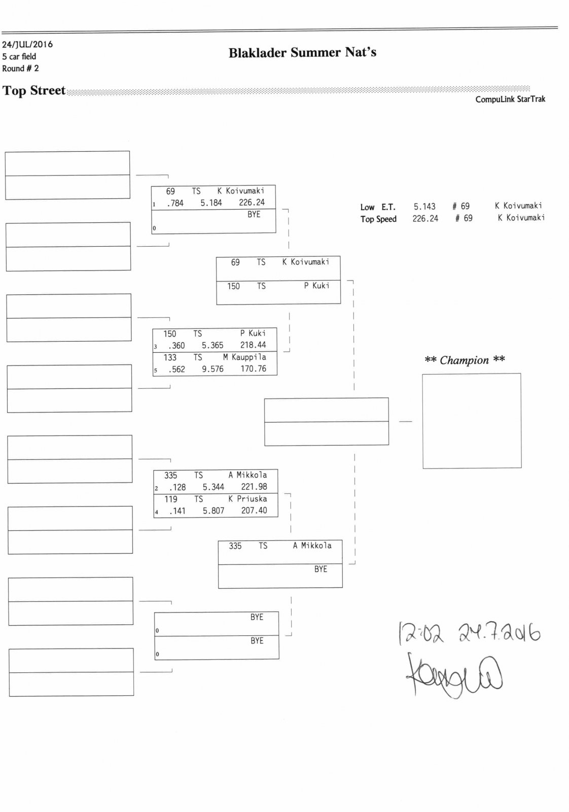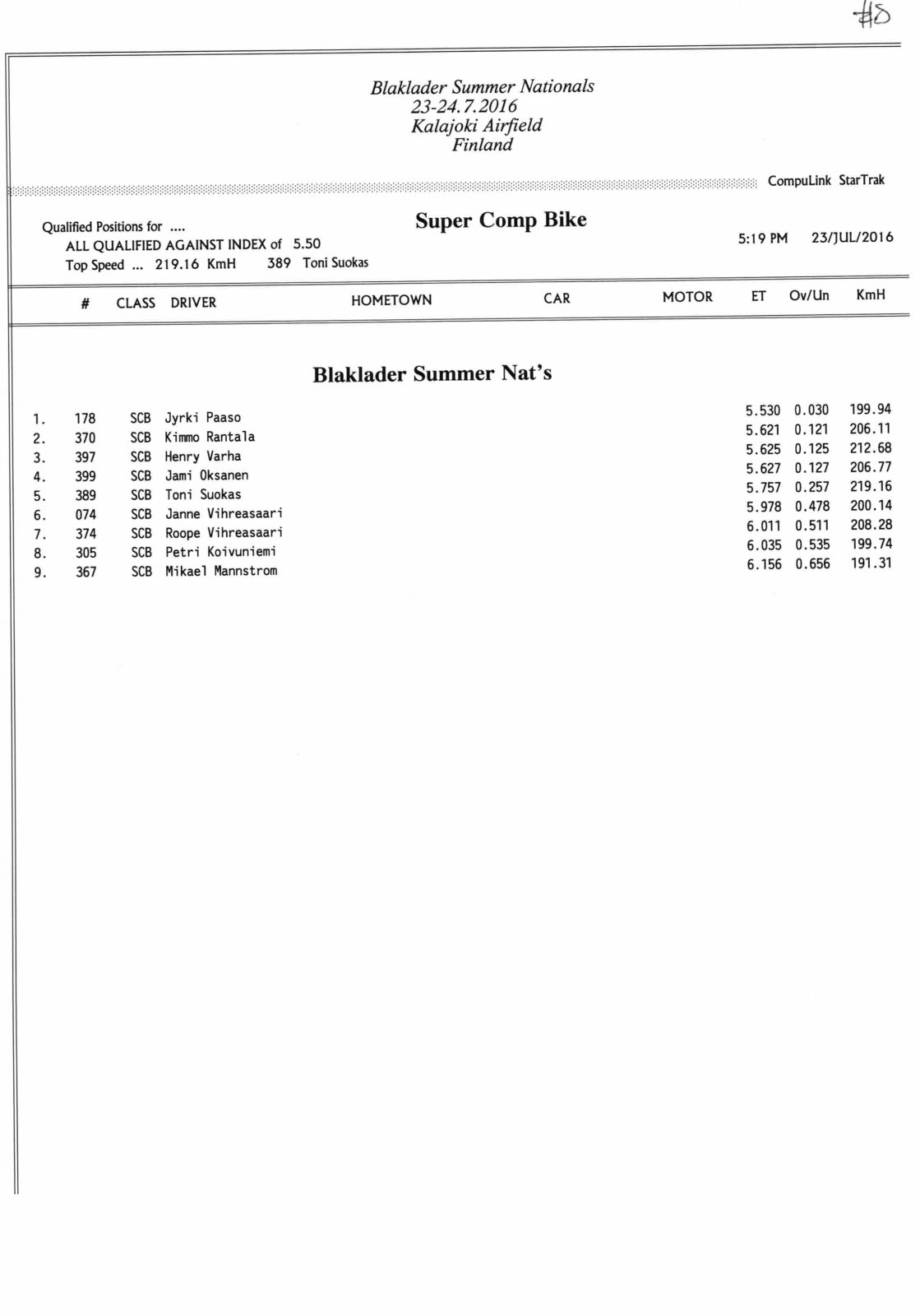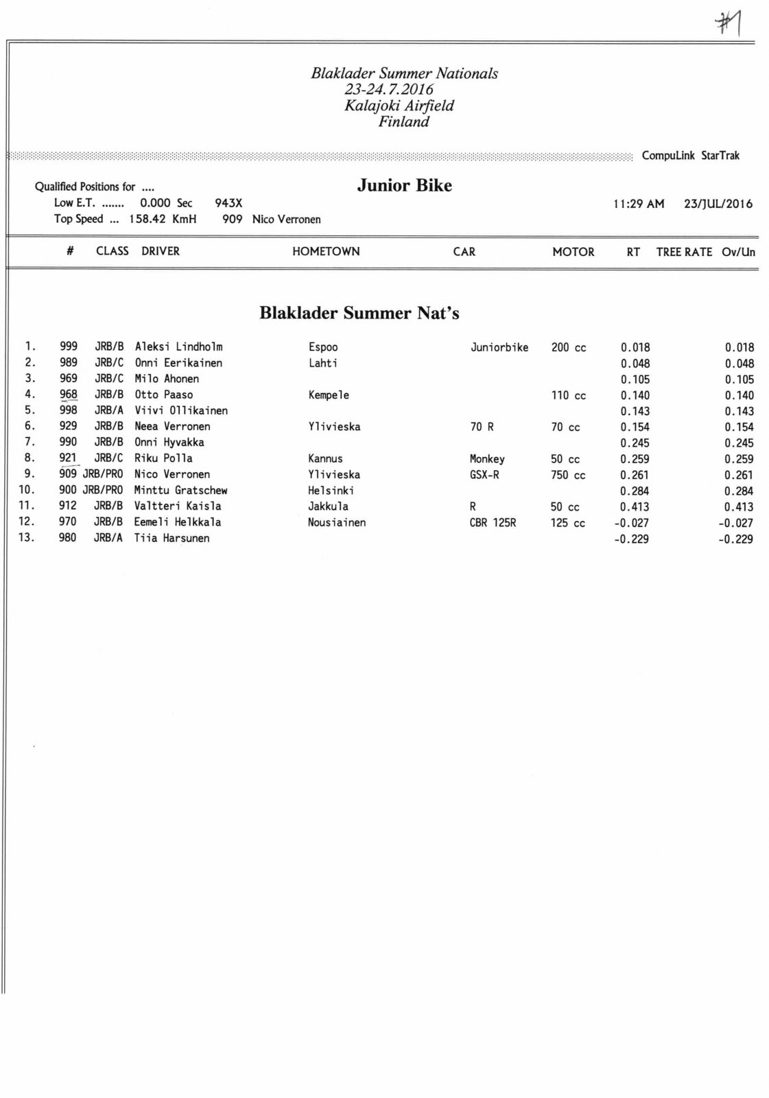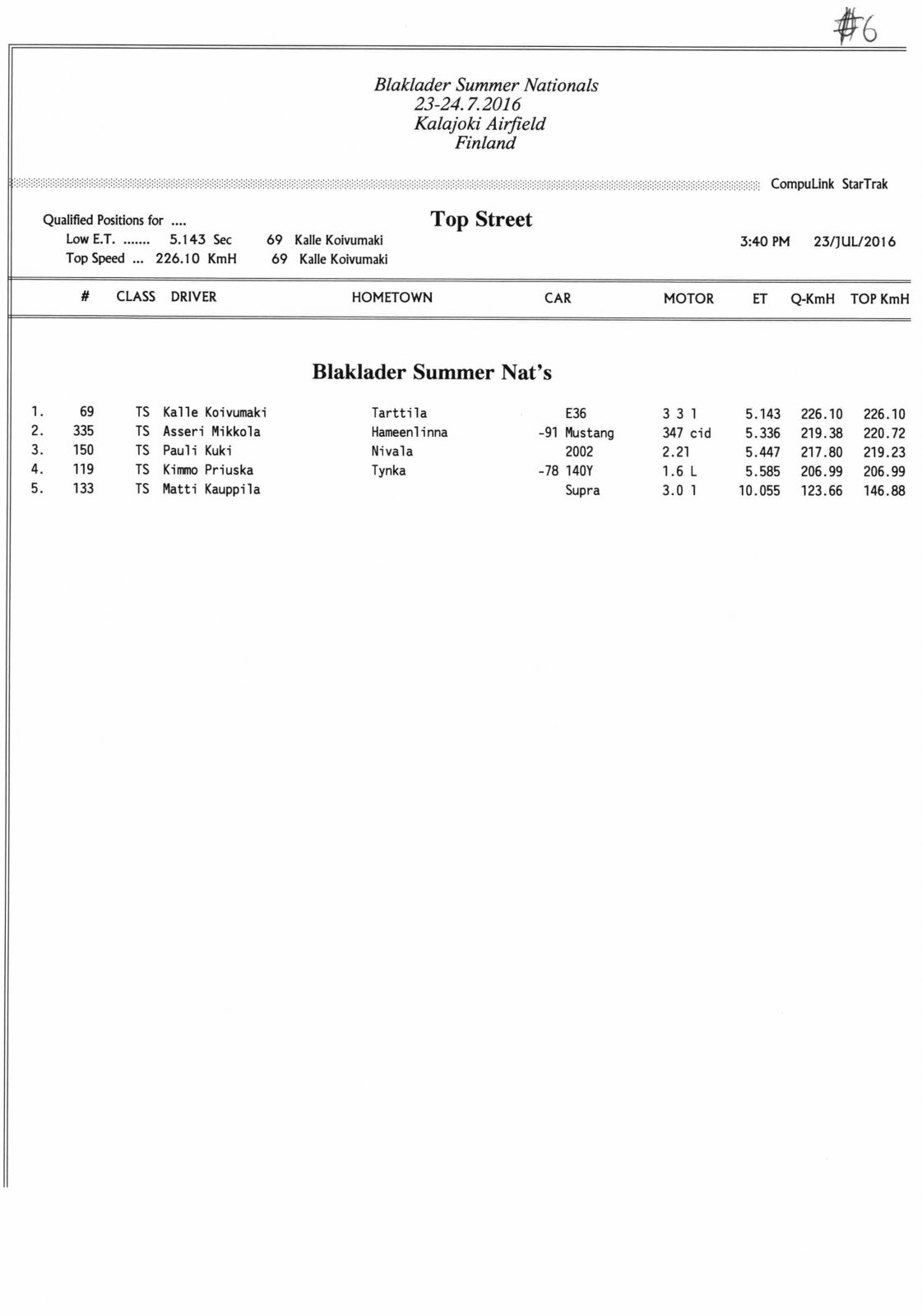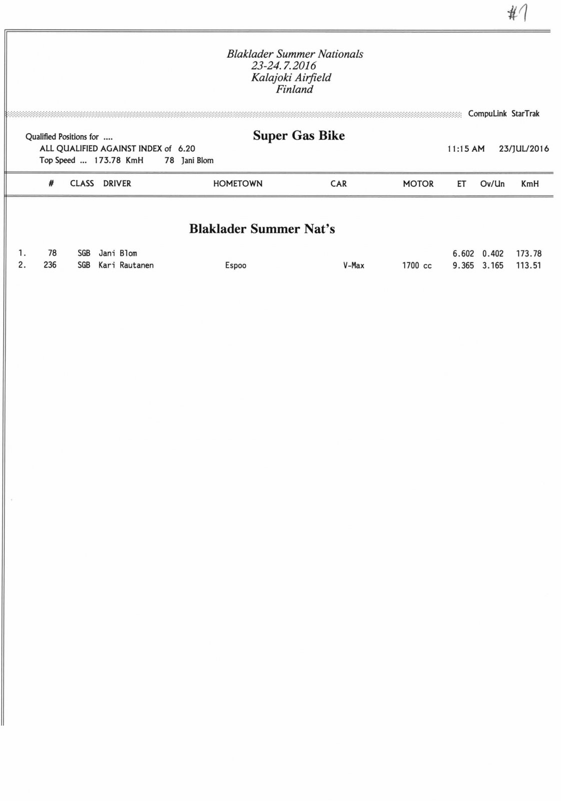 FHRA uutiset 23.-24.7.2016 FHRA kiihdytysajon SM-osakilpailu 4, Blåkläder Summer Nationals, Kalajoki