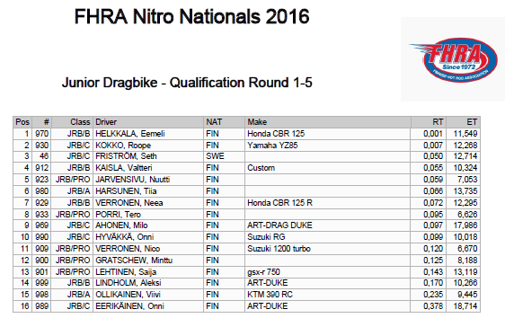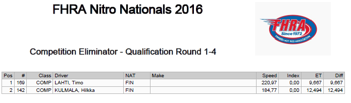 FHRA uutiset 7.-10.7.2016 FHRA EM-osakilpailu Nitro Nationals