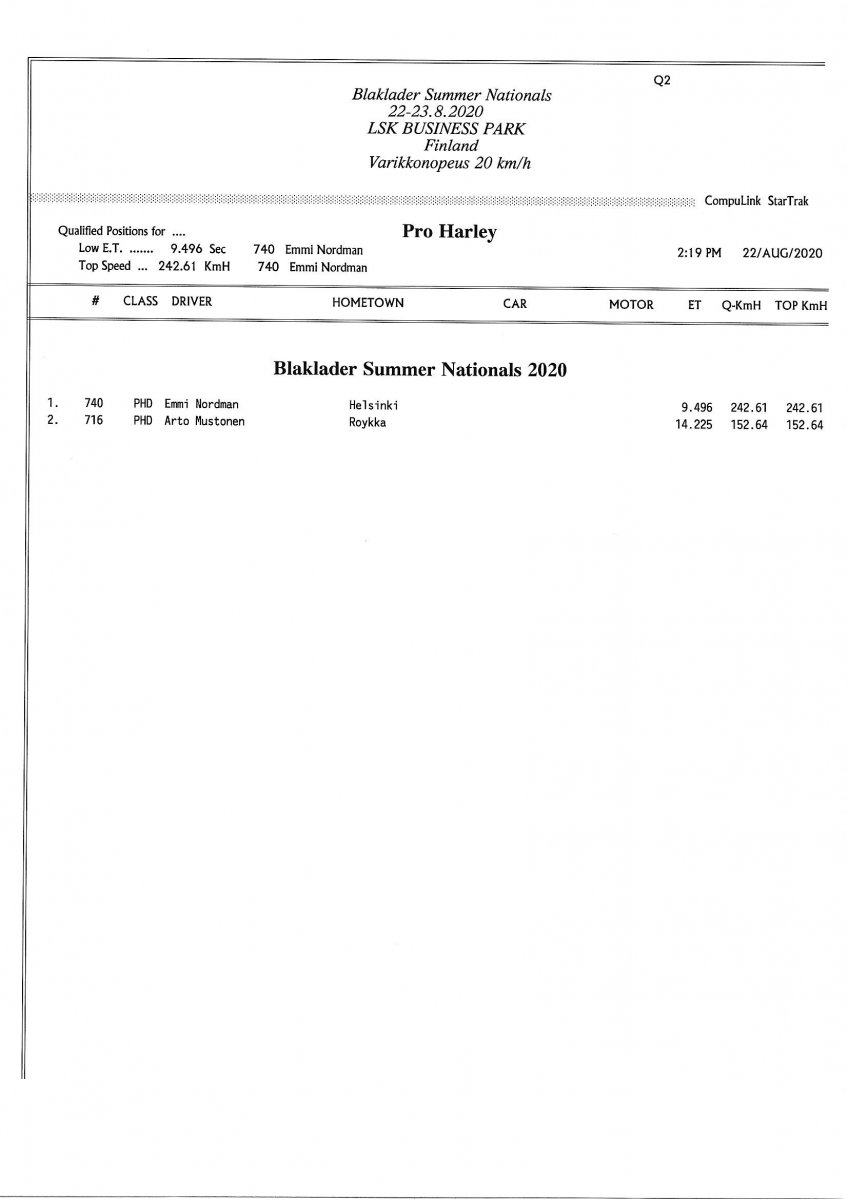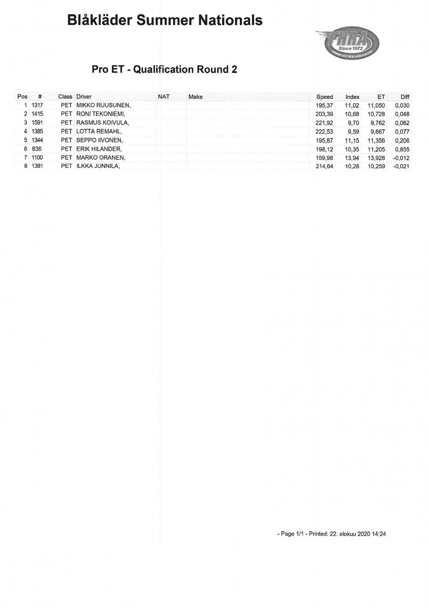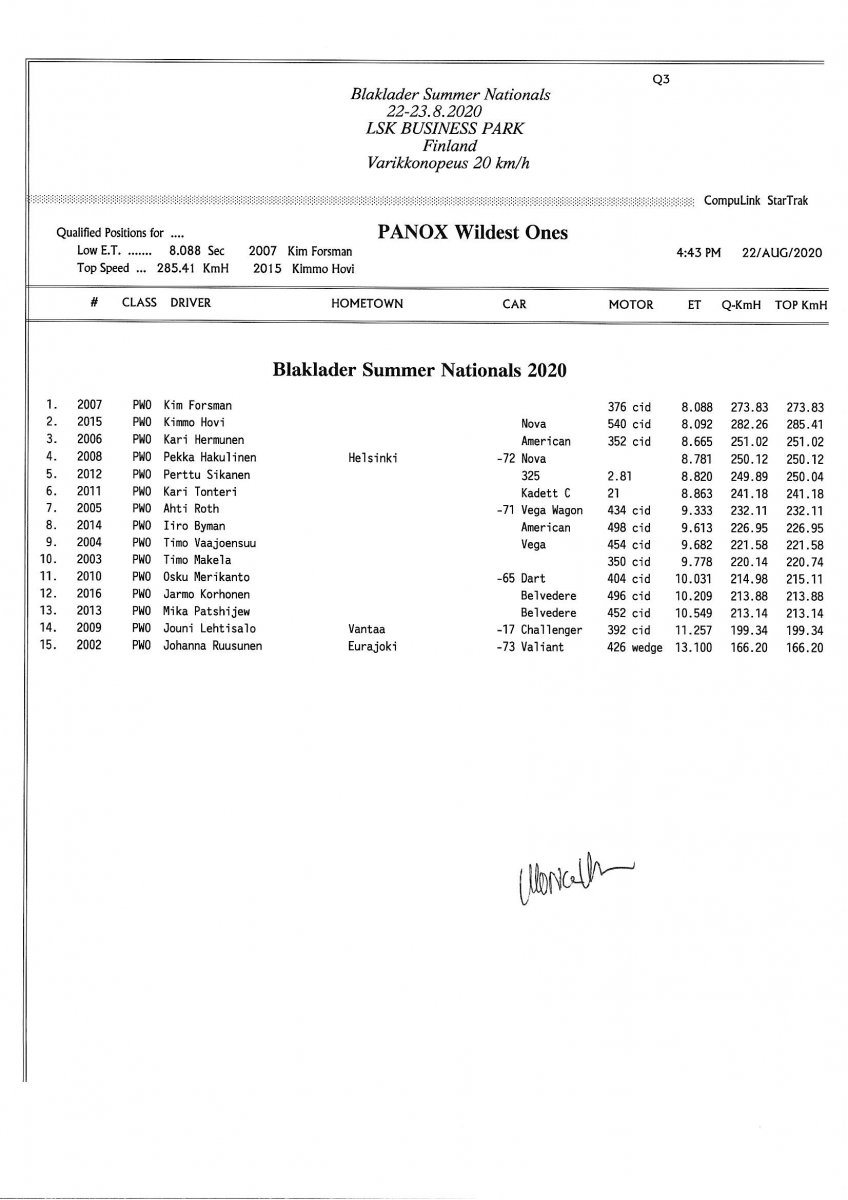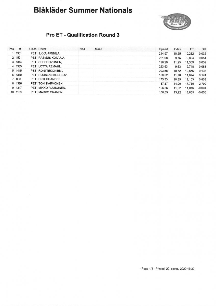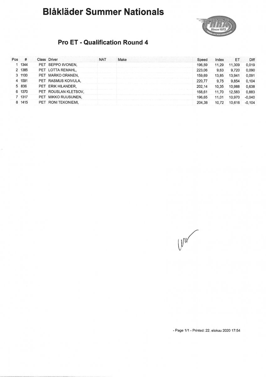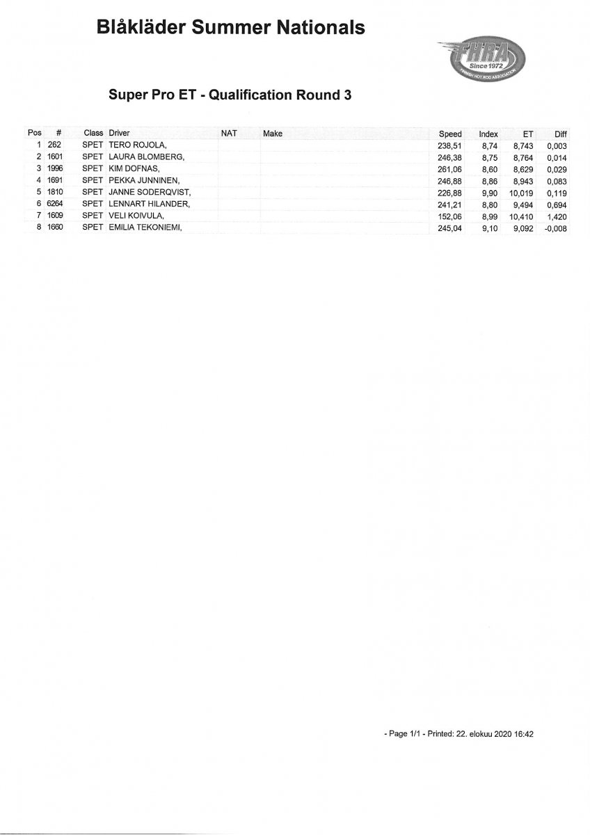 FHRA uutiset Blåkläder Summer Nationals 2020