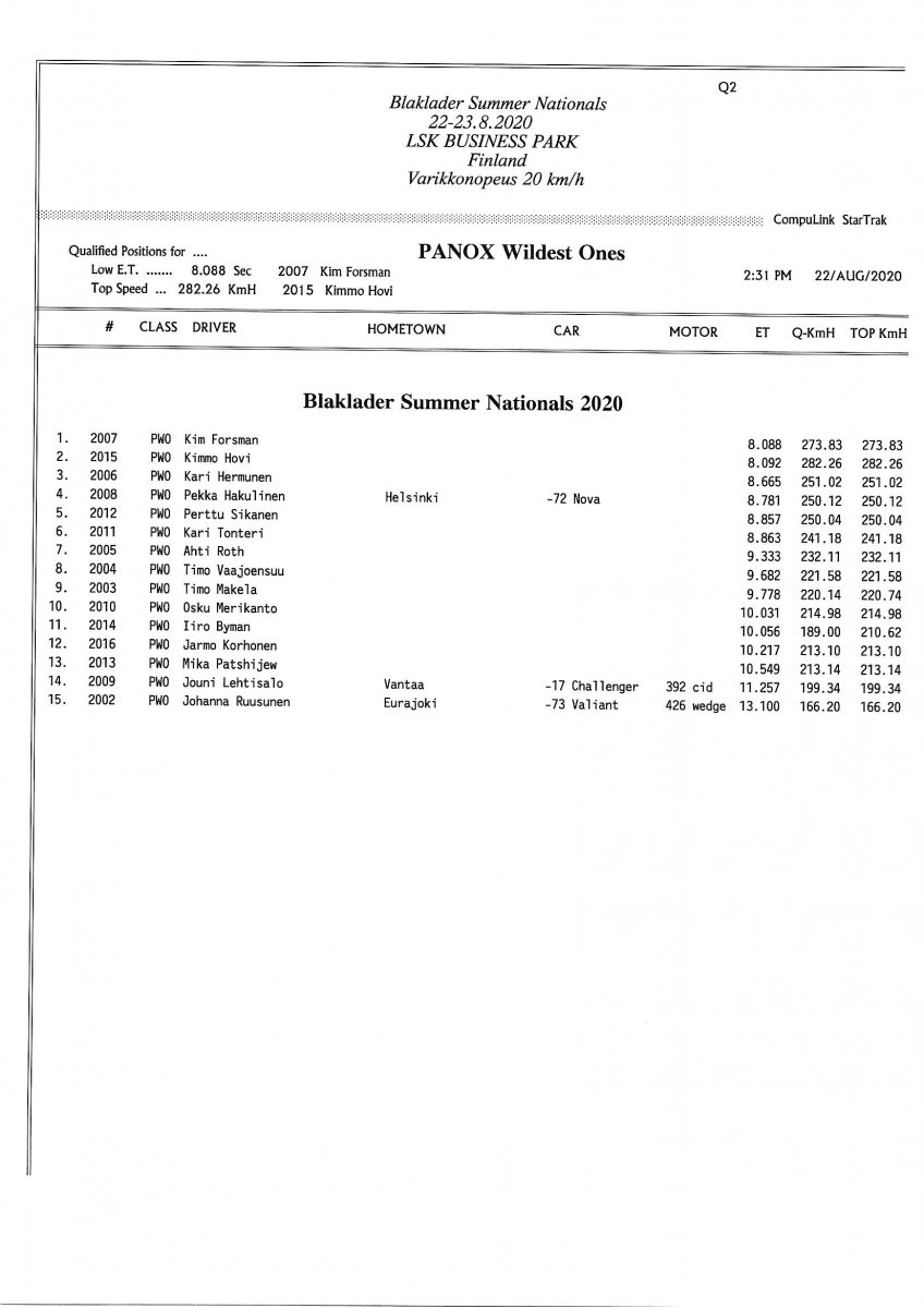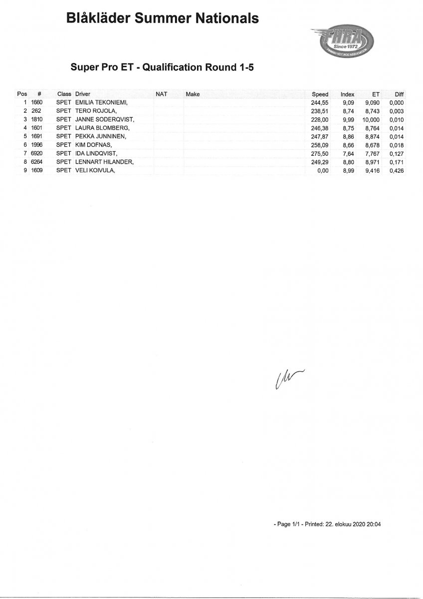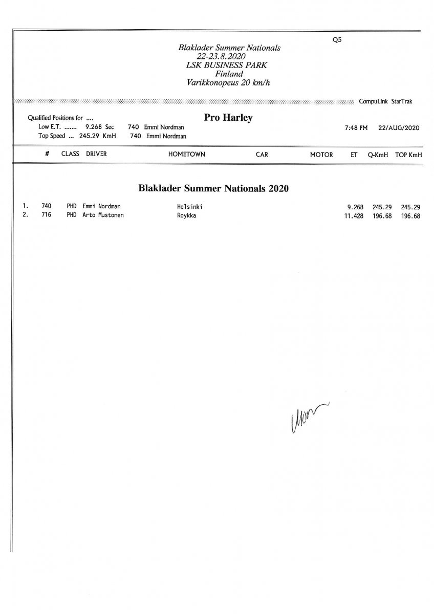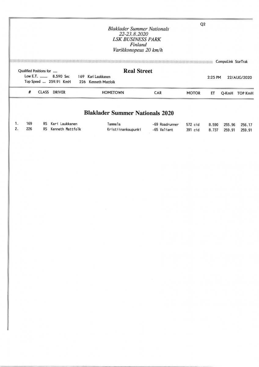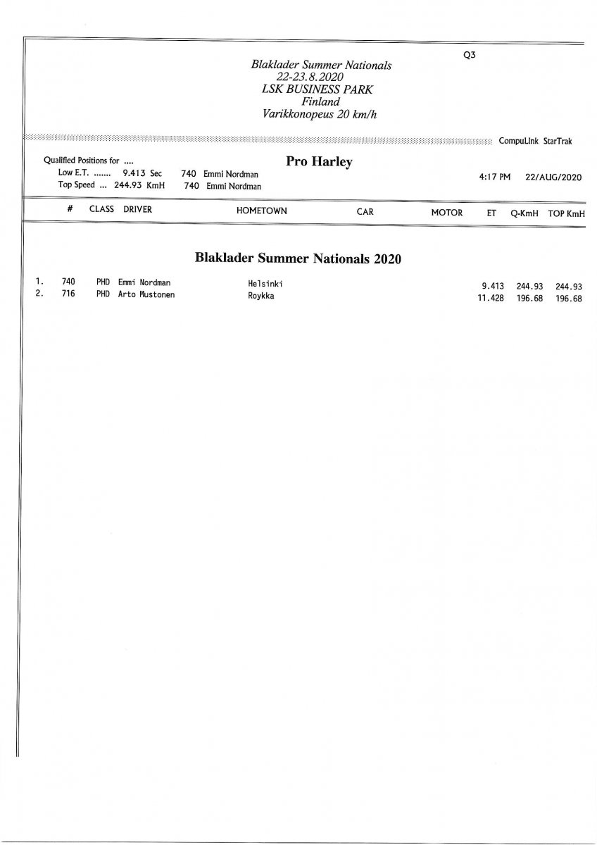 FHRA uutiset Blåkläder Summer Nationals 2020