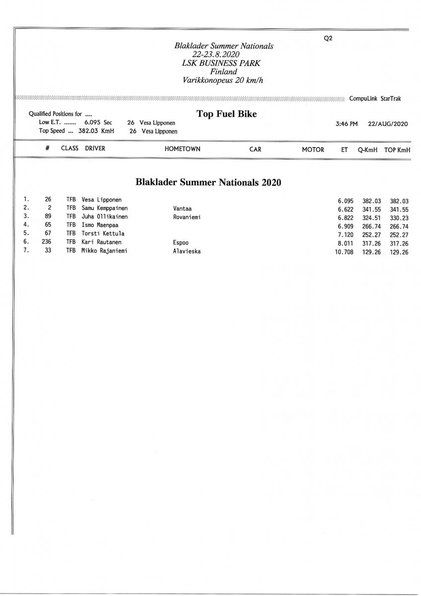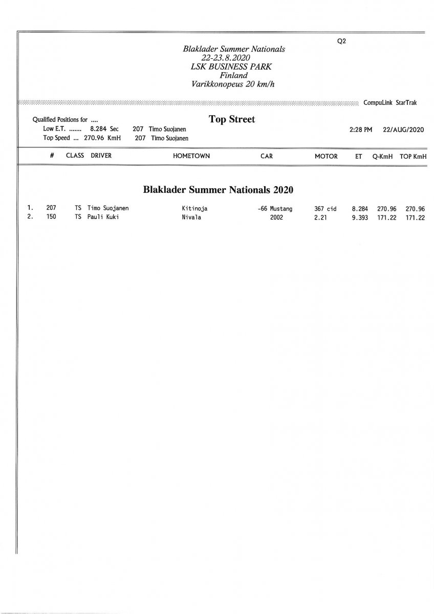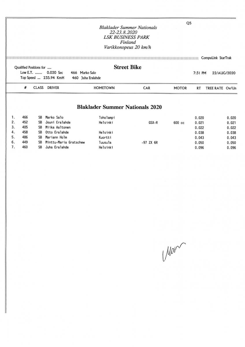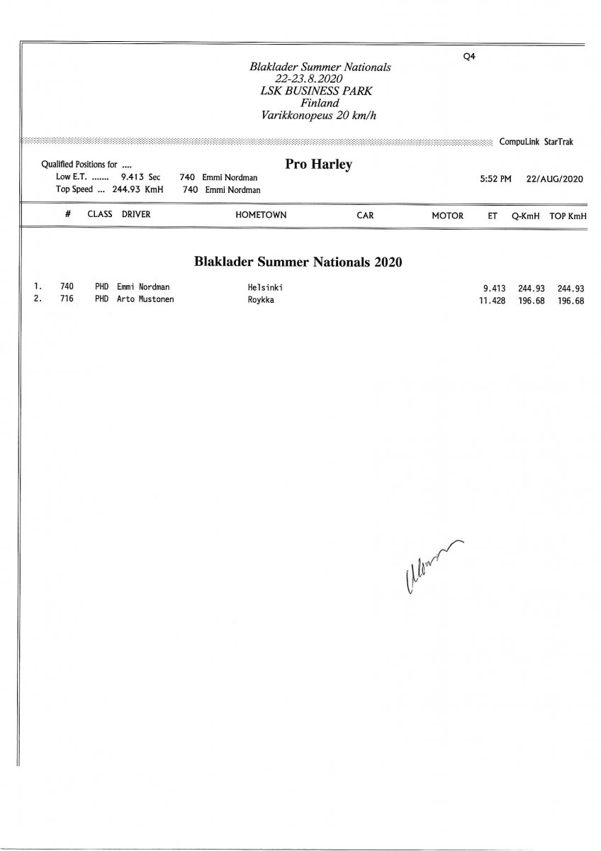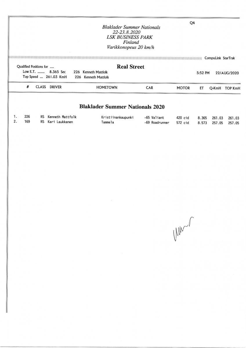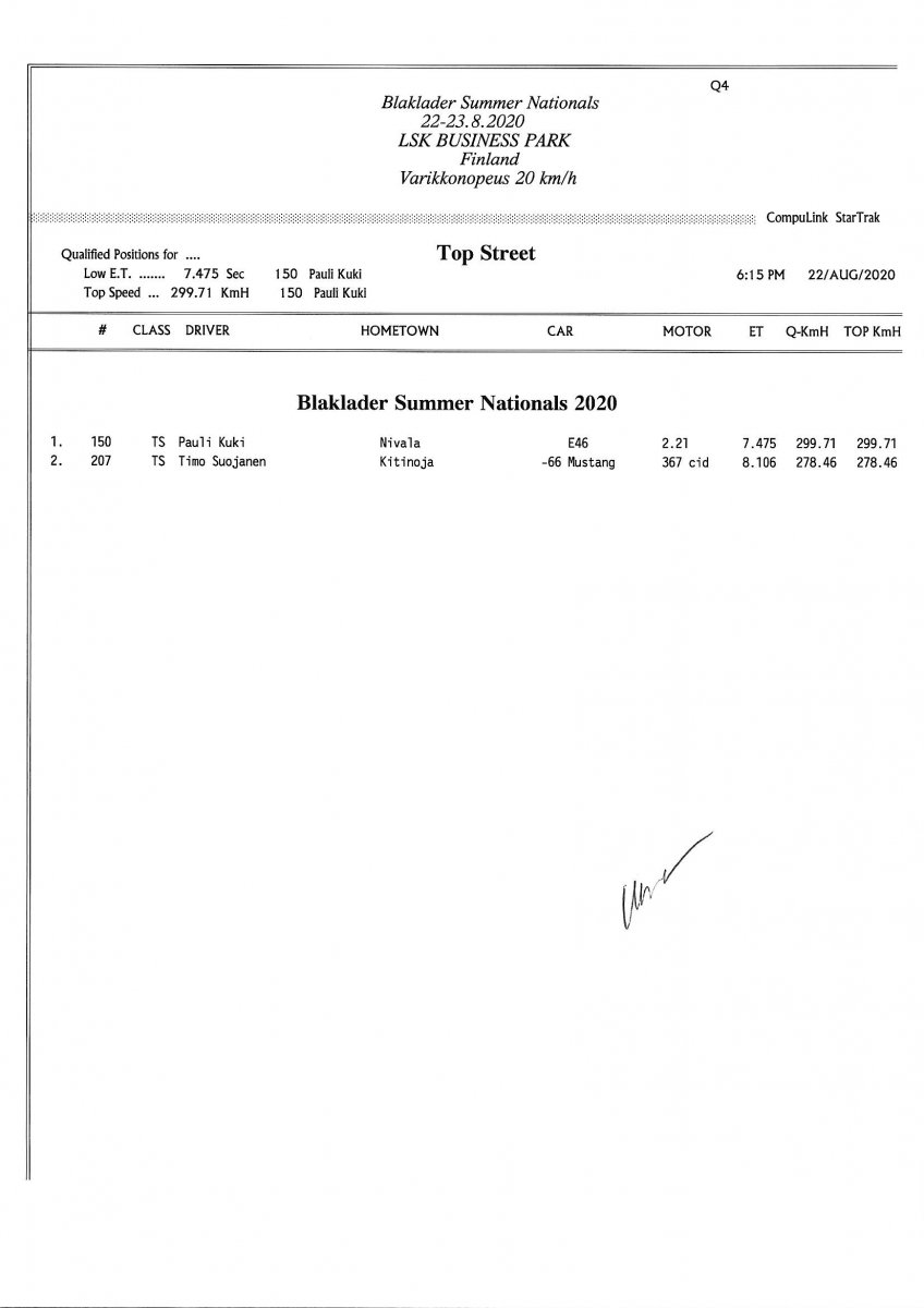 FHRA uutiset Blåkläder Summer Nationals 2020