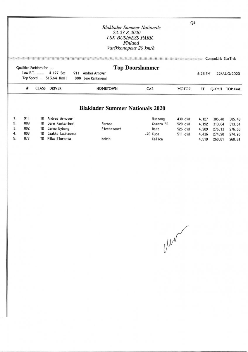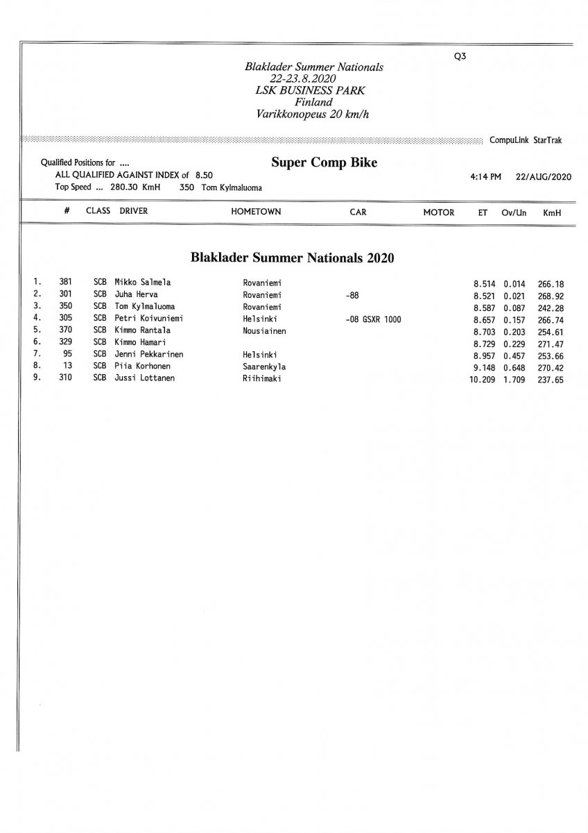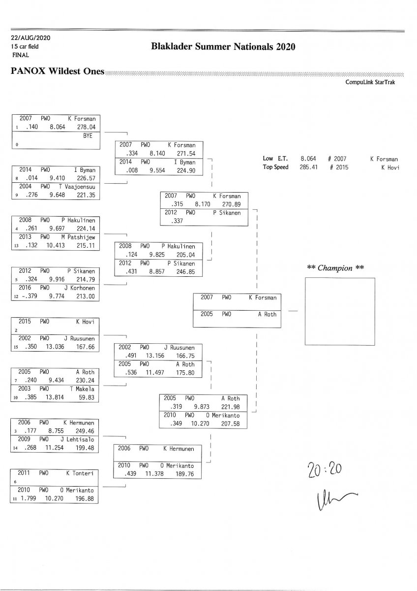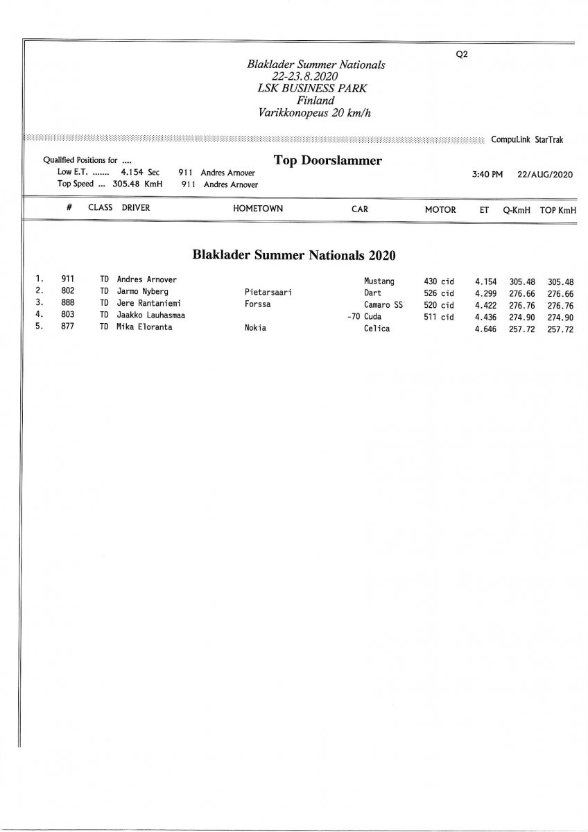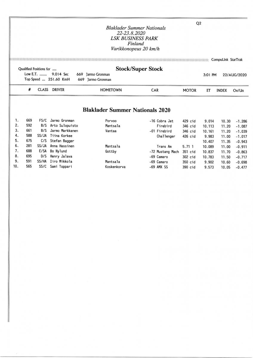 FHRA uutiset Blåkläder Summer Nationals 2020