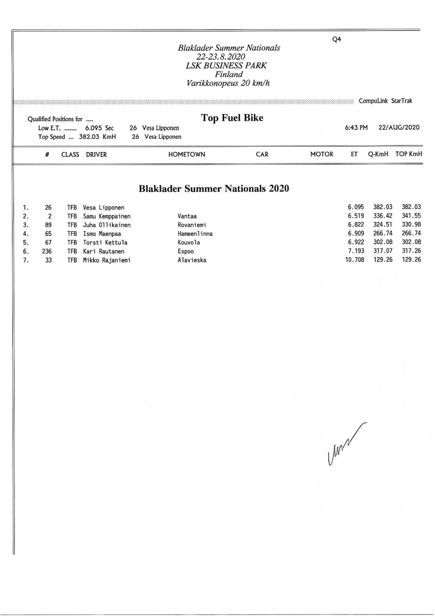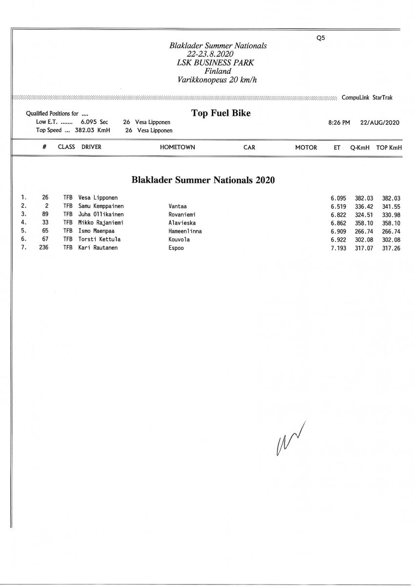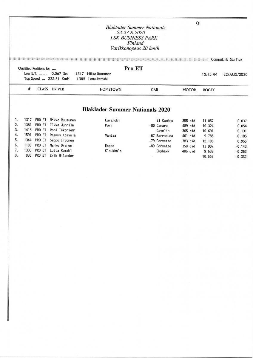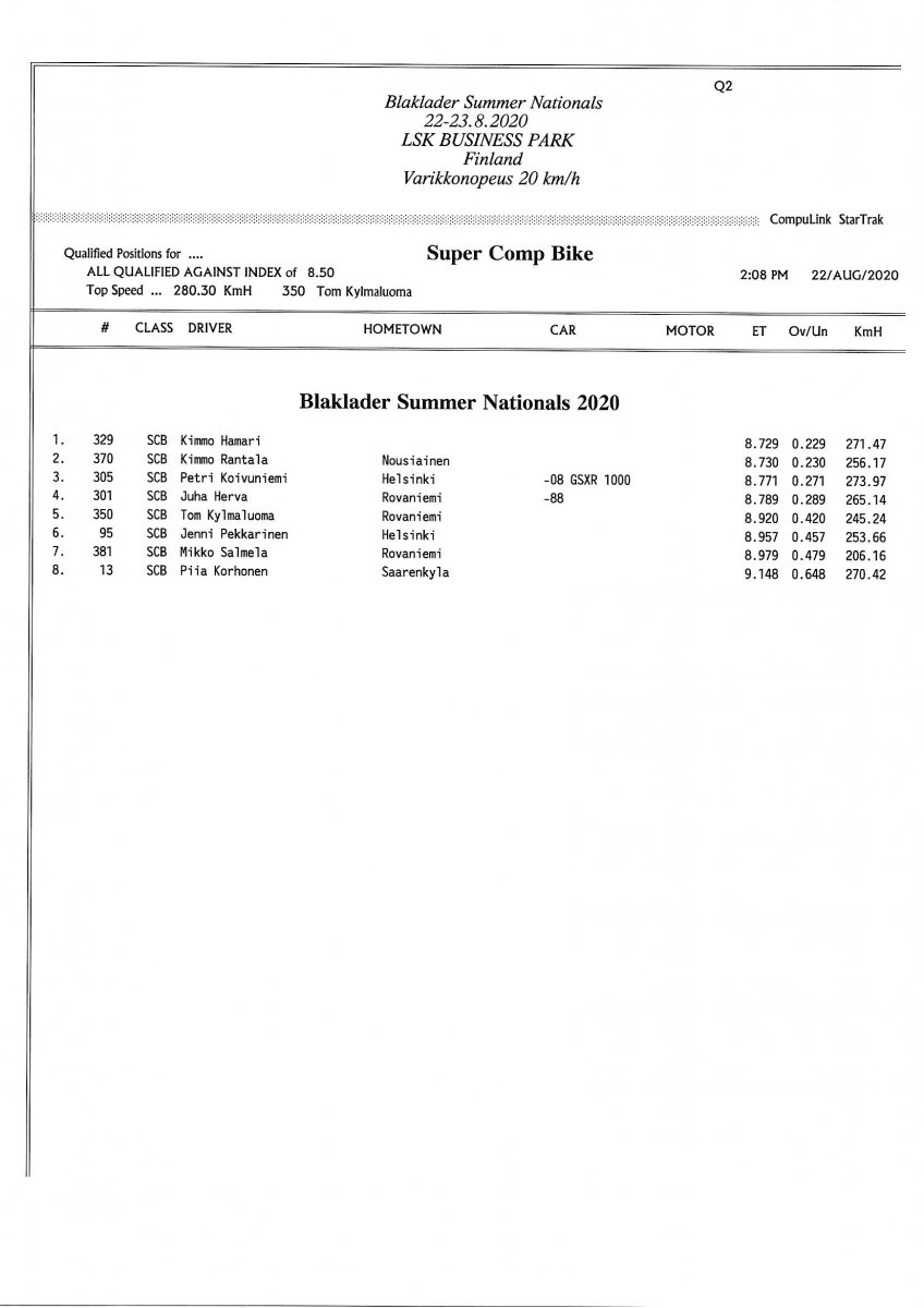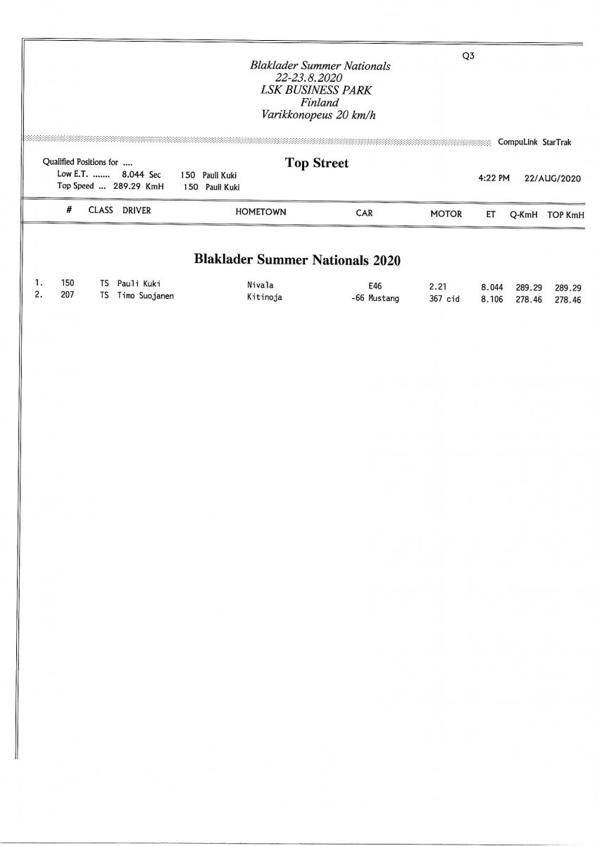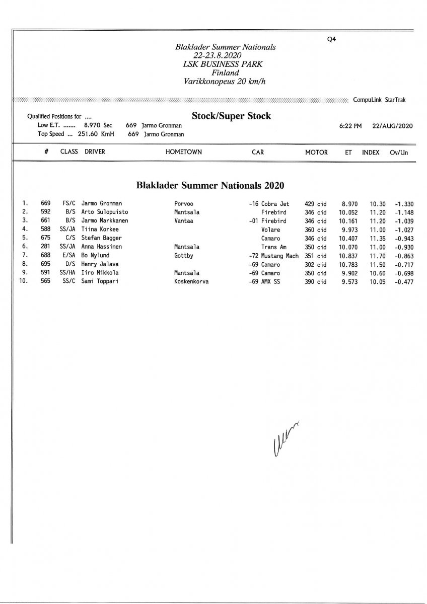 FHRA uutiset Blåkläder Summer Nationals 2020