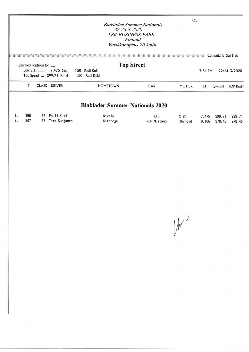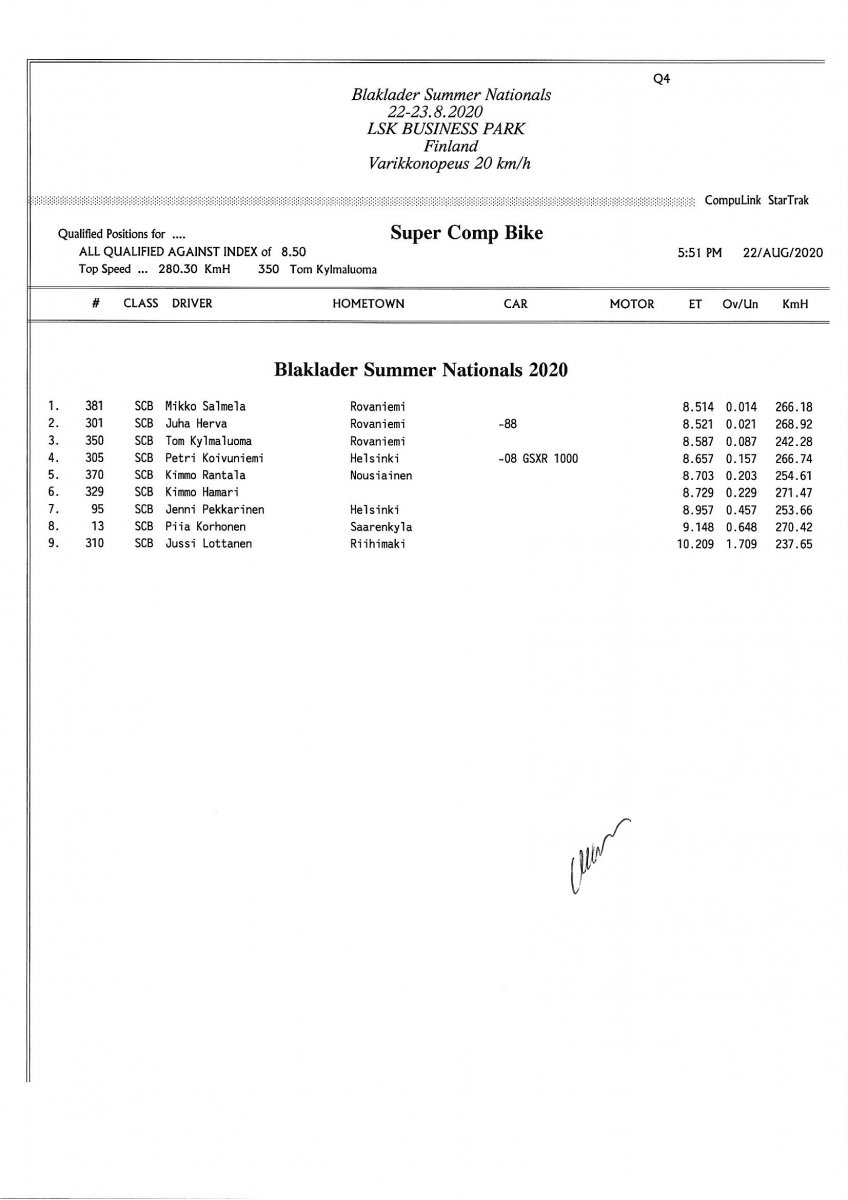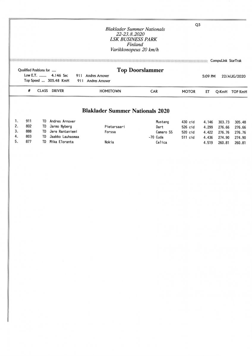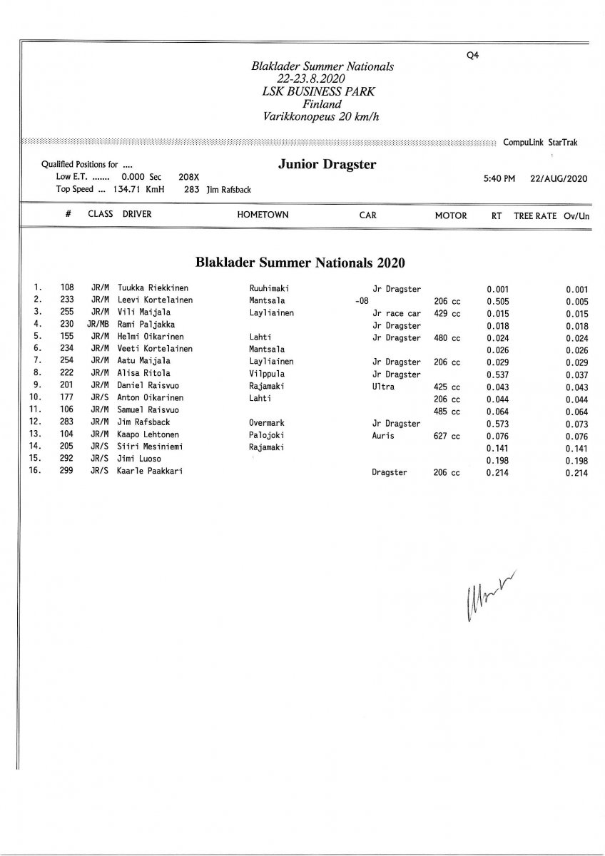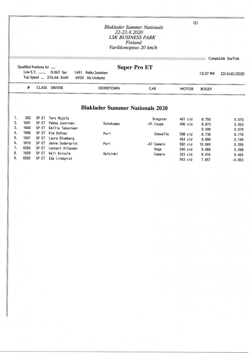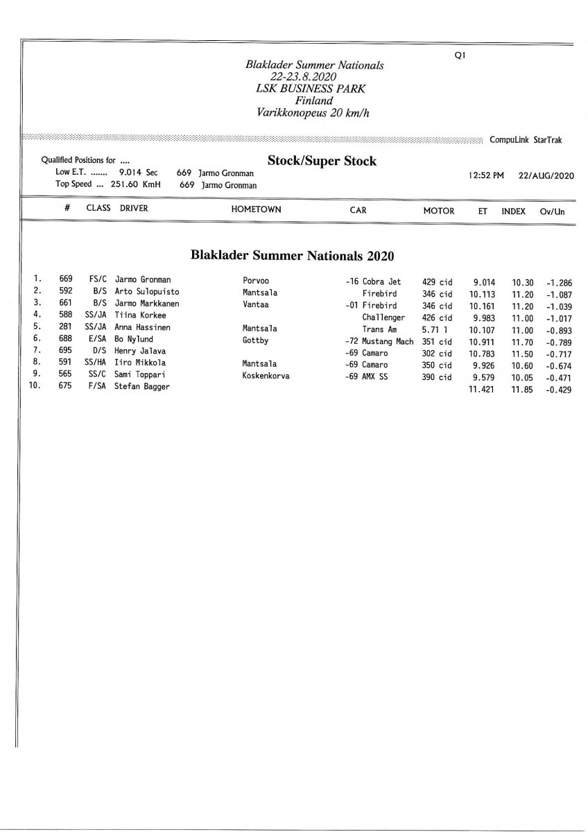 FHRA uutiset Blåkläder Summer Nationals 2020