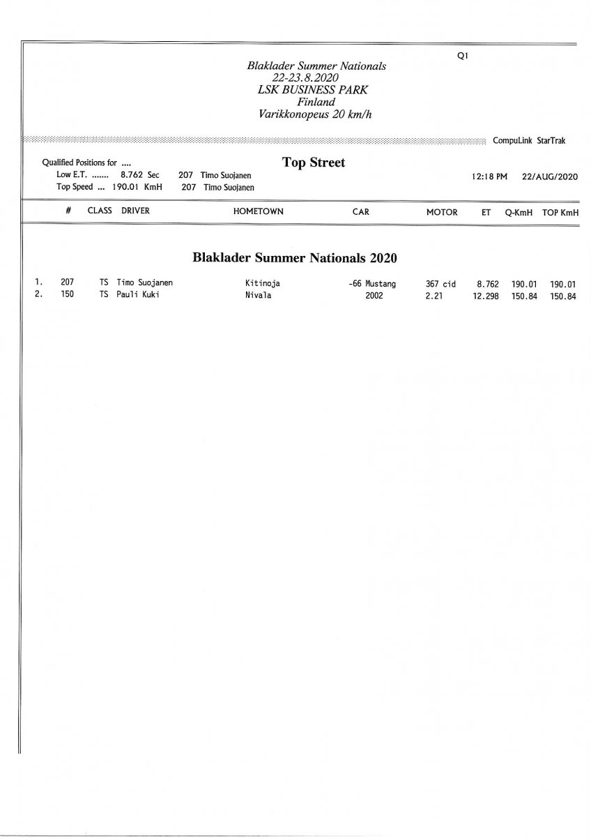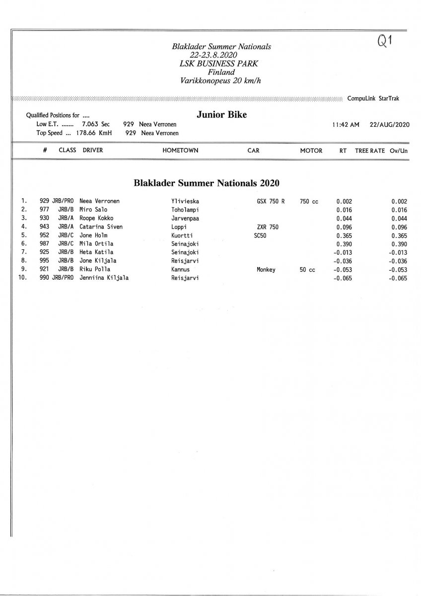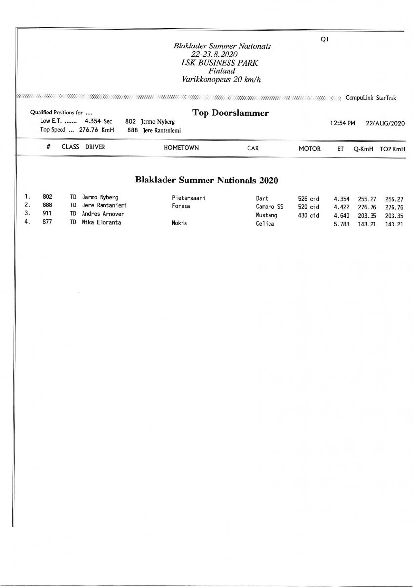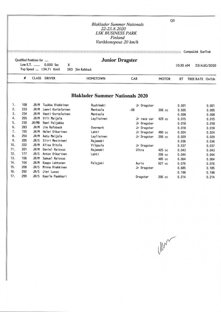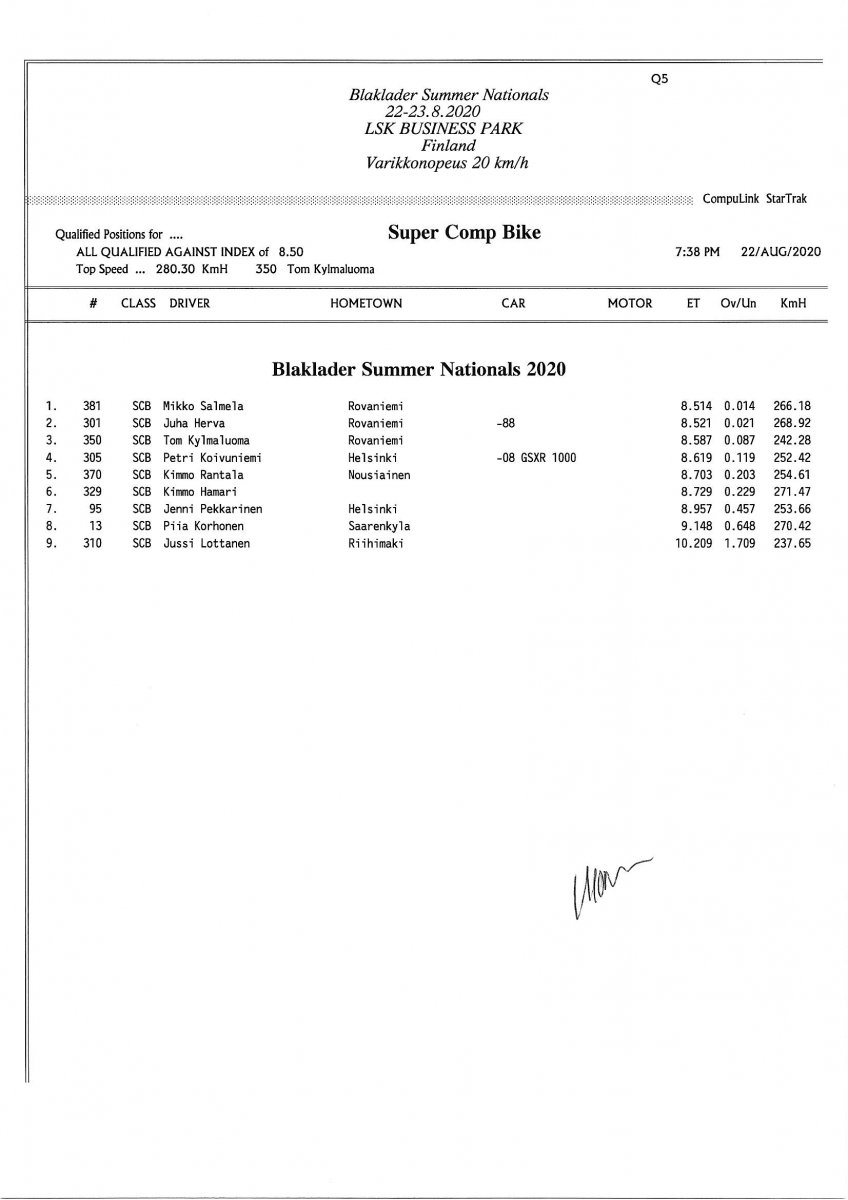 FHRA uutiset Blåkläder Summer Nationals 2020