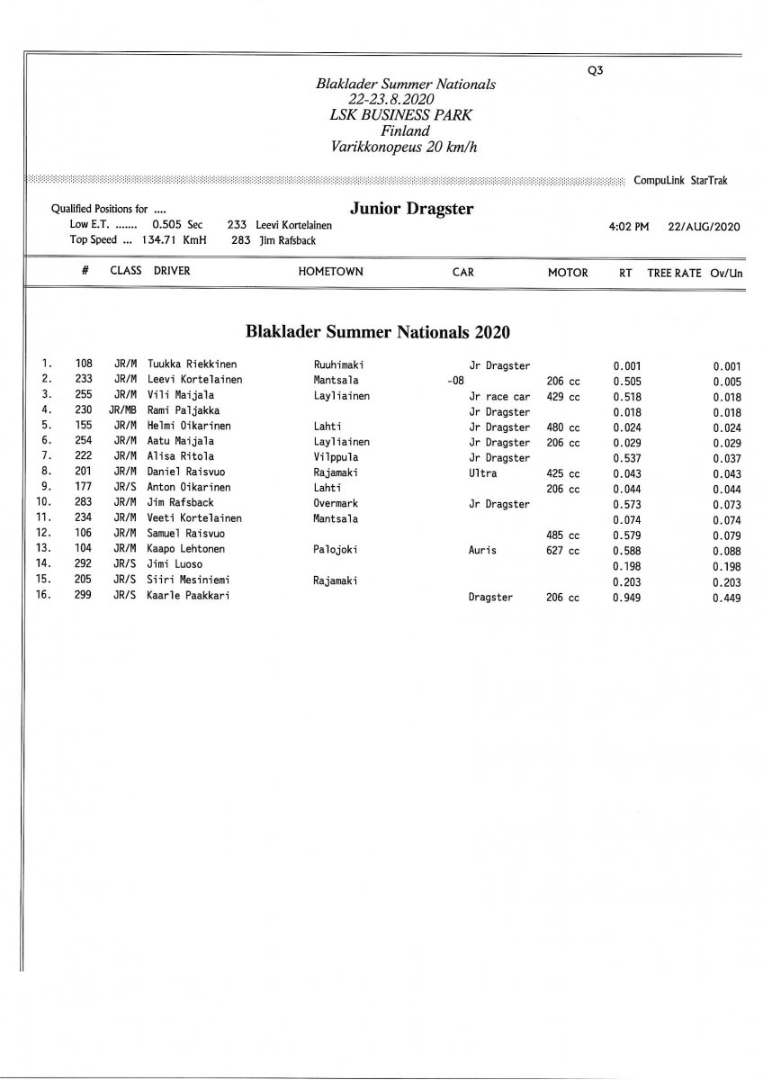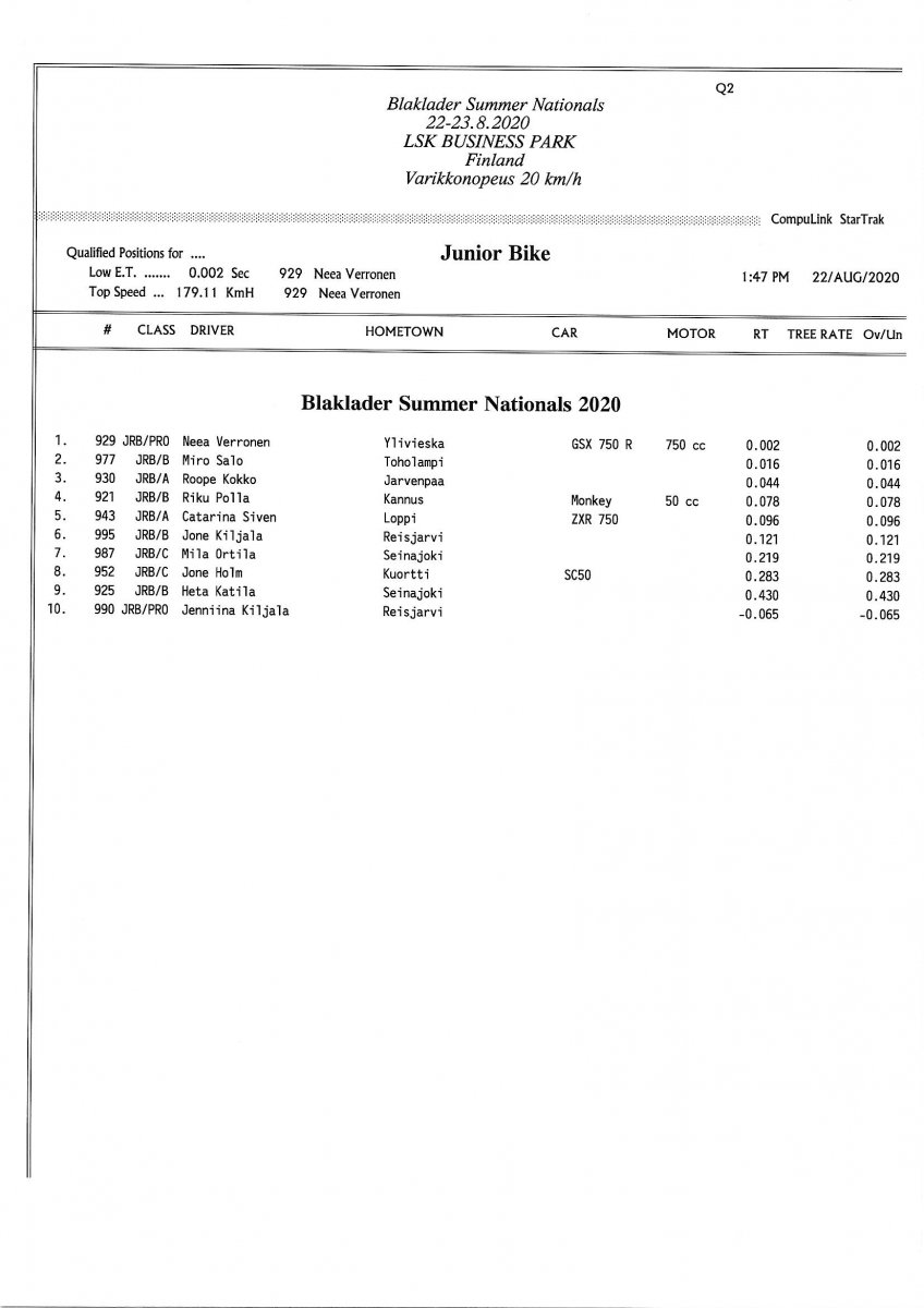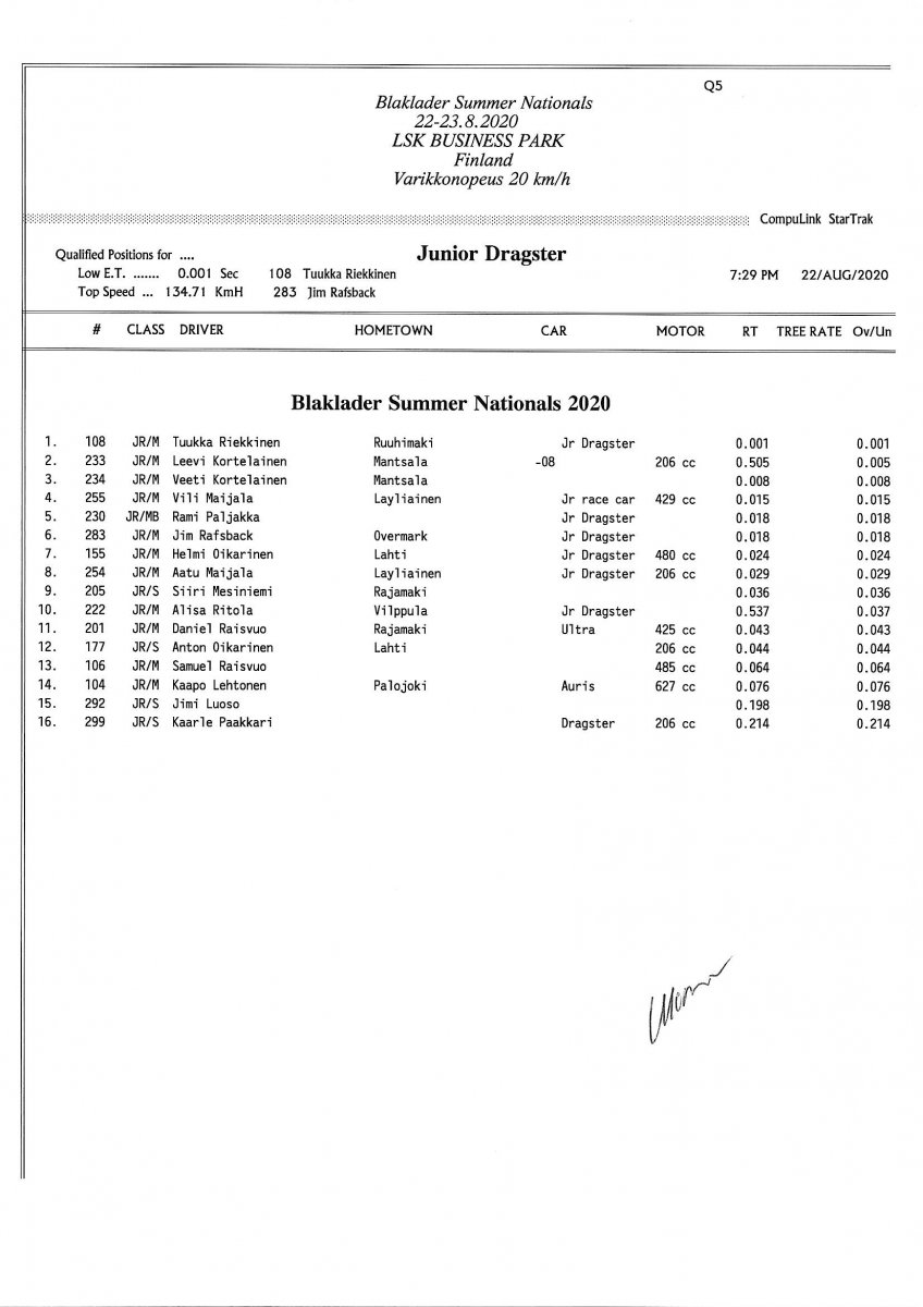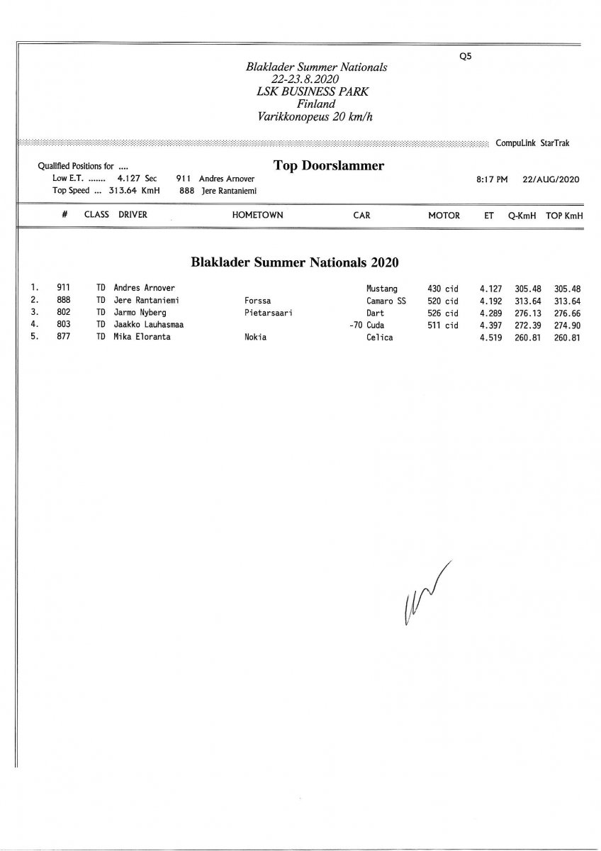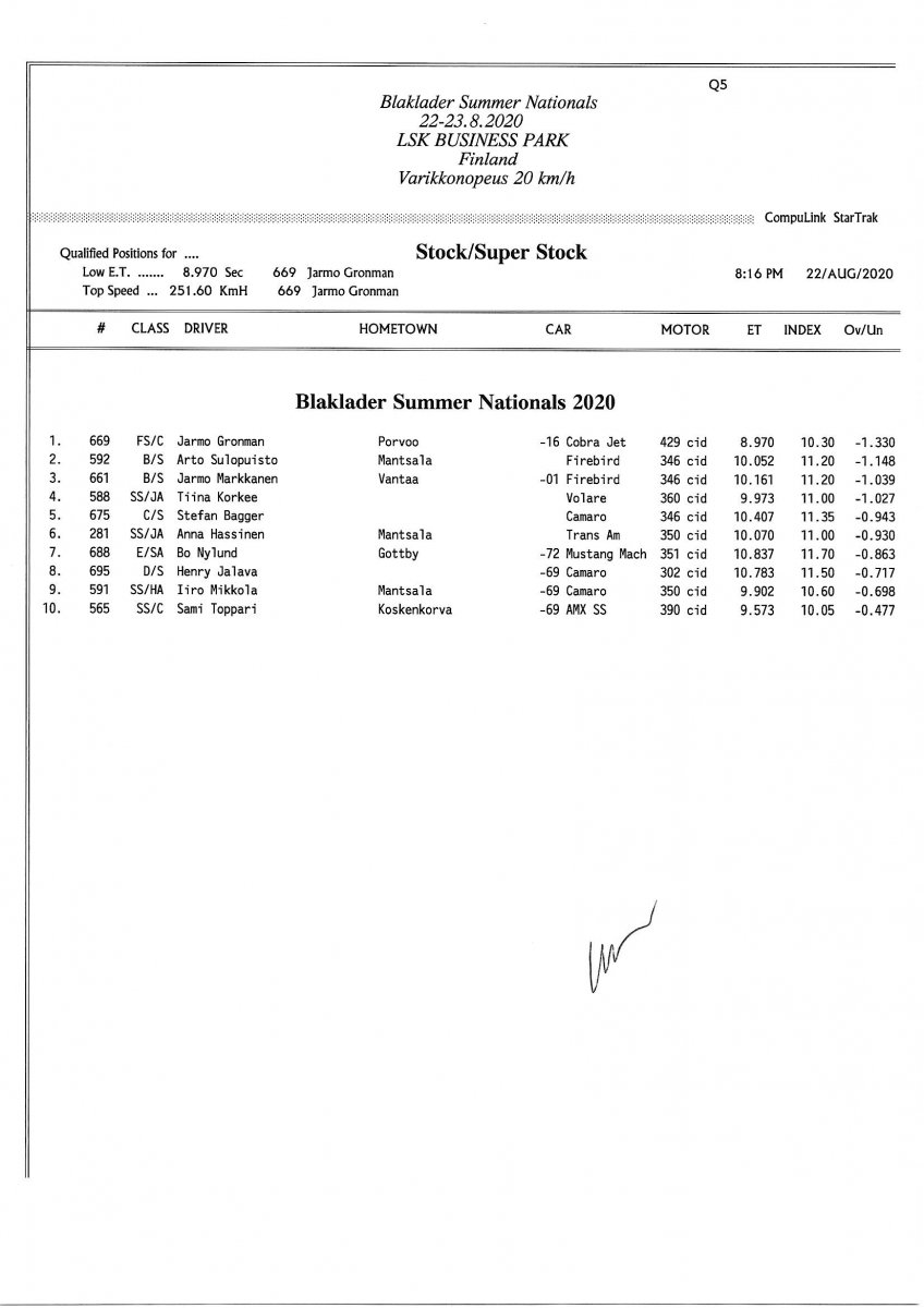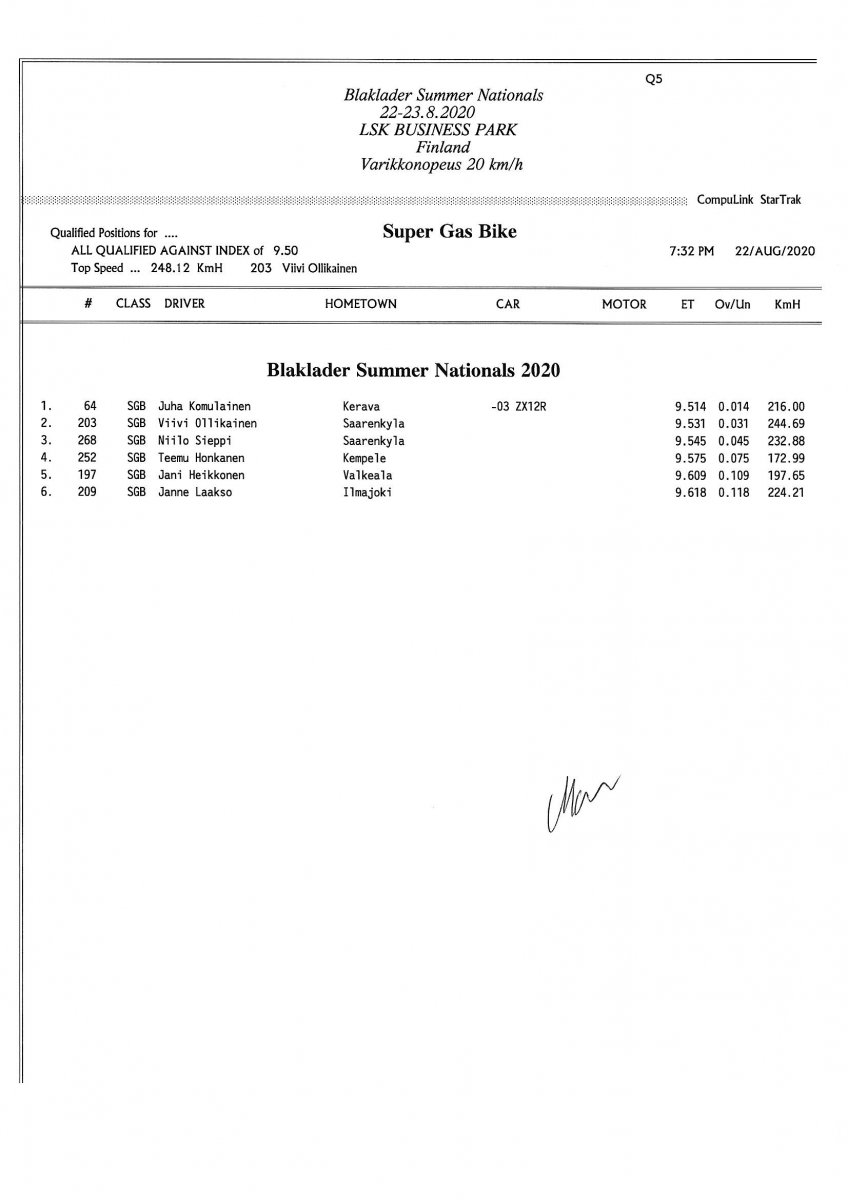 FHRA uutiset Blåkläder Summer Nationals 2020