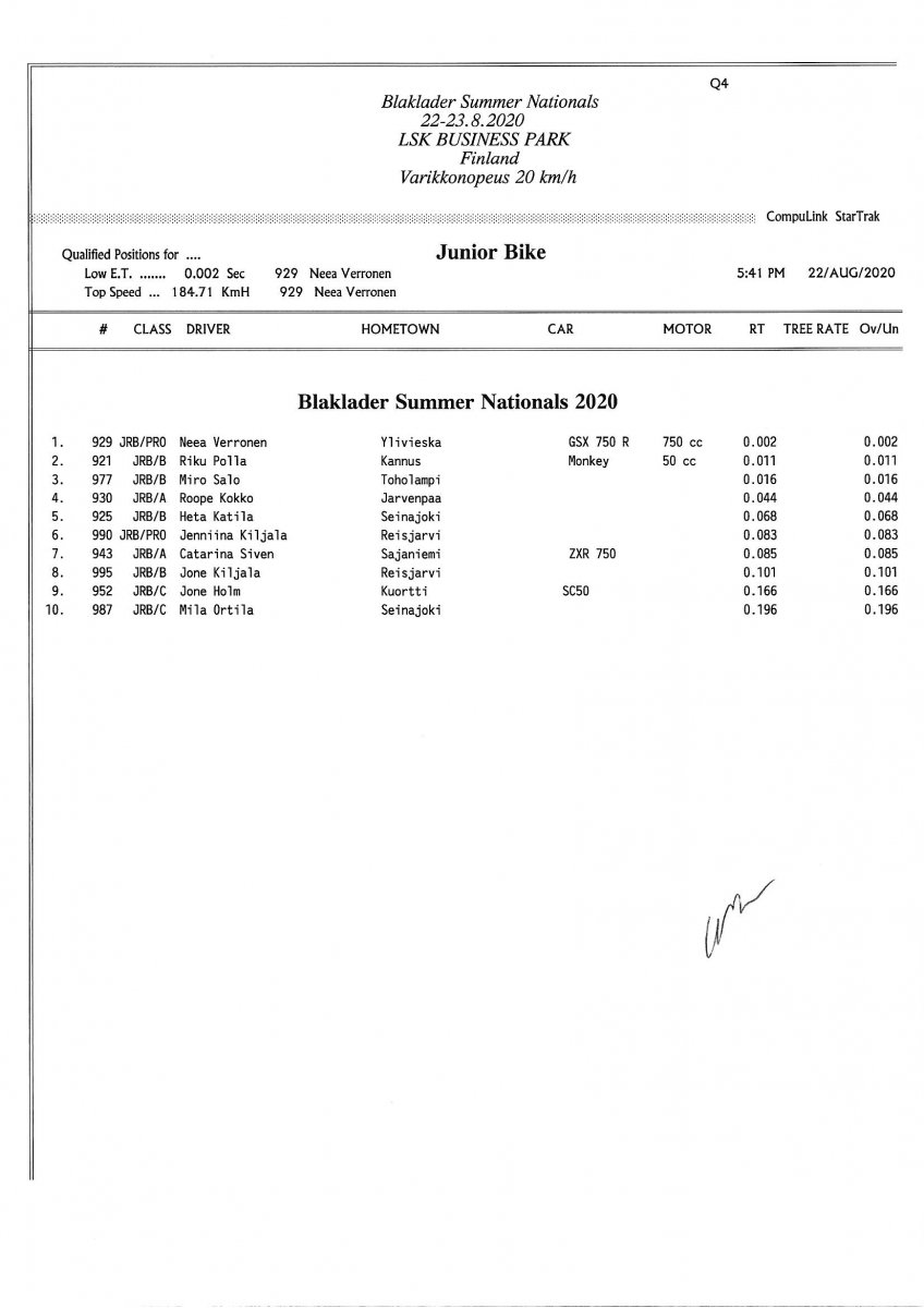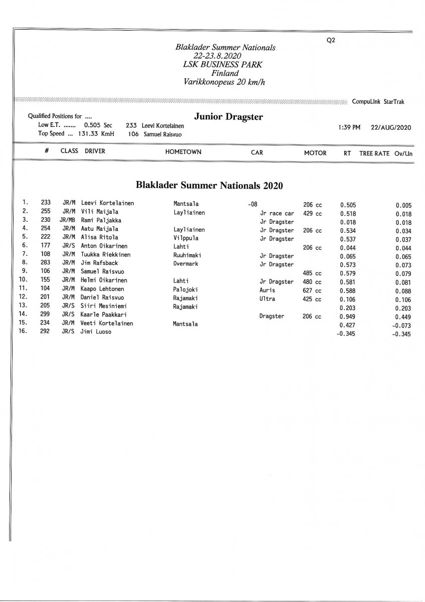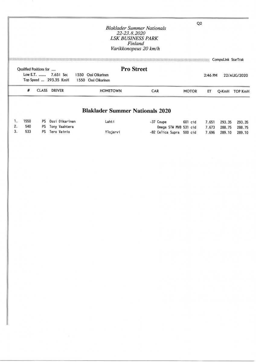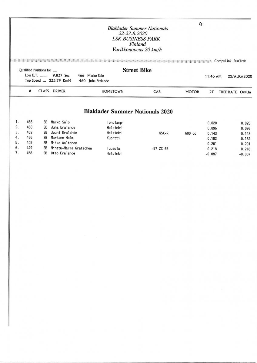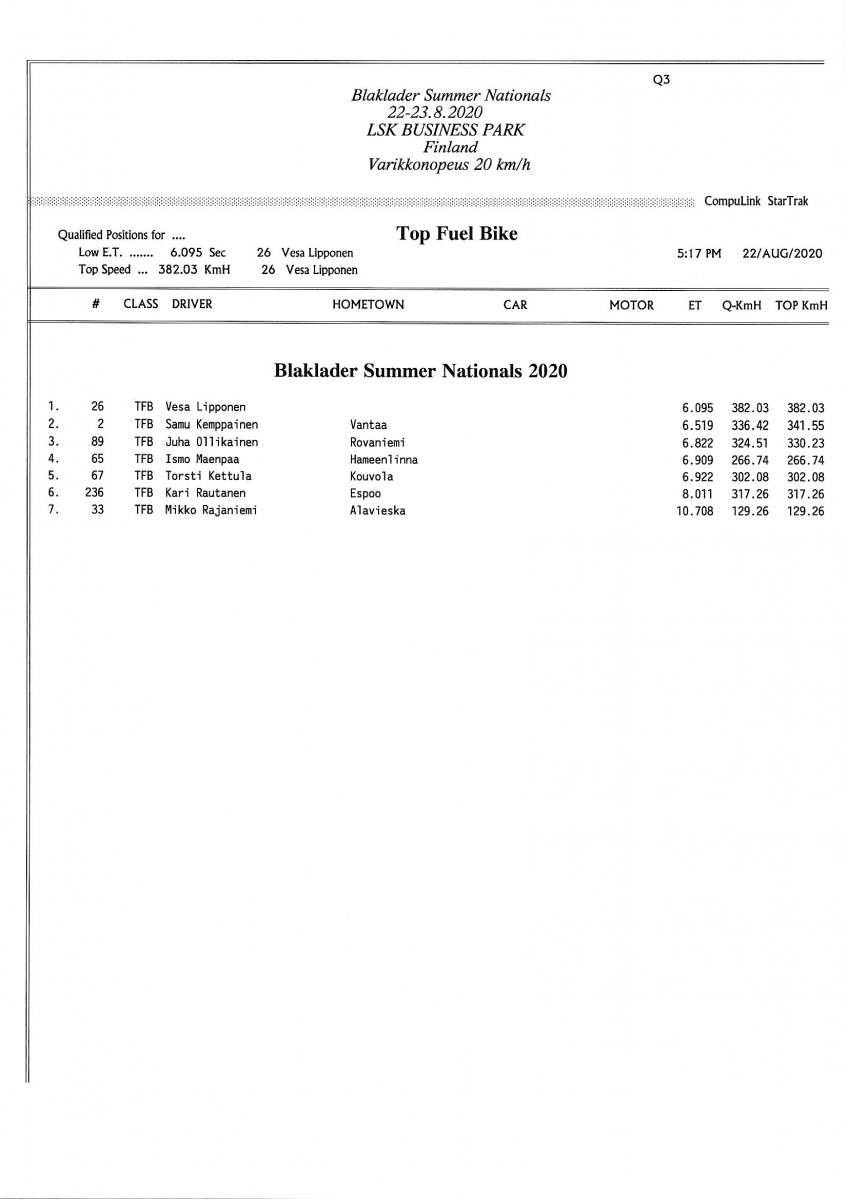 FHRA uutiset Blåkläder Summer Nationals 2020