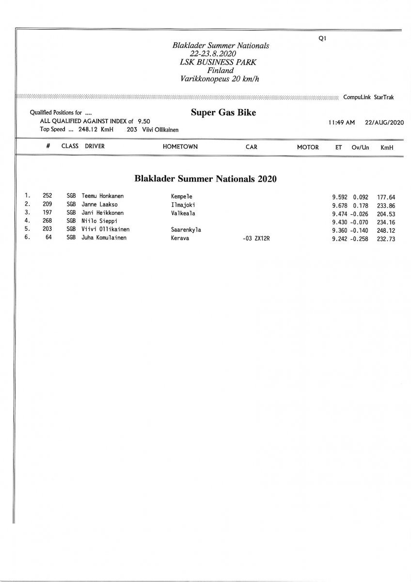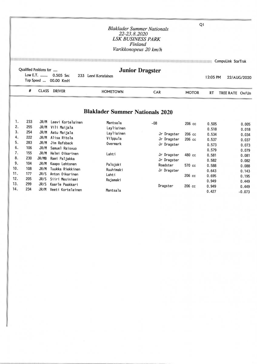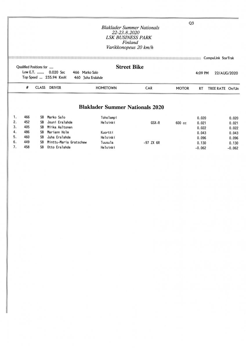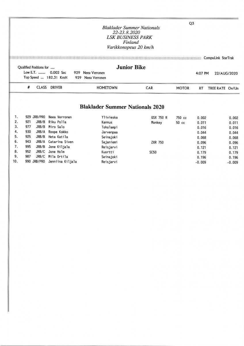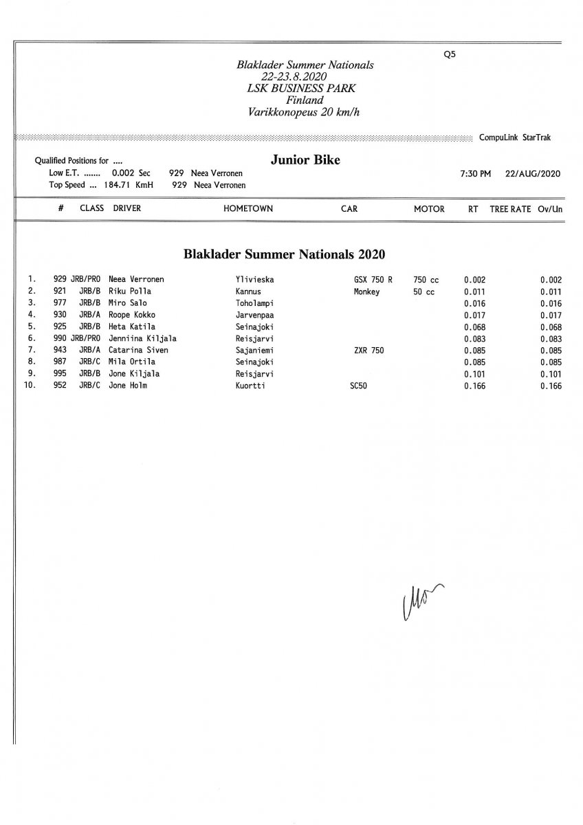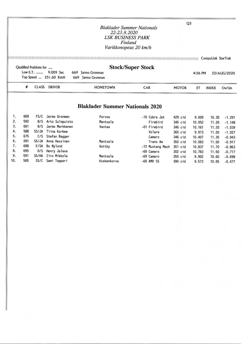 FHRA uutiset Blåkläder Summer Nationals 2020