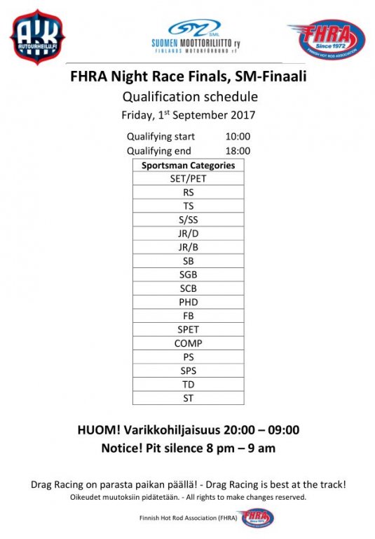 FHRA uutiset FHRA 2017: 1.-3.9.2017 FHRA Night Race Finals SM-finaali & Test n´Tune