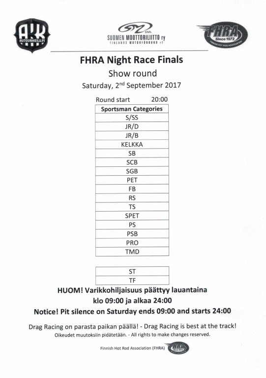 FHRA uutiset FHRA 2017: 1.-3.9.2017 FHRA Night Race Finals SM-finaali & Test n´Tune