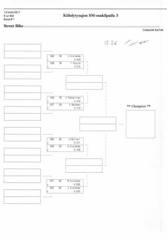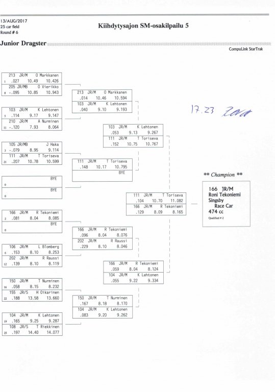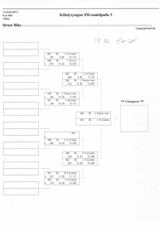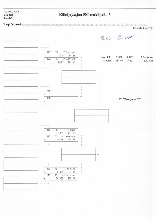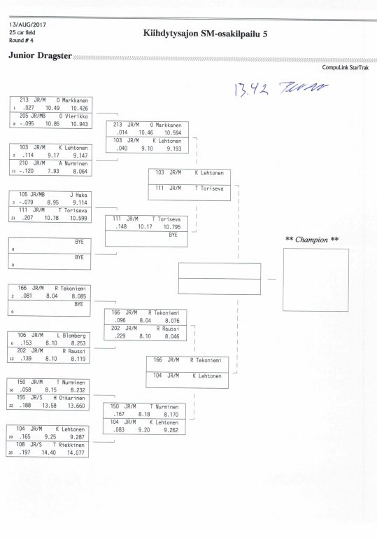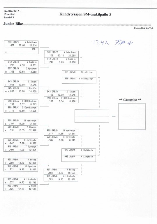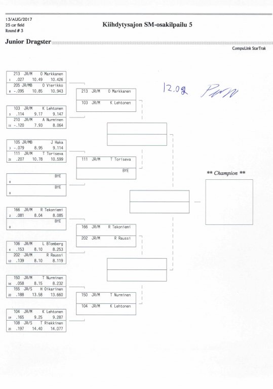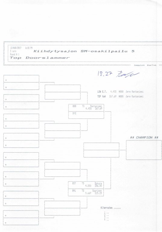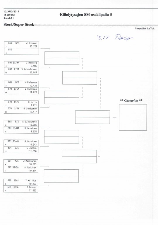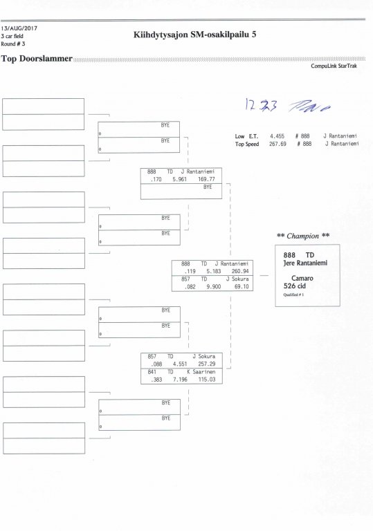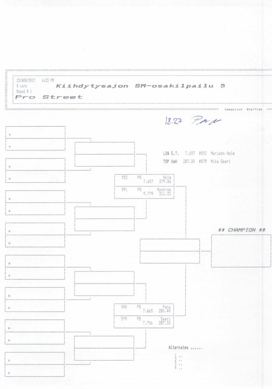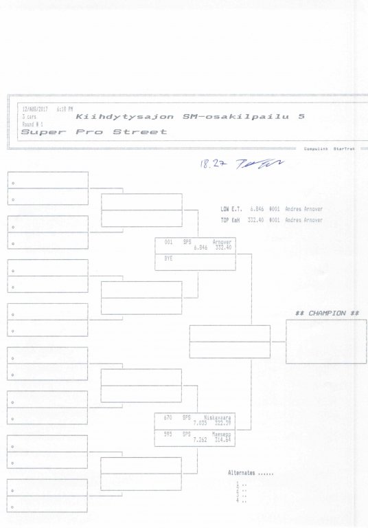 12.-13.8.2017 FHRA kiihdytysajon SM-osakilpailu 5, Motopark Motoparkintie 62, 77330 Pieksämäki Drag Race -kauden viides ja toiseksi viimeinen osakilpailu ajetaan Virtasalmen Motoparkissa. Suomen osalta Drag Race -kausi lähenee loppuaan ja taistelu pisteistä käy kuumana. Tule paikan päälle jännittämään kuinka kuljettajat pärjäävät taistelussa toisiaan vastaan. Ilmoittautuminen: http://www.dragracing.eu/index.asp Racekansaa rata-alueella ja sen ympäristössä viihdyttää FHRA:n oma race radio taajuudella 96,8 mhz. Tapahtuma aikataulu: La 10.00-18.00 – Lajitteluajot Su 11.00-17.00 Lajitteluajot Kilpailu striimataan FHRA:n Livestream-kanavalle: https://livestream.com/fhra Varikkokartat: Pääsyliput: Pääsyliput ennakkoon: 16€/päivä, 24€/kokoaikalippu Portilta: 20€/päivä, 30€/kokoaikalippu Alle 12-vuotiaat ilmaiseksi sisään aikuisen seurassa. Pääsyliput on nyt myynnissä Tiketissä. Hyvä asiakkaamme. Huomioithan, että Drag Racing kilpailu järjestetään säävarauksella. Sateen aikana ei turvallisuussyistä voida ajaa, sään salliessa ajoja jatketaan heti kun se vain on mahdollista. Emme palauta maksua lunastetuista lipuista, emmekä korvaa kadonneita lippuja. Emme vastaa alueella tapahtuneista henkilö- tai omaisuusvahingoista. Olet alueella omalla vastuulla. Lataa tapahtumajuliste tästä alta löytyvästä linkistä ja jaa se, jos haluat kertoa tapahtumasta muillekin. Rohkeimmat voivat, jos niin tahtovat, tulostaa aineiston ja laittaa vaikka lähikaupan ilmoitustaululle. Jos näin päätät tehdä, laitathan ilmoituksen esille niille tarkoitettuihin paikkoihin. Kiitos jo etukäteen. SM5A3_2017 Hyvä median edustaja. Voit ilmoittautua samalla lomakkeella vaikka kaikkiin tapahtumiin yhdellä kertaa. Drag Racing on parasta paikan päällä. Tervetuloa.