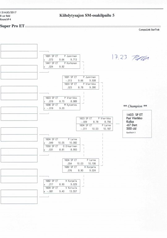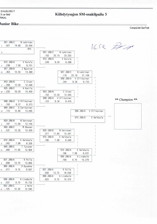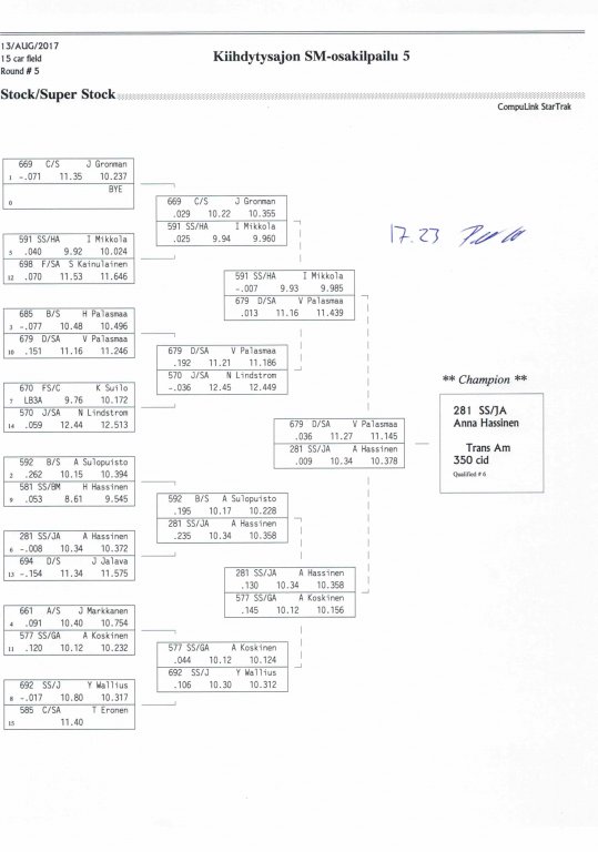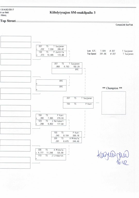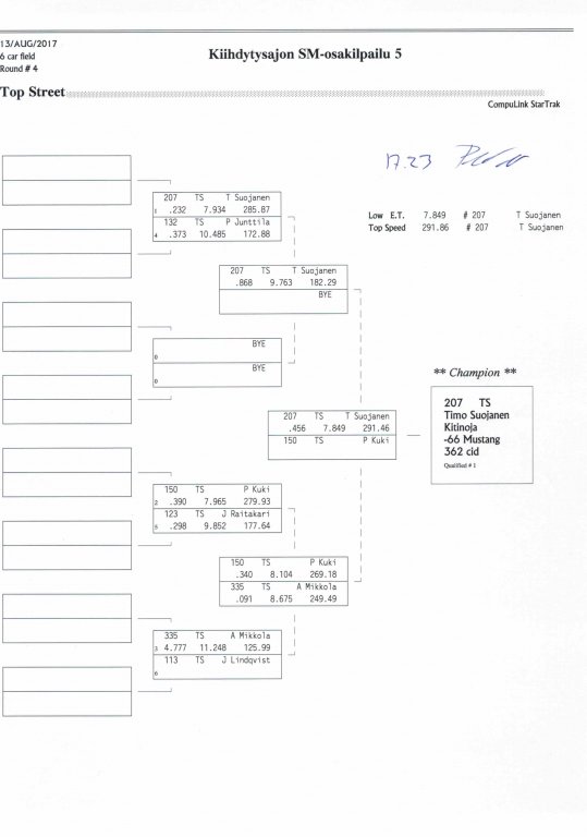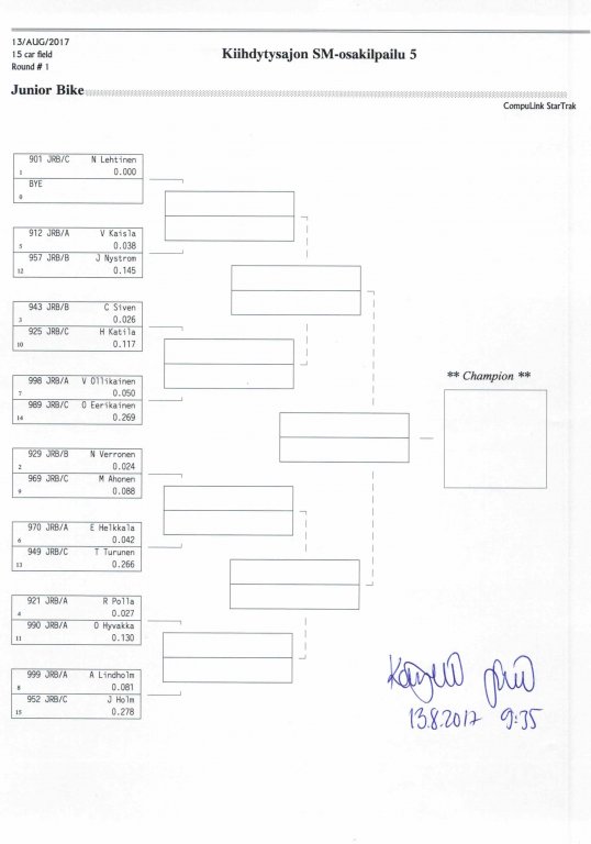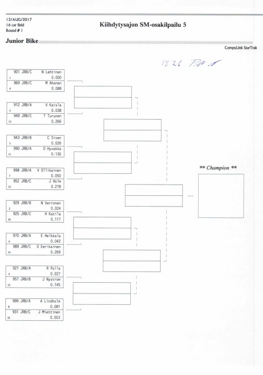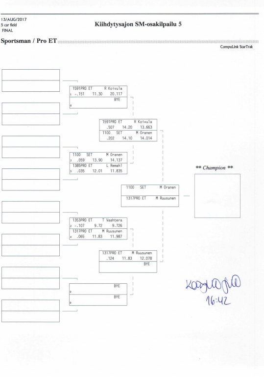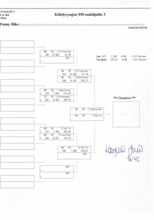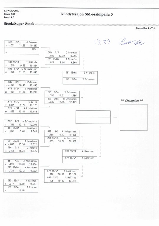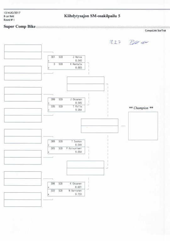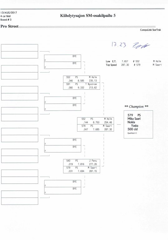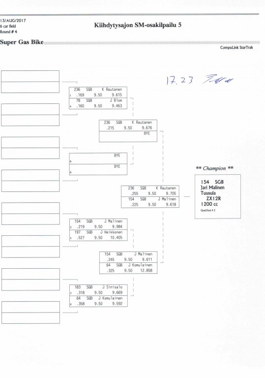 12.-13.8.2017 FHRA kiihdytysajon SM-osakilpailu 5, Motopark Motoparkintie 62, 77330 Pieksämäki Drag Race -kauden viides ja toiseksi viimeinen osakilpailu ajetaan Virtasalmen Motoparkissa. Suomen osalta Drag Race -kausi lähenee loppuaan ja taistelu pisteistä käy kuumana. Tule paikan päälle jännittämään kuinka kuljettajat pärjäävät taistelussa toisiaan vastaan. Ilmoittautuminen: http://www.dragracing.eu/index.asp Racekansaa rata-alueella ja sen ympäristössä viihdyttää FHRA:n oma race radio taajuudella 96,8 mhz. Tapahtuma aikataulu: La 10.00-18.00 – Lajitteluajot Su 11.00-17.00 Lajitteluajot Kilpailu striimataan FHRA:n Livestream-kanavalle: https://livestream.com/fhra Varikkokartat: Pääsyliput: Pääsyliput ennakkoon: 16€/päivä, 24€/kokoaikalippu Portilta: 20€/päivä, 30€/kokoaikalippu Alle 12-vuotiaat ilmaiseksi sisään aikuisen seurassa. Pääsyliput on nyt myynnissä Tiketissä. Hyvä asiakkaamme. Huomioithan, että Drag Racing kilpailu järjestetään säävarauksella. Sateen aikana ei turvallisuussyistä voida ajaa, sään salliessa ajoja jatketaan heti kun se vain on mahdollista. Emme palauta maksua lunastetuista lipuista, emmekä korvaa kadonneita lippuja. Emme vastaa alueella tapahtuneista henkilö- tai omaisuusvahingoista. Olet alueella omalla vastuulla. Lataa tapahtumajuliste tästä alta löytyvästä linkistä ja jaa se, jos haluat kertoa tapahtumasta muillekin. Rohkeimmat voivat, jos niin tahtovat, tulostaa aineiston ja laittaa vaikka lähikaupan ilmoitustaululle. Jos näin päätät tehdä, laitathan ilmoituksen esille niille tarkoitettuihin paikkoihin. Kiitos jo etukäteen. SM5A3_2017 Hyvä median edustaja. Voit ilmoittautua samalla lomakkeella vaikka kaikkiin tapahtumiin yhdellä kertaa. Drag Racing on parasta paikan päällä. Tervetuloa.