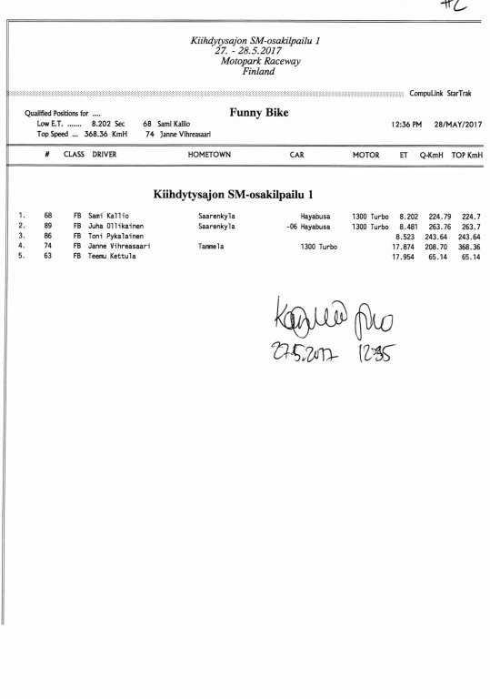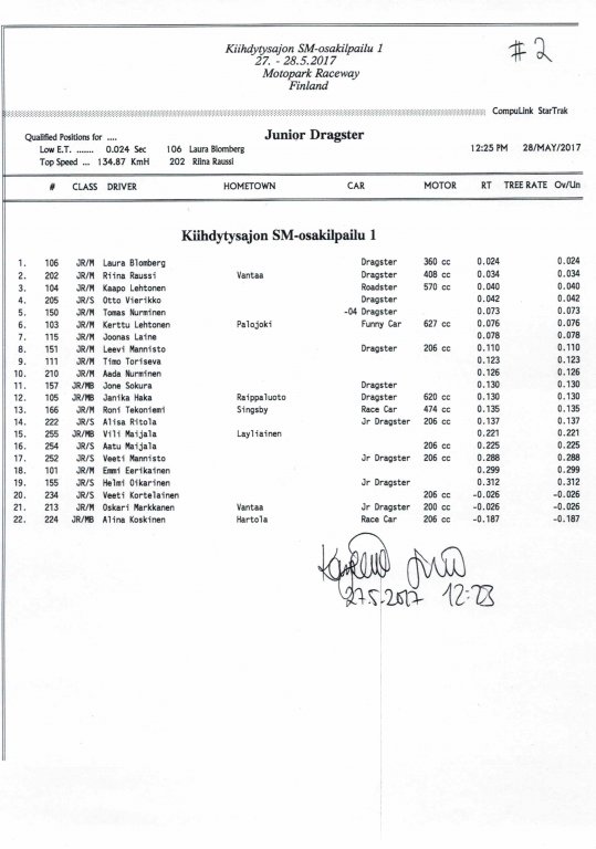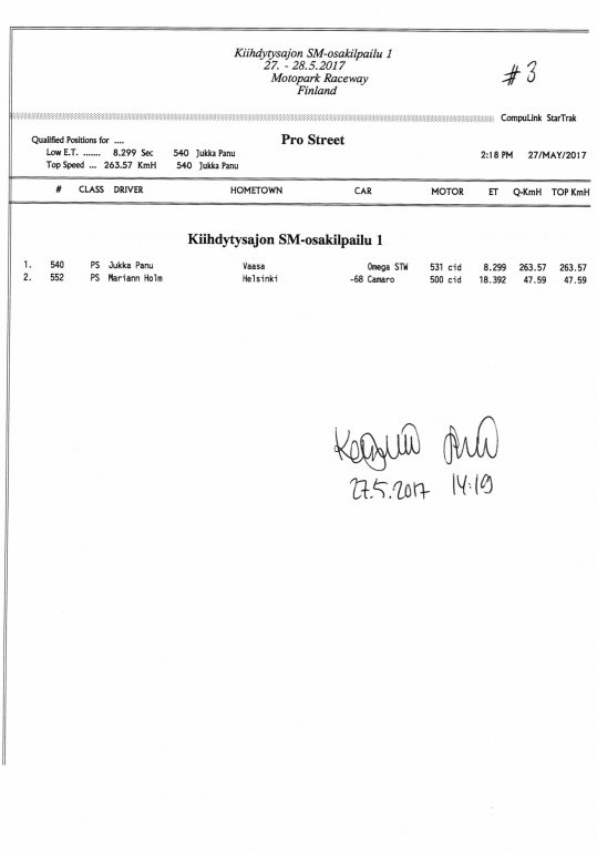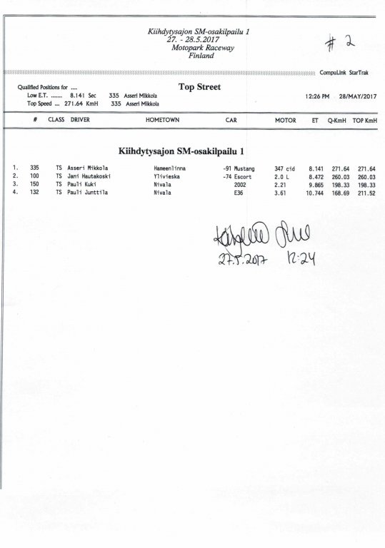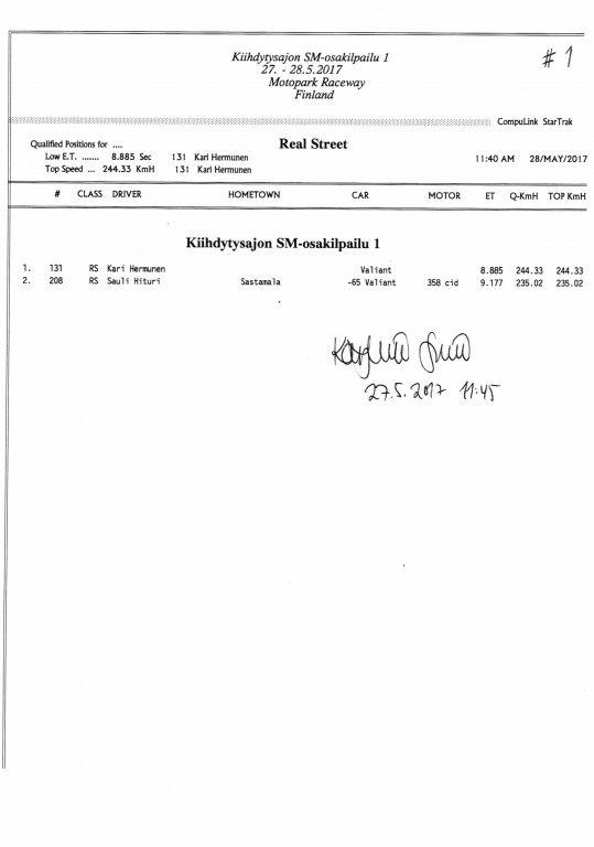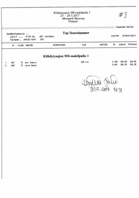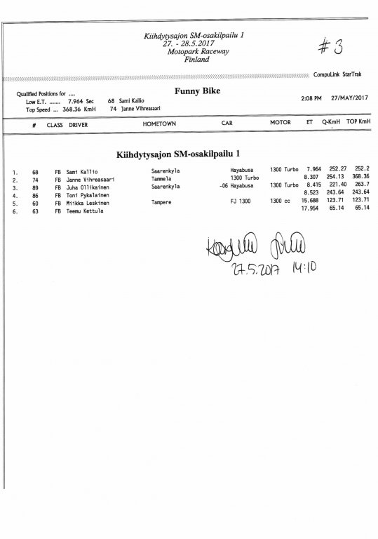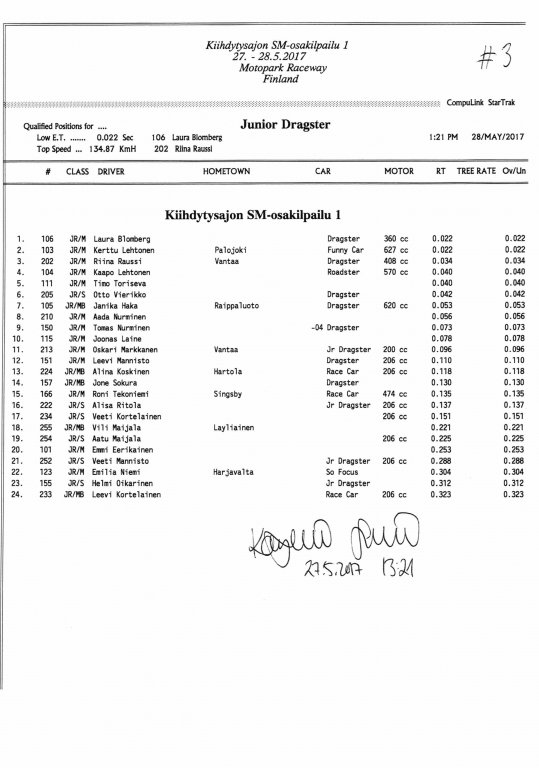 FHRA uutiset FHRA 2017: Test n´Tune & Kiihdytysajon SM-osakilpailu 1, Motopark