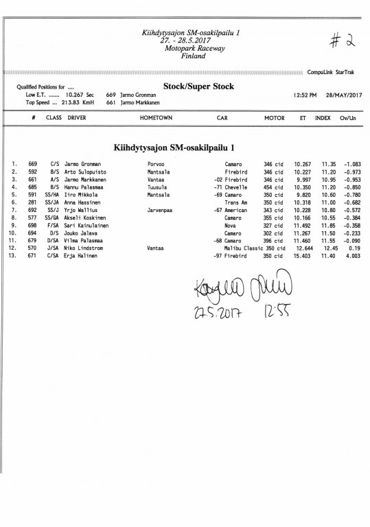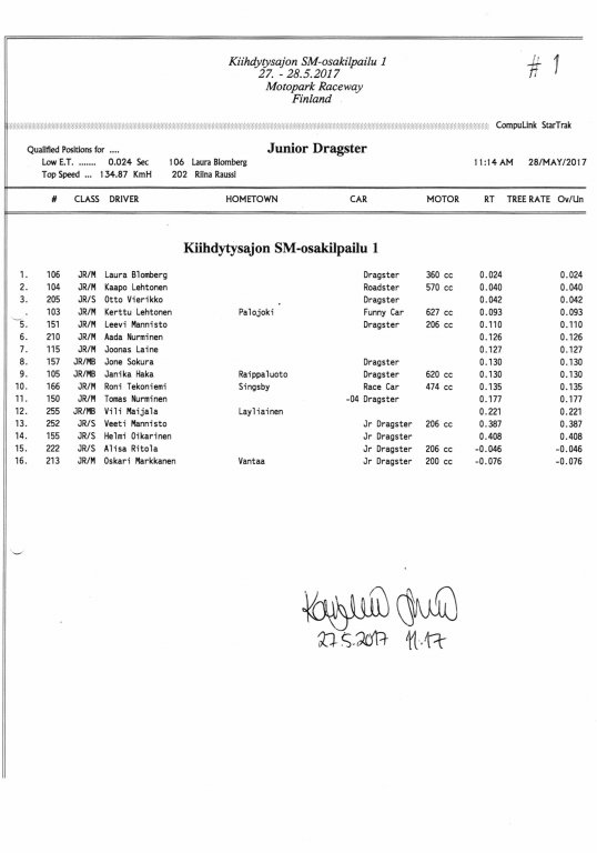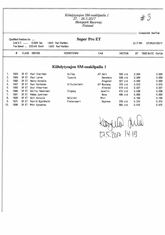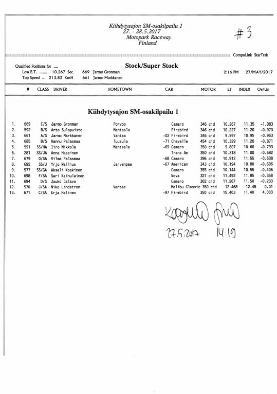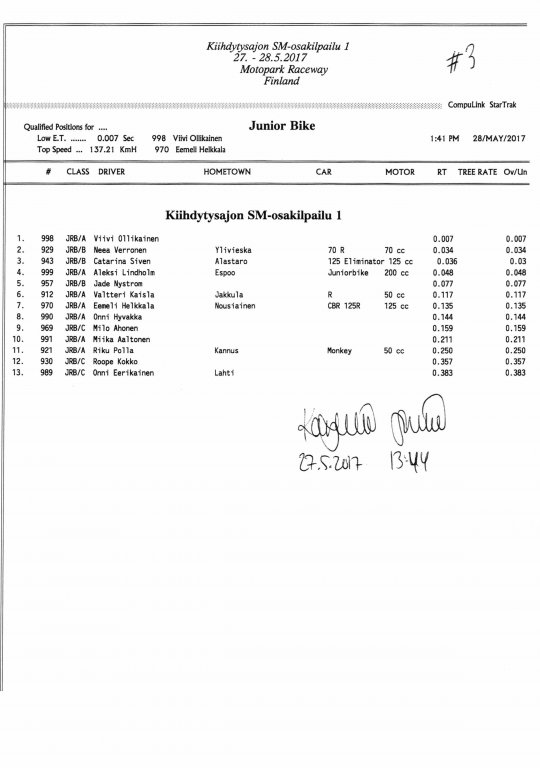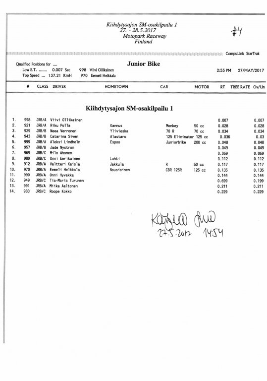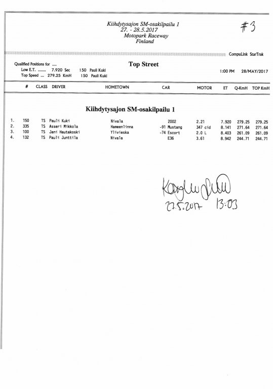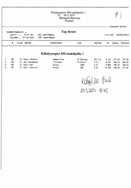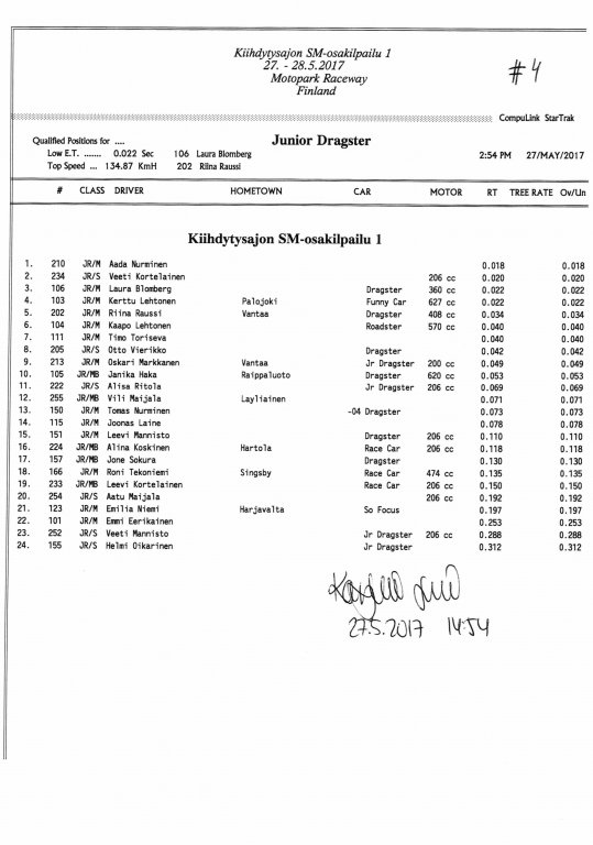 FHRA uutiset FHRA 2017: Test n´Tune & Kiihdytysajon SM-osakilpailu 1, Motopark