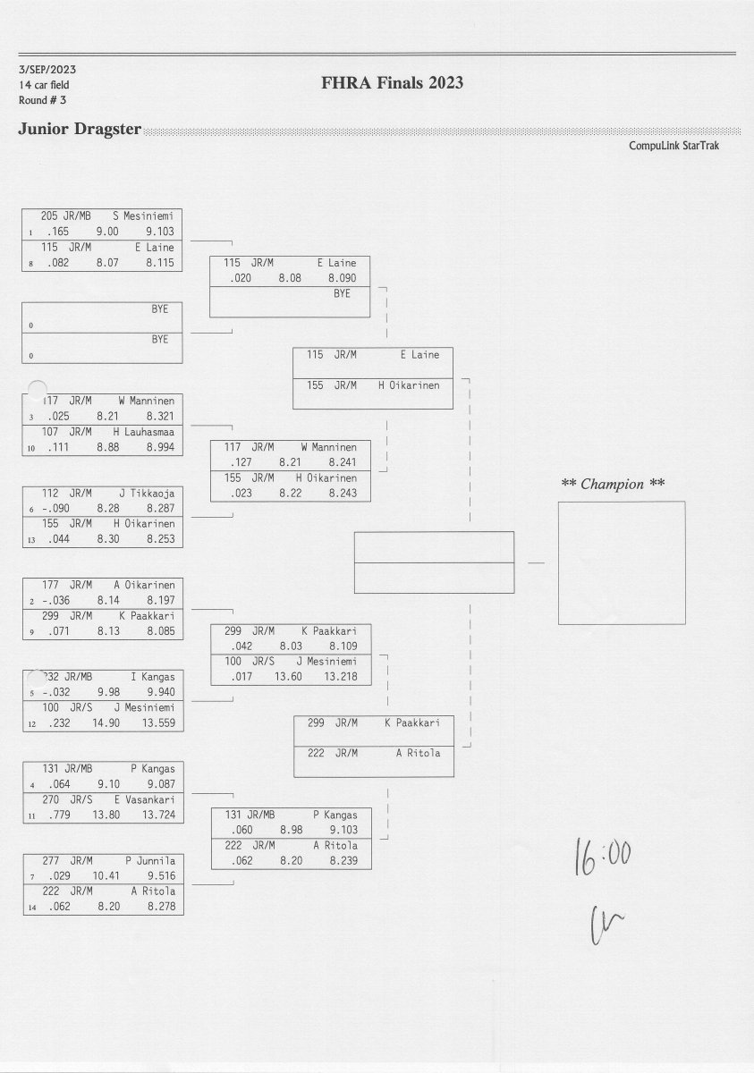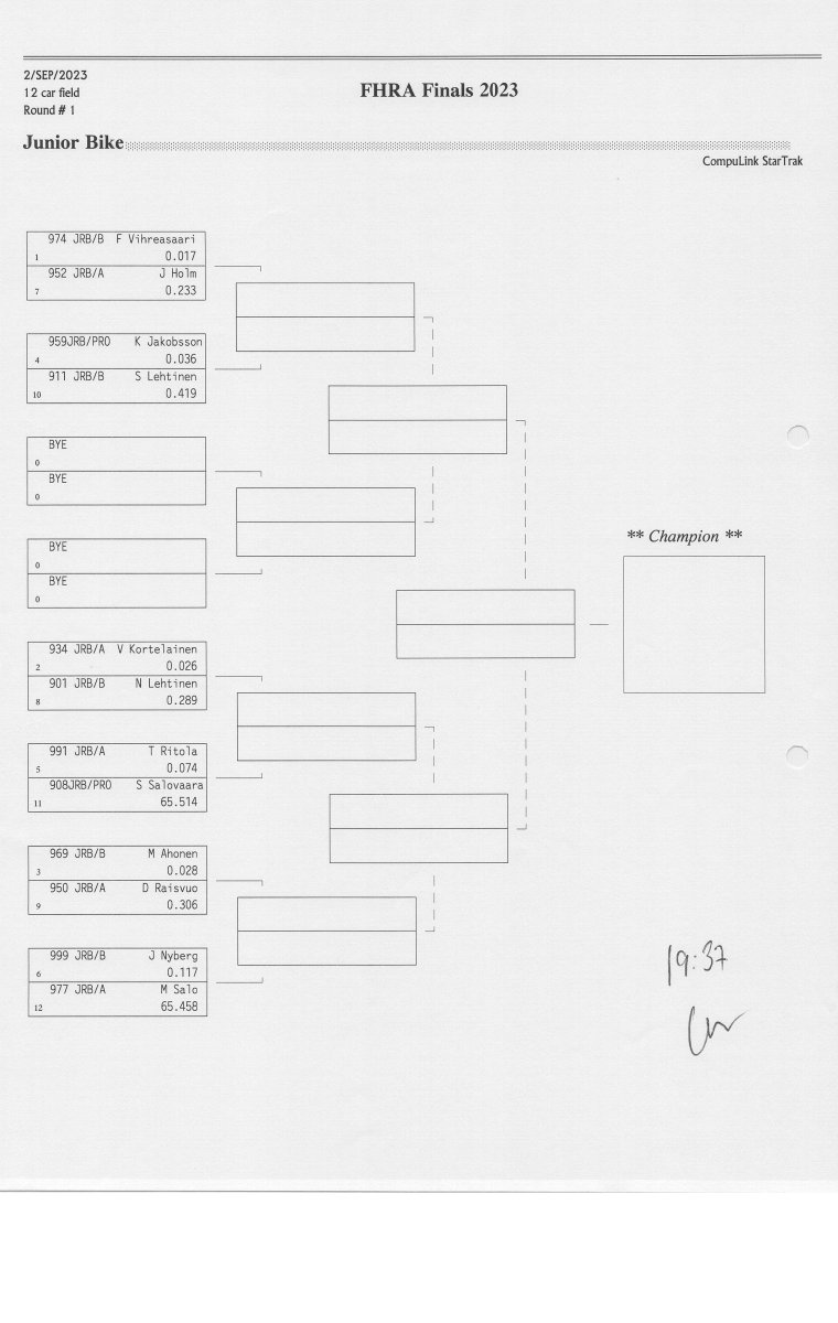 Tuloksia sunnuntai. Funny Bike tulokset puuttuu, mutta selvitämme sitä parhaillaan. Kisaa ei voitu ajaa loppuun asti, sade keskeytti.