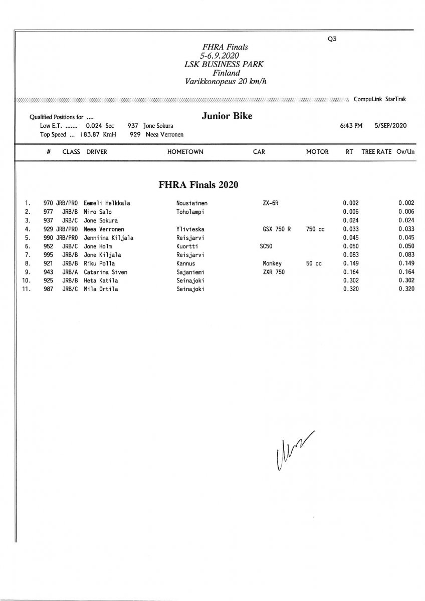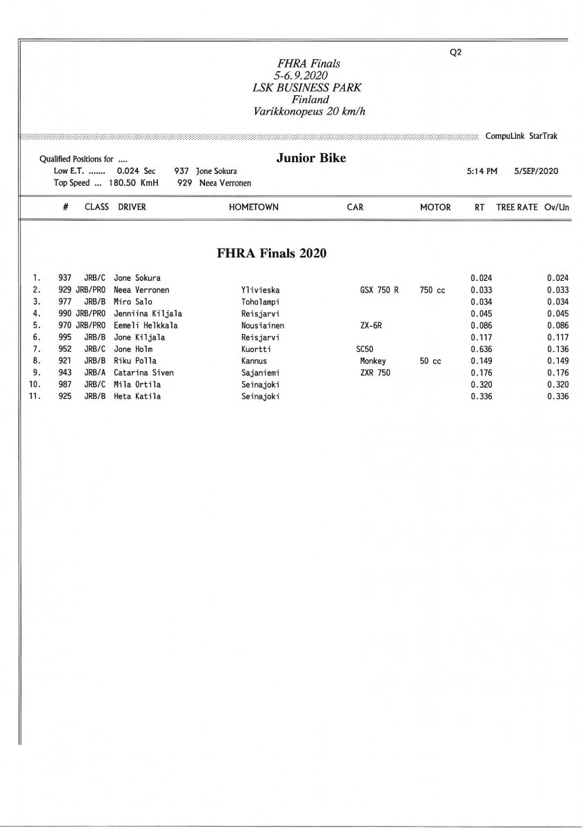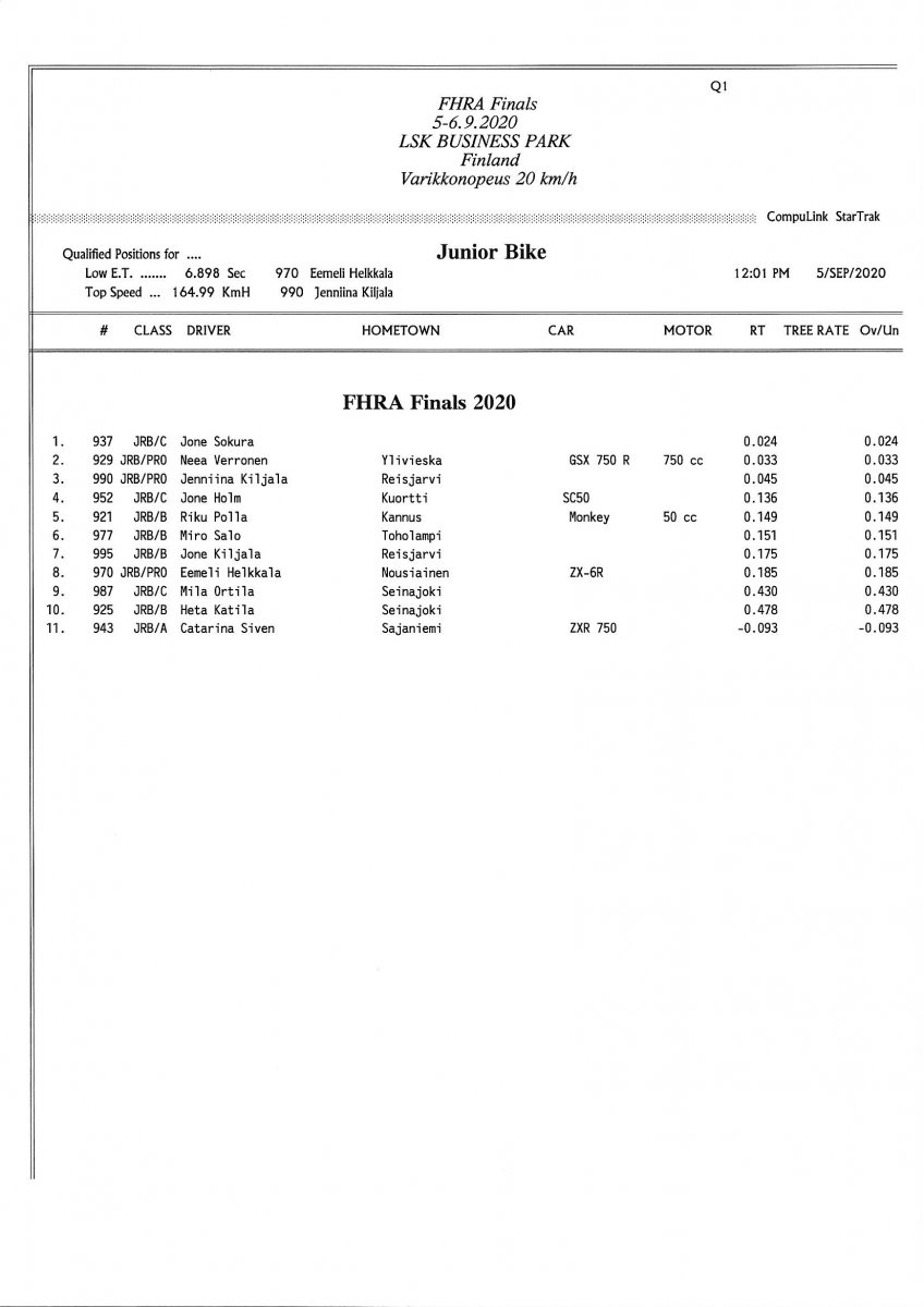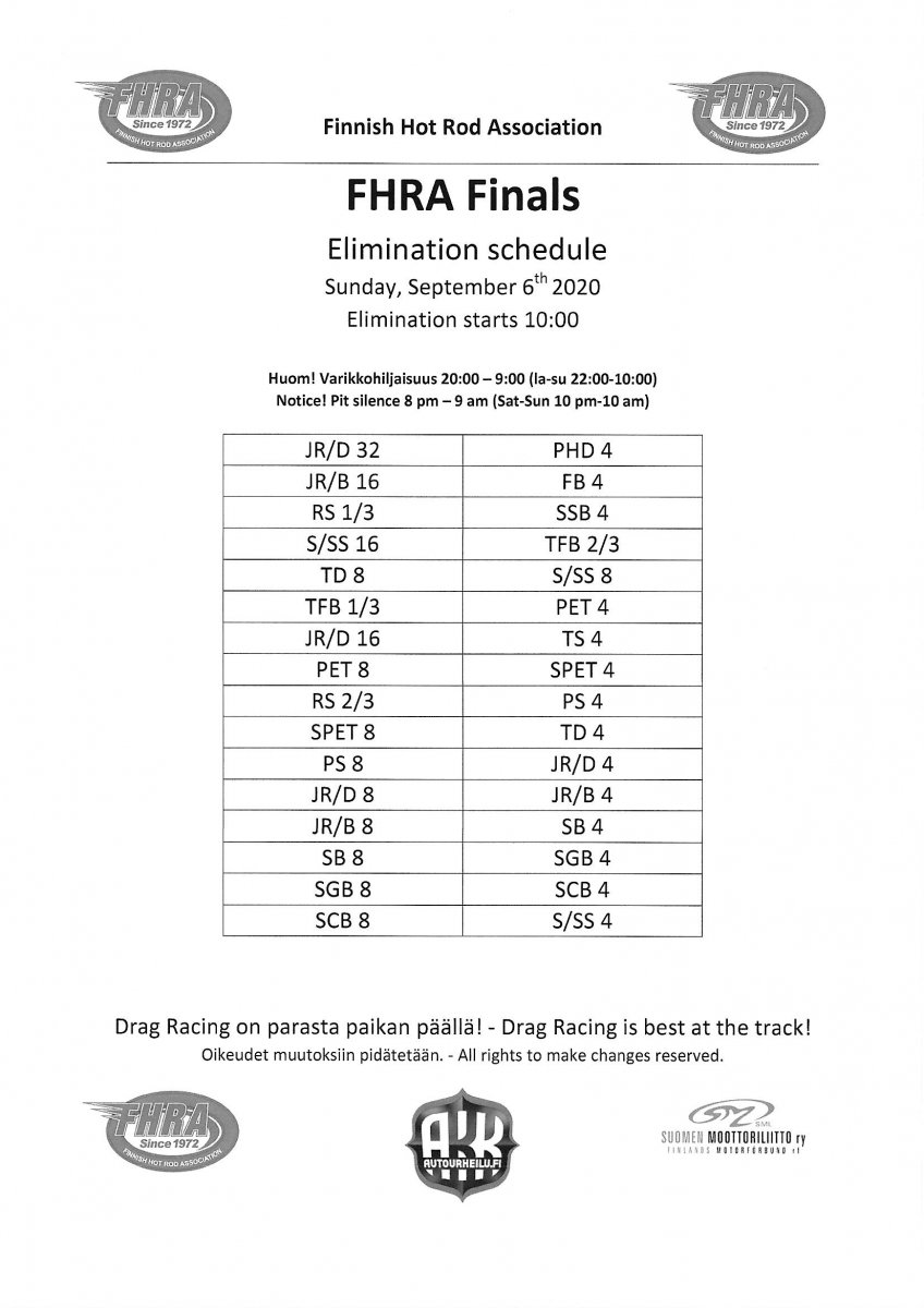 Lauantai 5.9. ajojärjestys: https://www.fhra.fi/wp-content/uploads/2020/09/Finals-2020-lauantai-Q-schedule.pdf